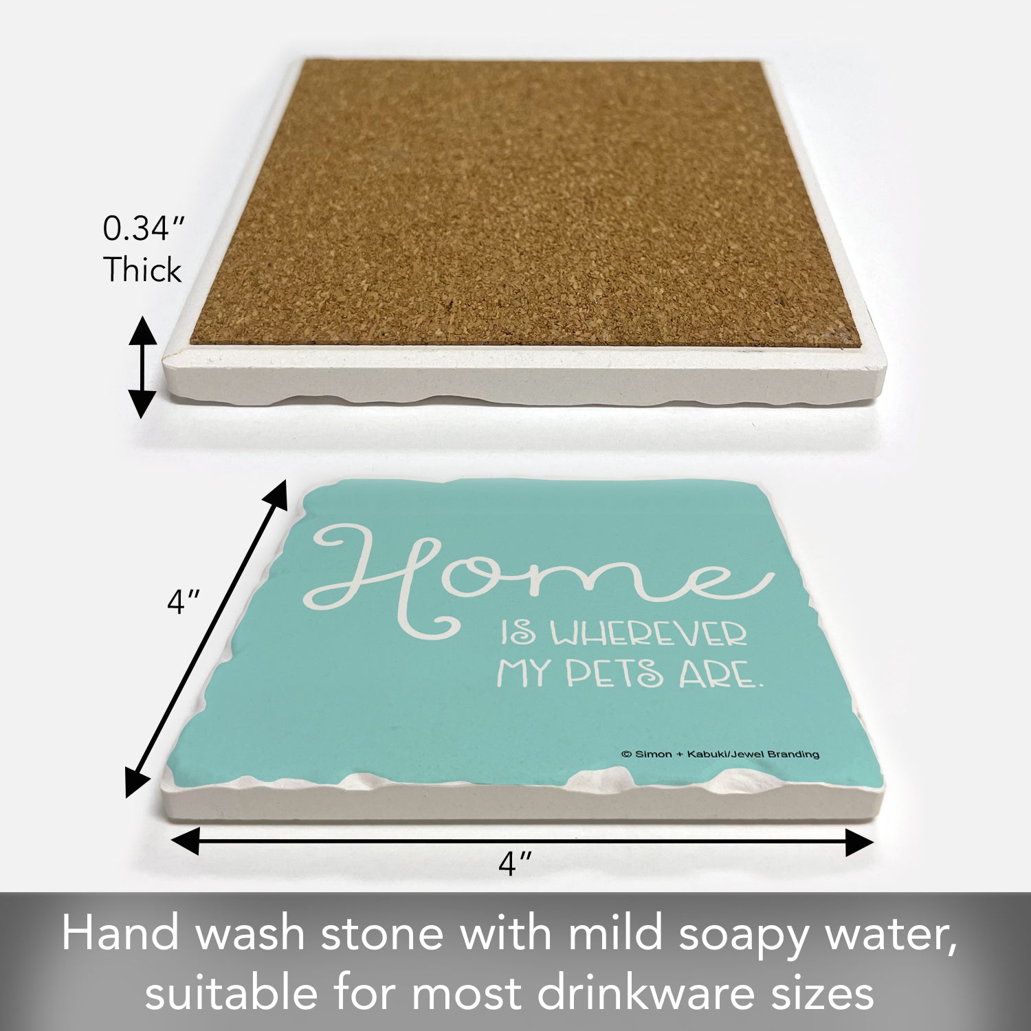 Thirstystone My Pets Single Tumbled Tile Stone Coaster with Protective Cork Backing Manufactured in The USA 4" Square, Artistic, Easily Wipes Clean