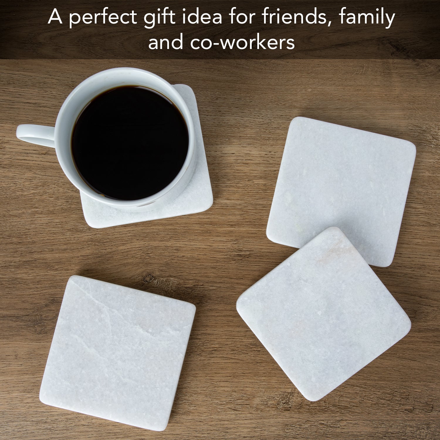 Thirstystone 4 Pack Natural White Marble Coasters Elegant, Luxurious, and Durable