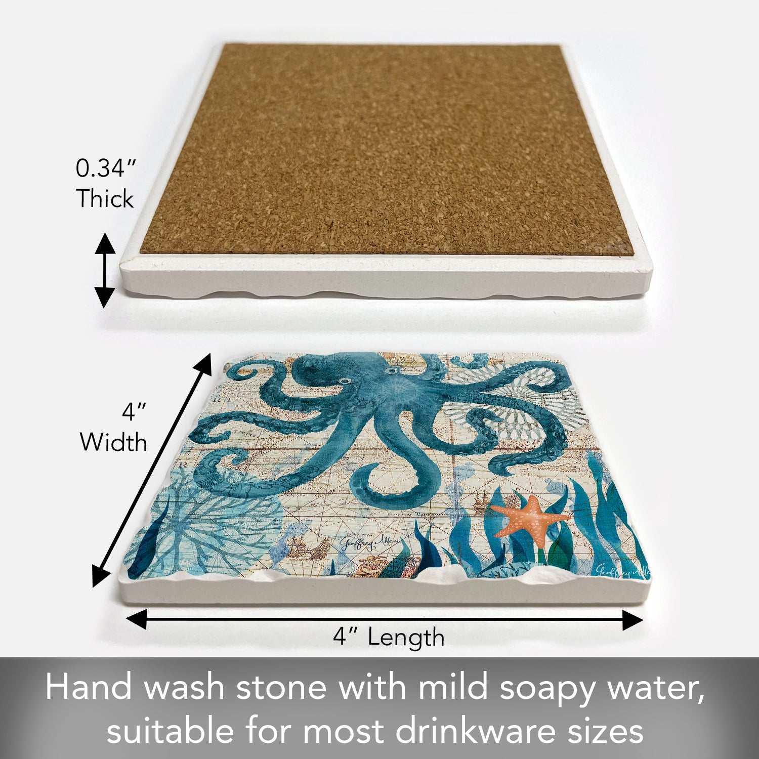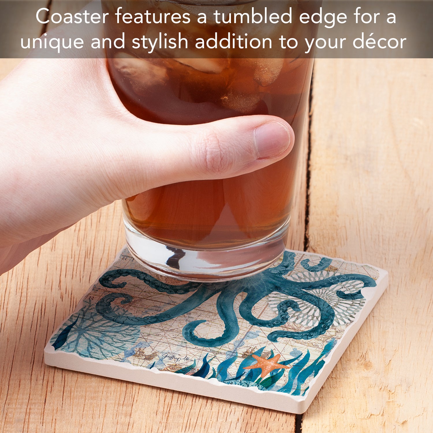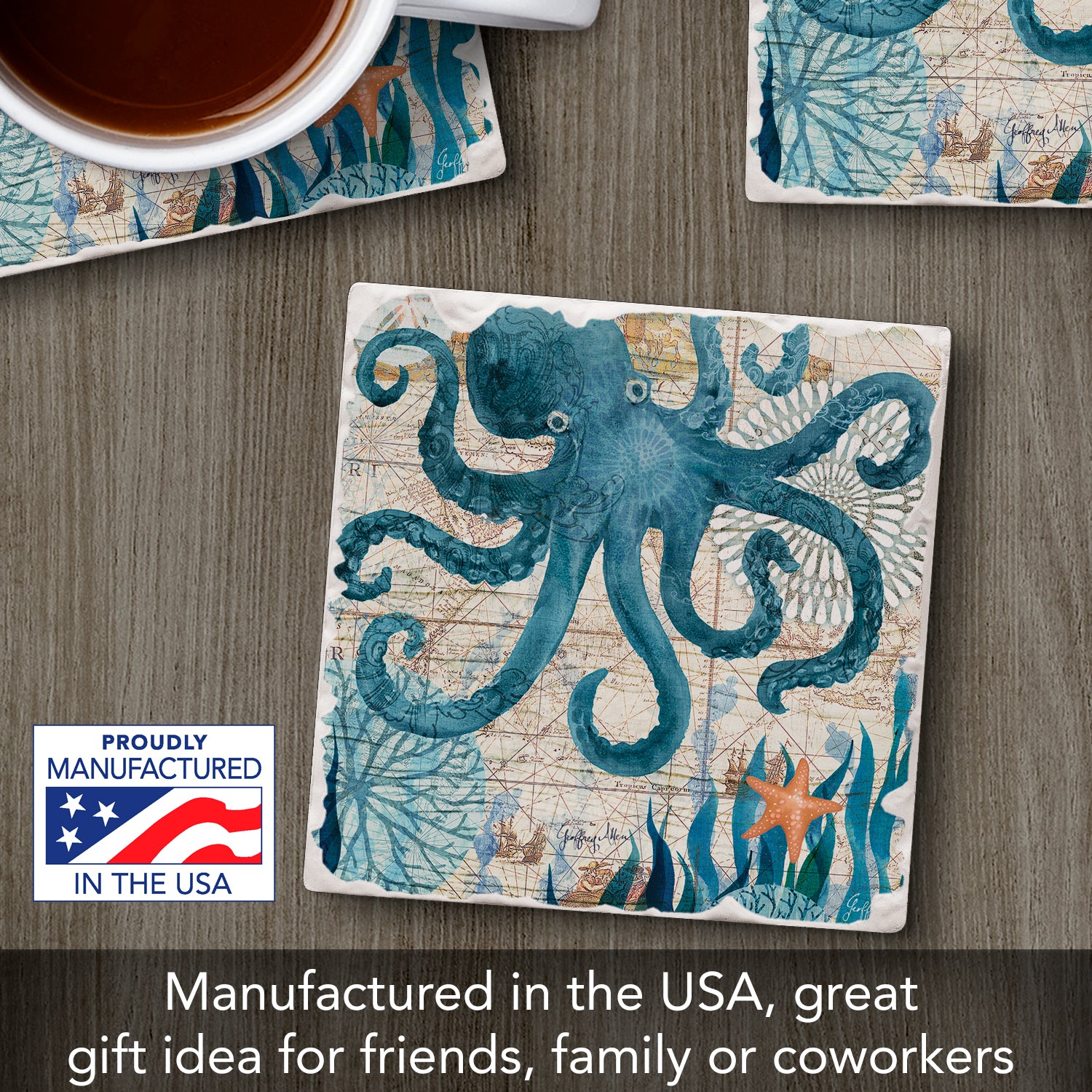 Thirstystone Nautical Octopus Single Tumbled Tile Stone Coaster with Protective Cork Backing Manufactured in The USA 4" Square, Colorful, Artistiic, Easily Wipes Clean