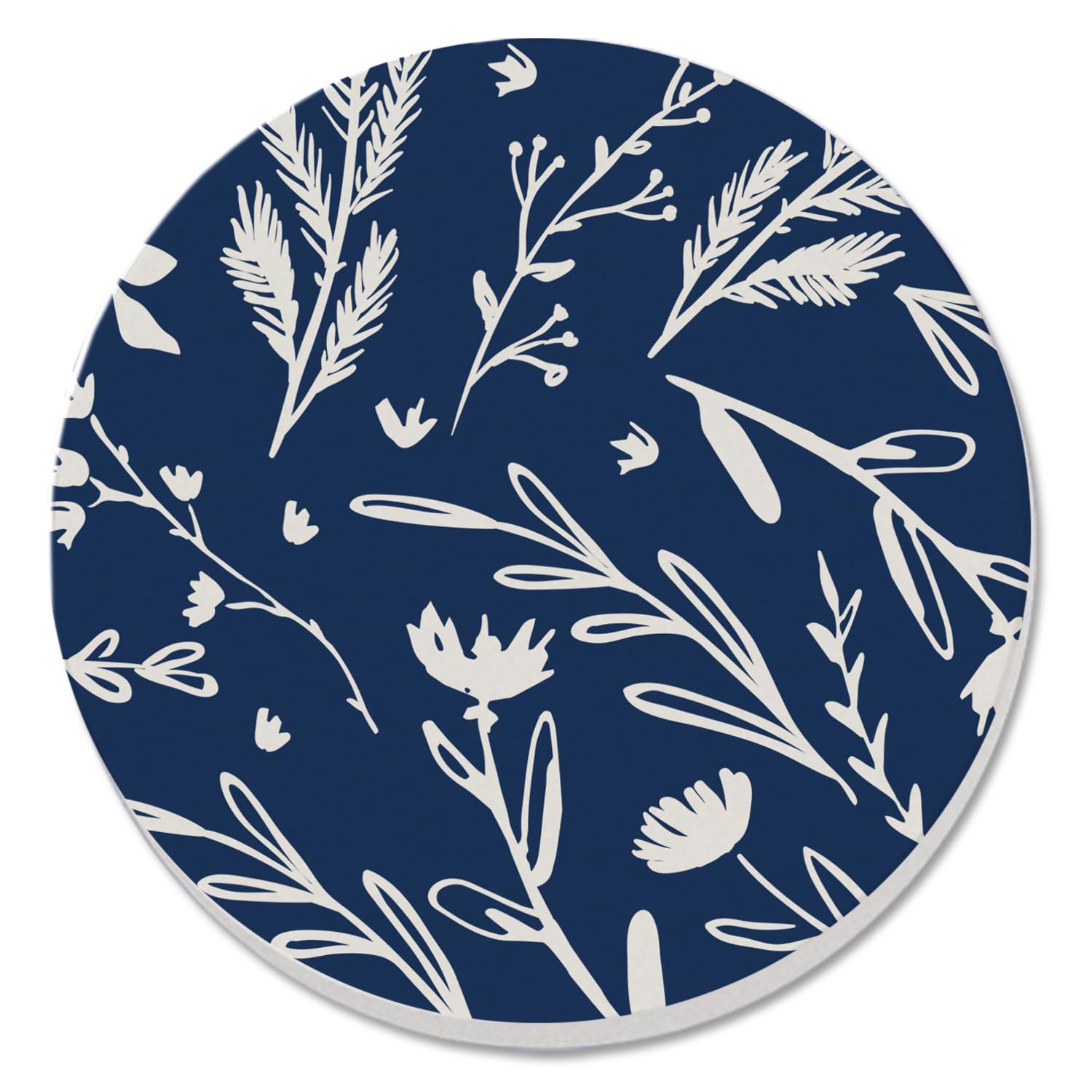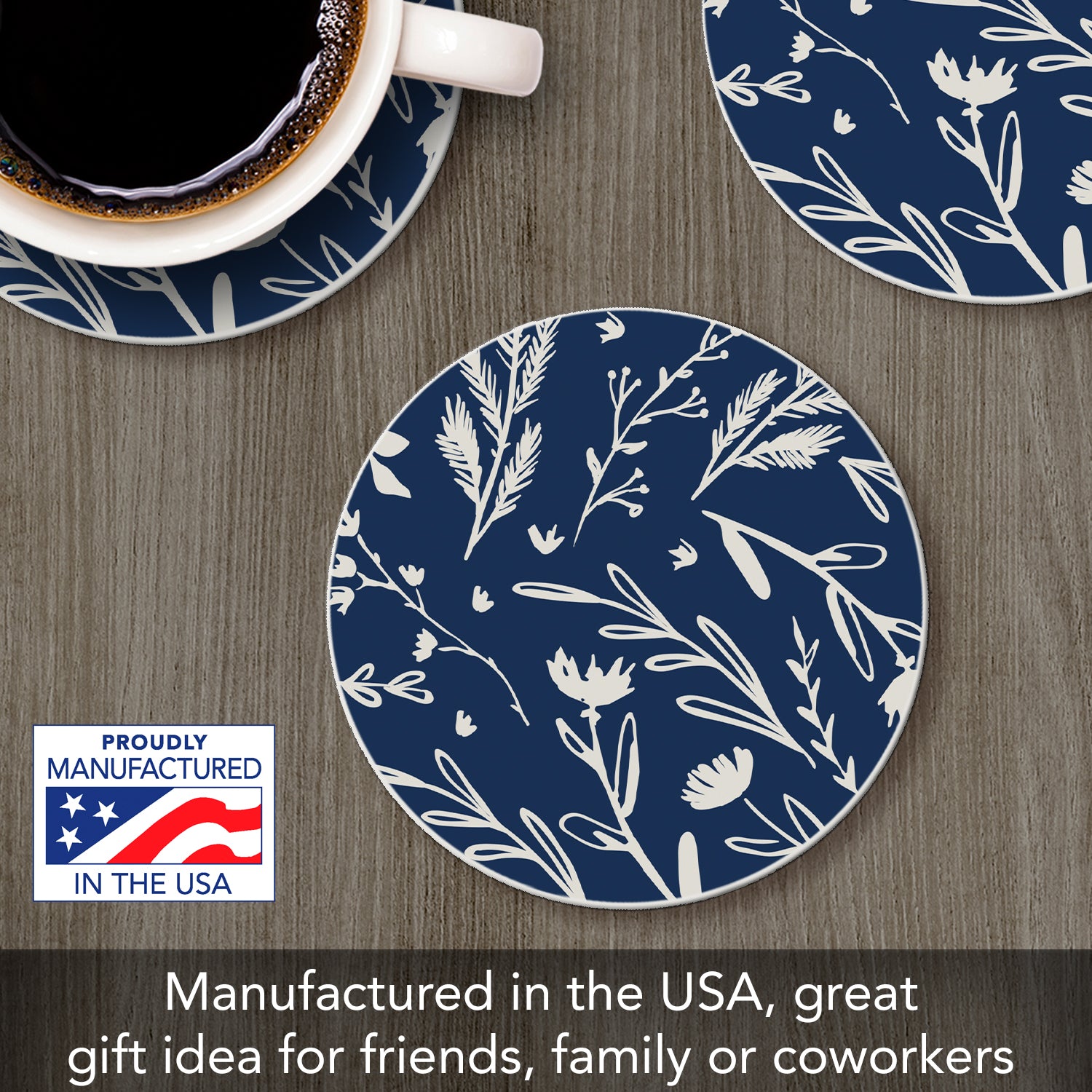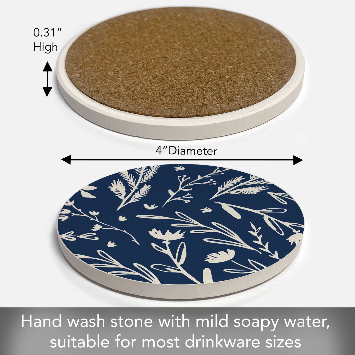 Thirstystone Navy & White Floral Single Round Absorbent Stone Coaster with Protective Cork Backing Manufactured in The USA 4" Diameter