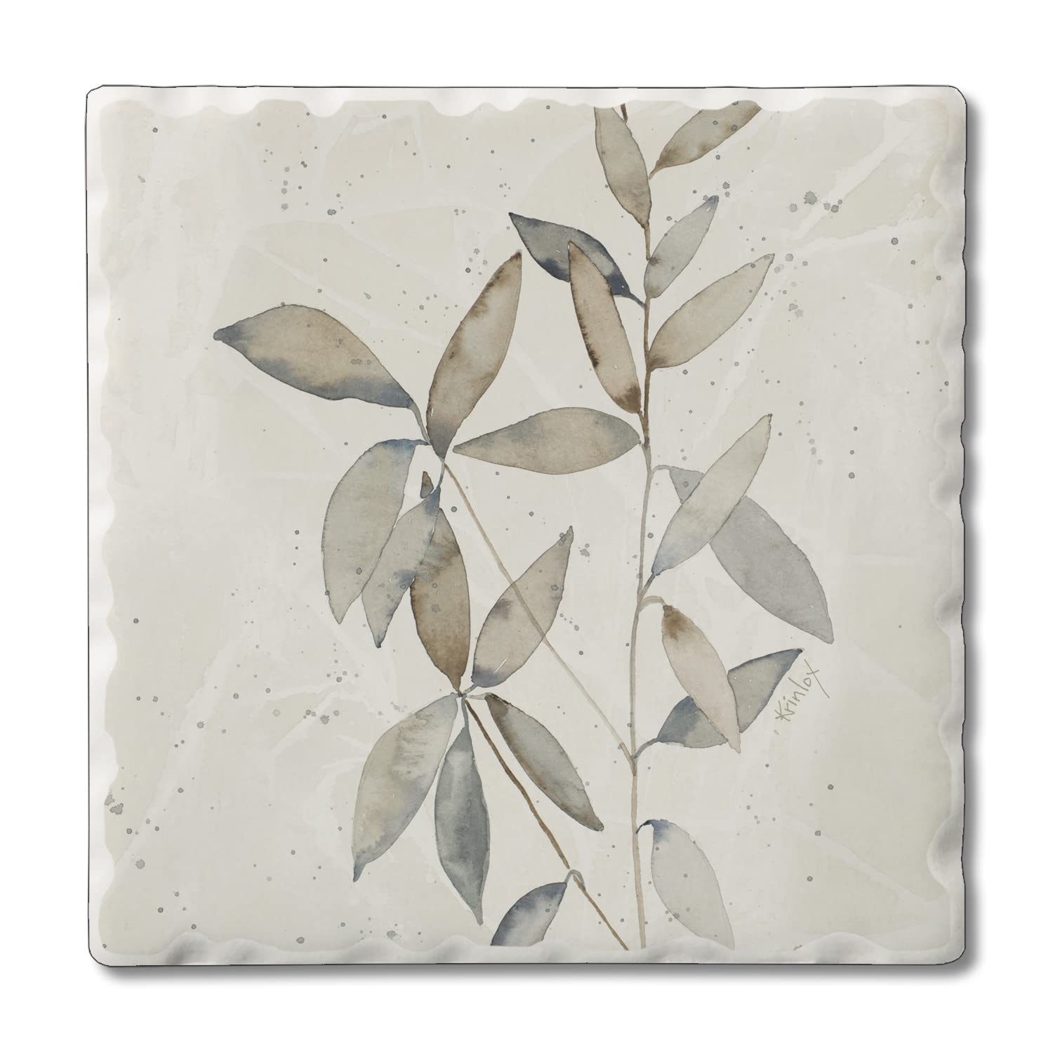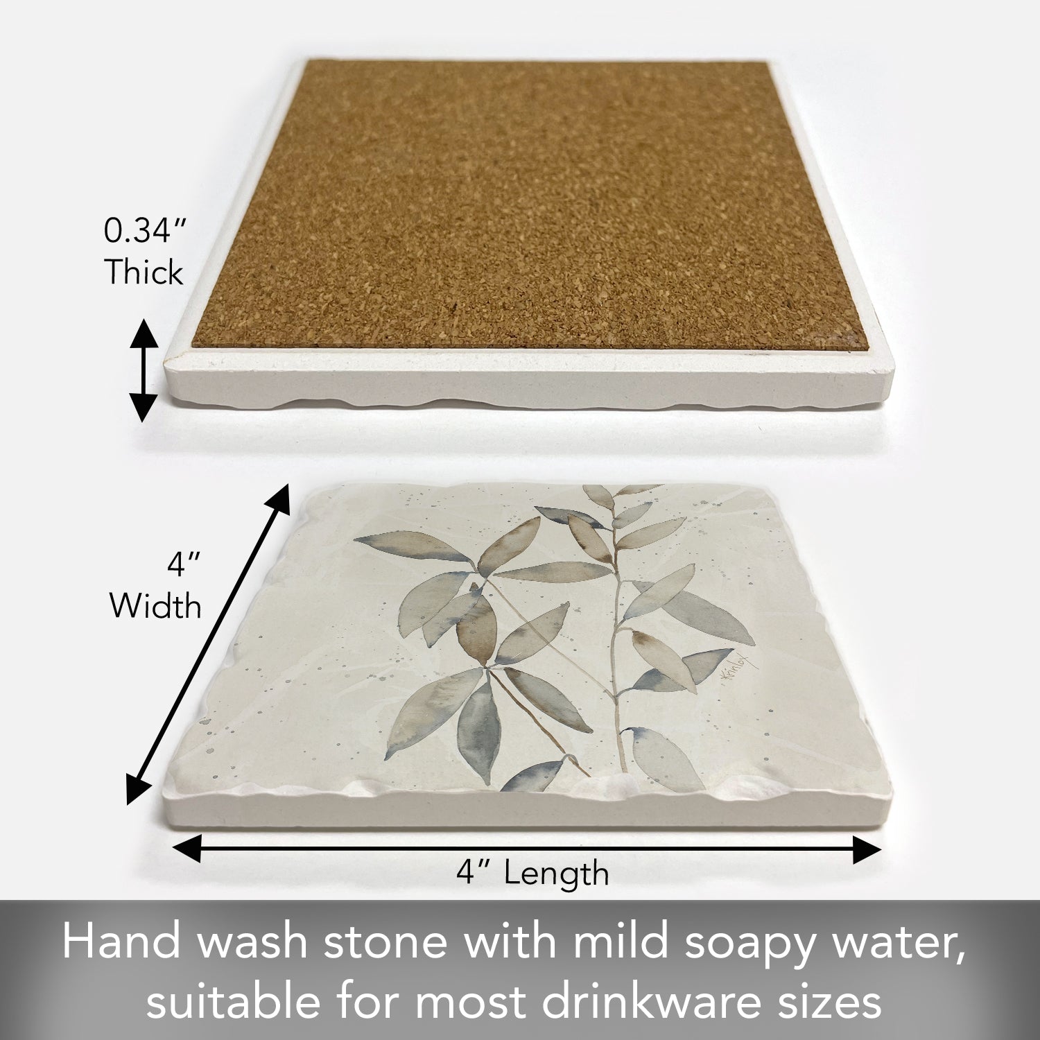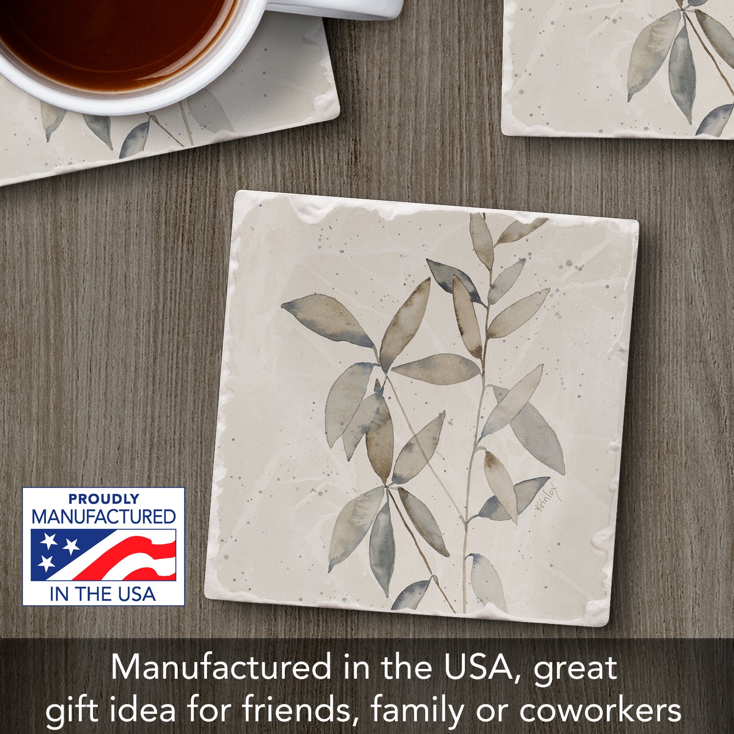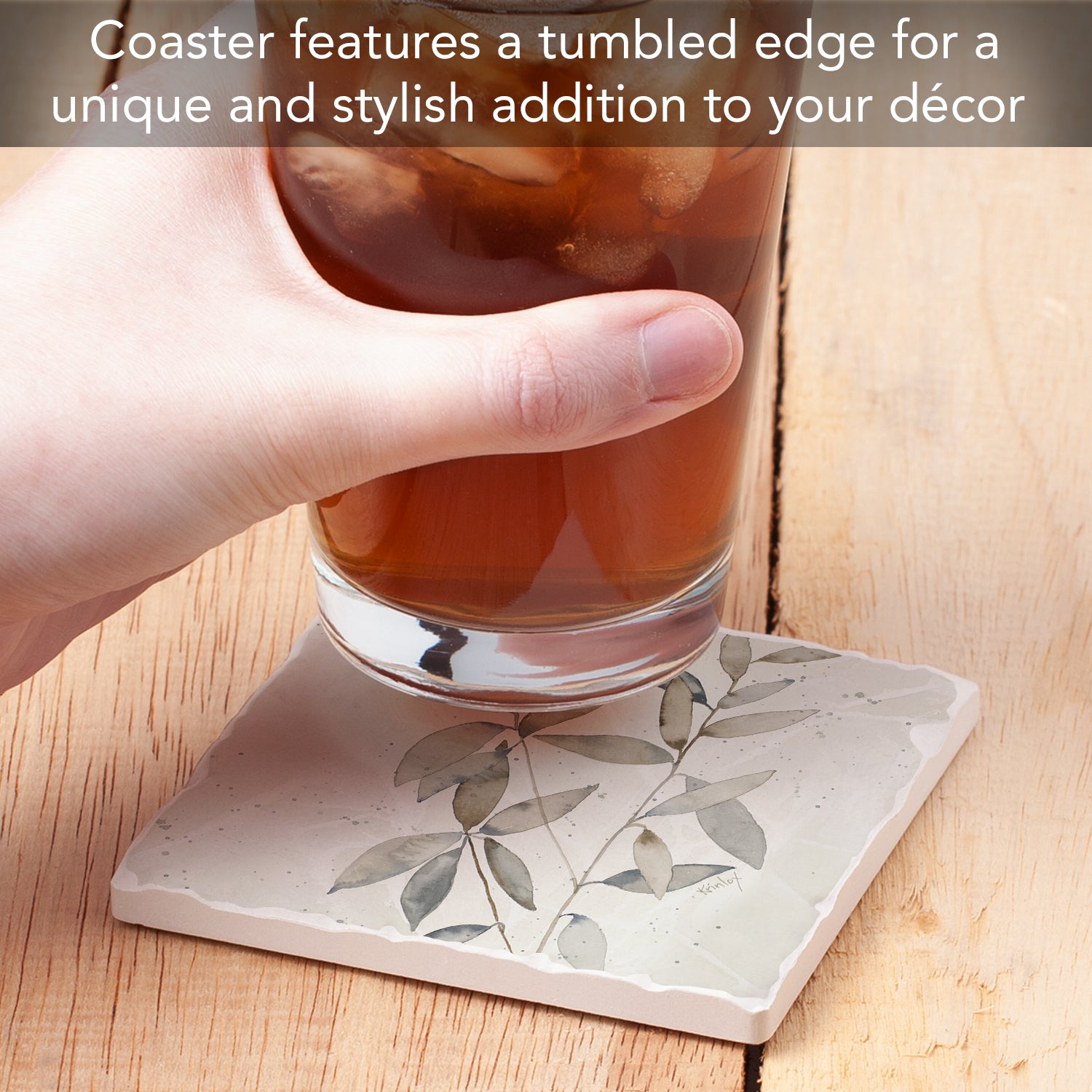 Thirstystone Neutral Botanicals Design I Single Tumbled Tile Stone Coaster with Protective Cork Backing Manufactured in The USA 4" Square, Colorful, Artistiic, Easily Wipes Clean