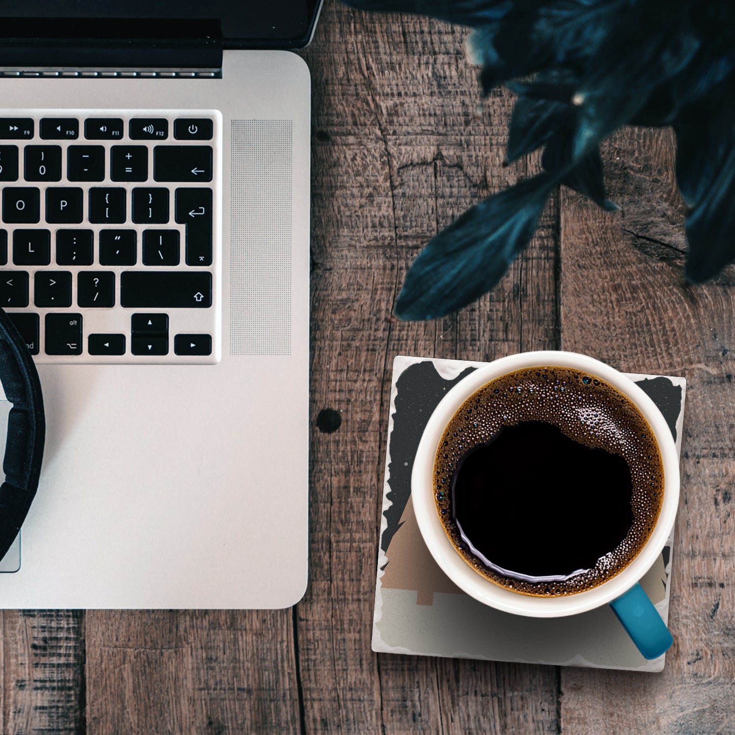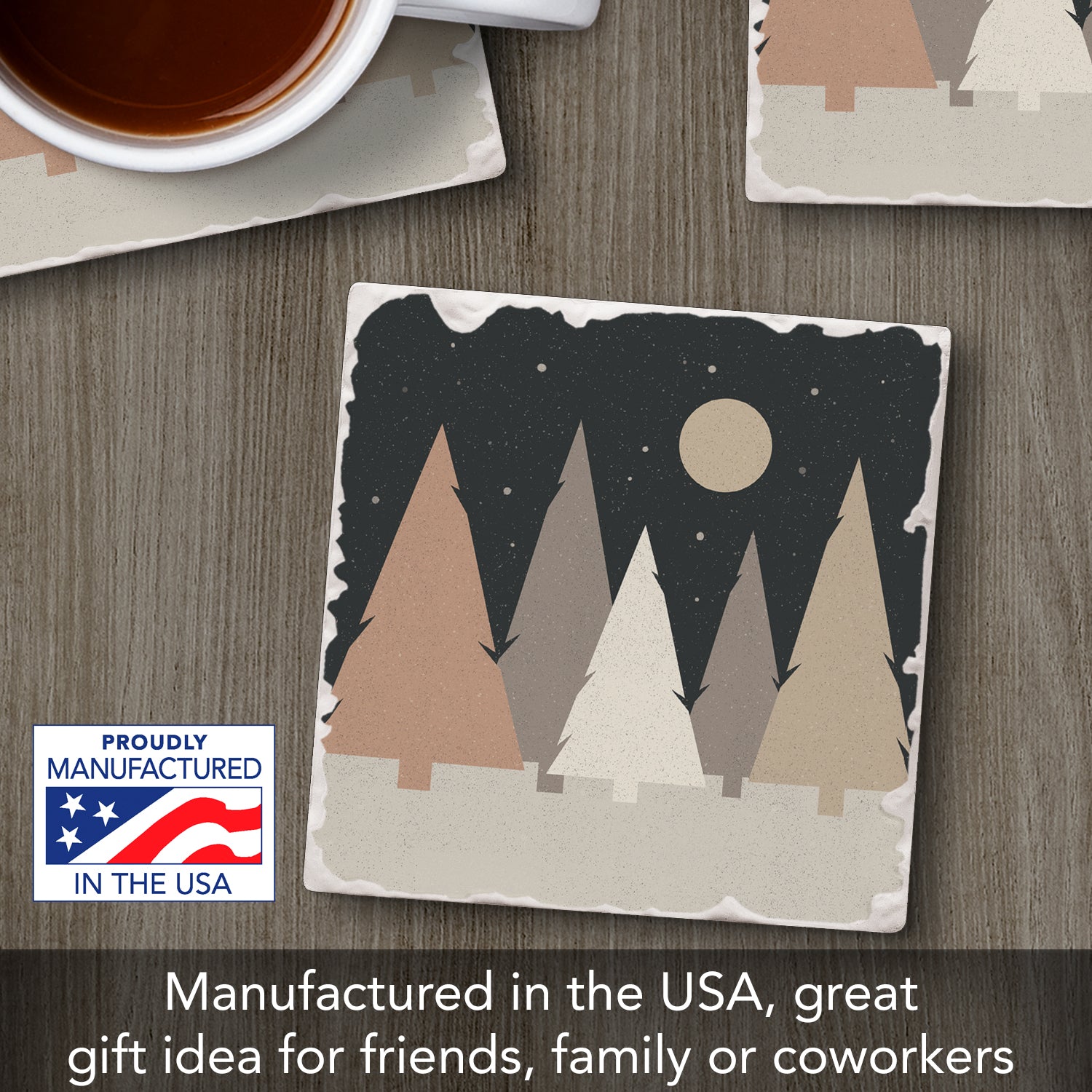 FUNCTIONAL ART-Beautiful artistic design allows the Coaster to remain displayed even when not in use. Each Coaster measures 4” x 4” x .25”. Sized to fit larger Mugs & Glasses.