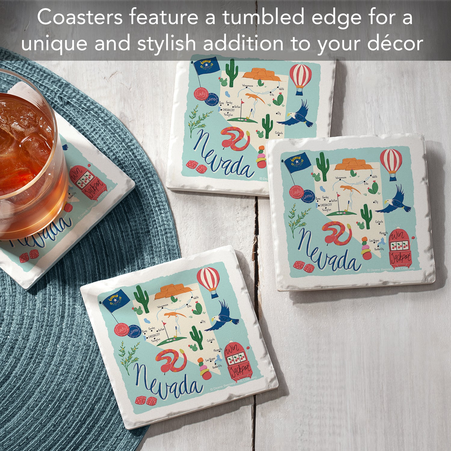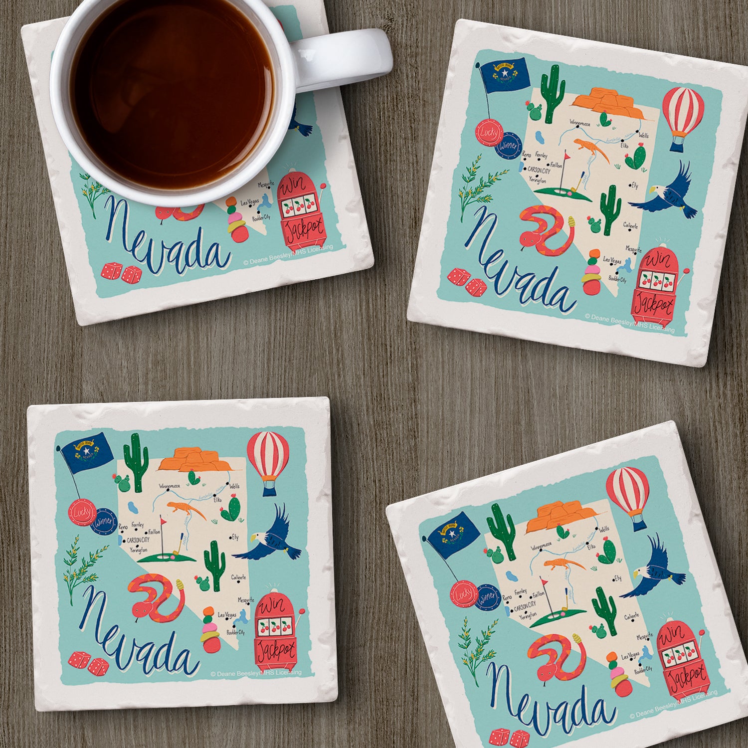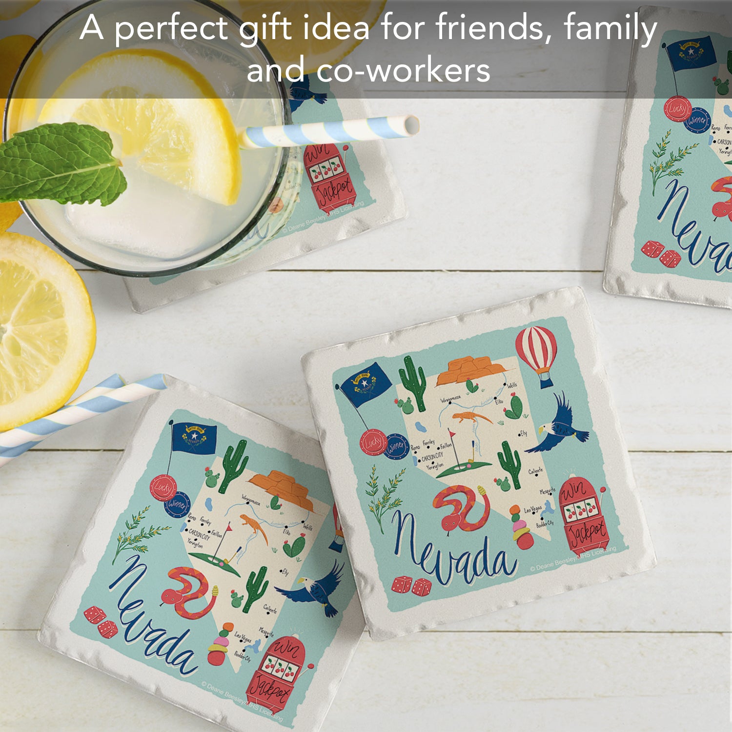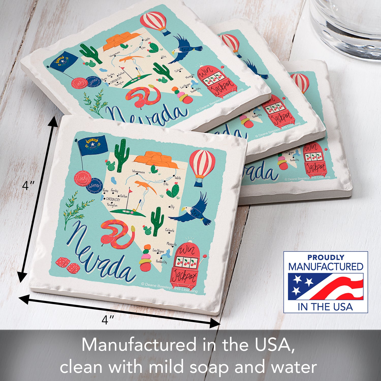 Thirstystone Nevada Home State 4 Pack Tumbled Tile Stone Coasters 4" Square Manufactured in the USA