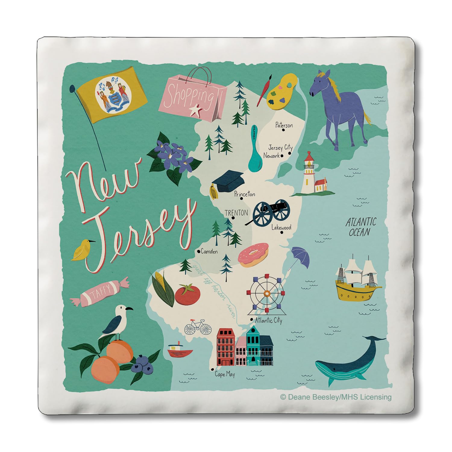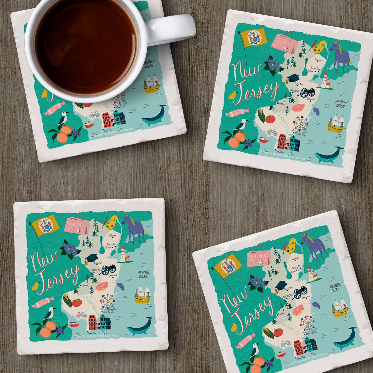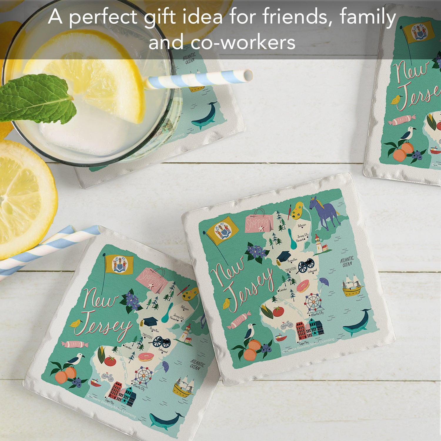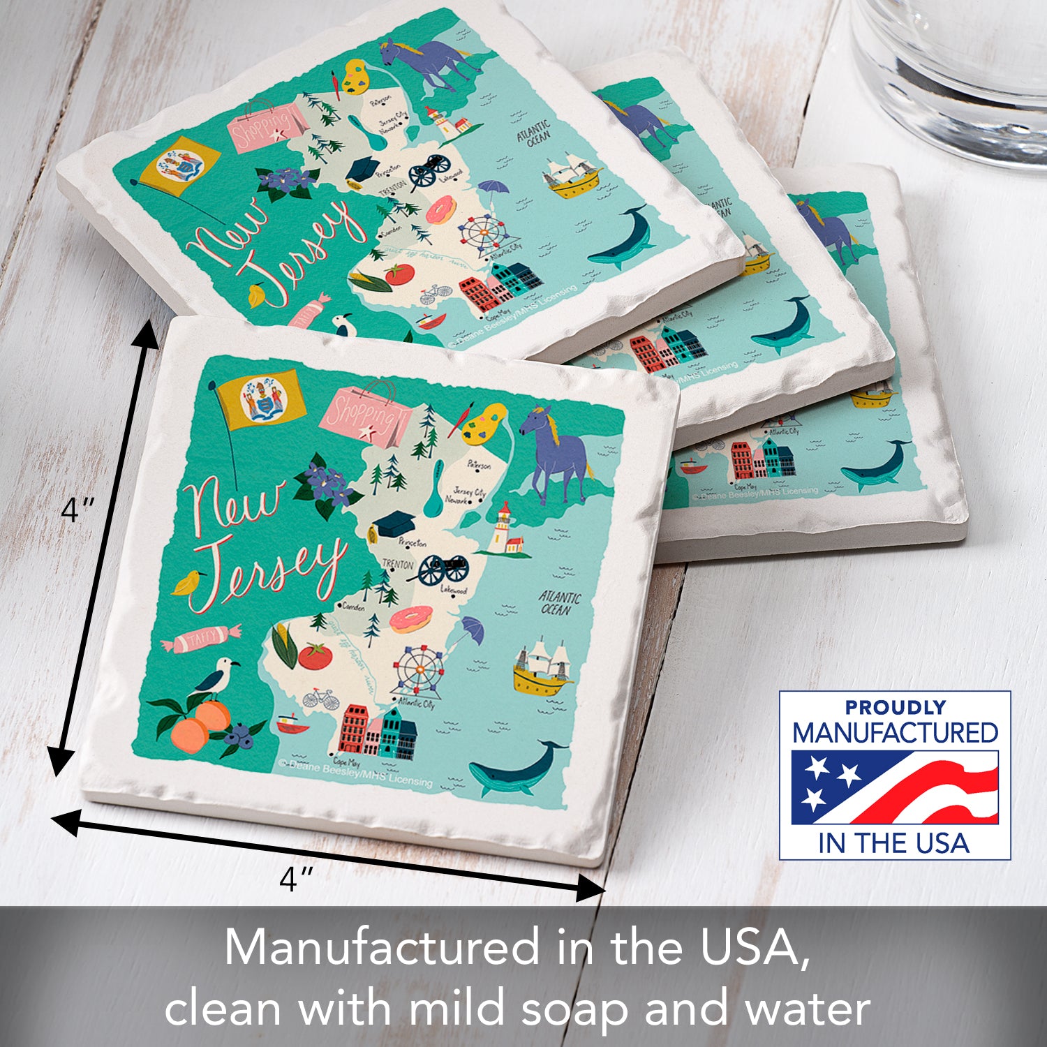 Thirstystone New Jersey Home State 4 Pack Tumbled Tile Stone Coasters 4" Square Manufactured in the USA