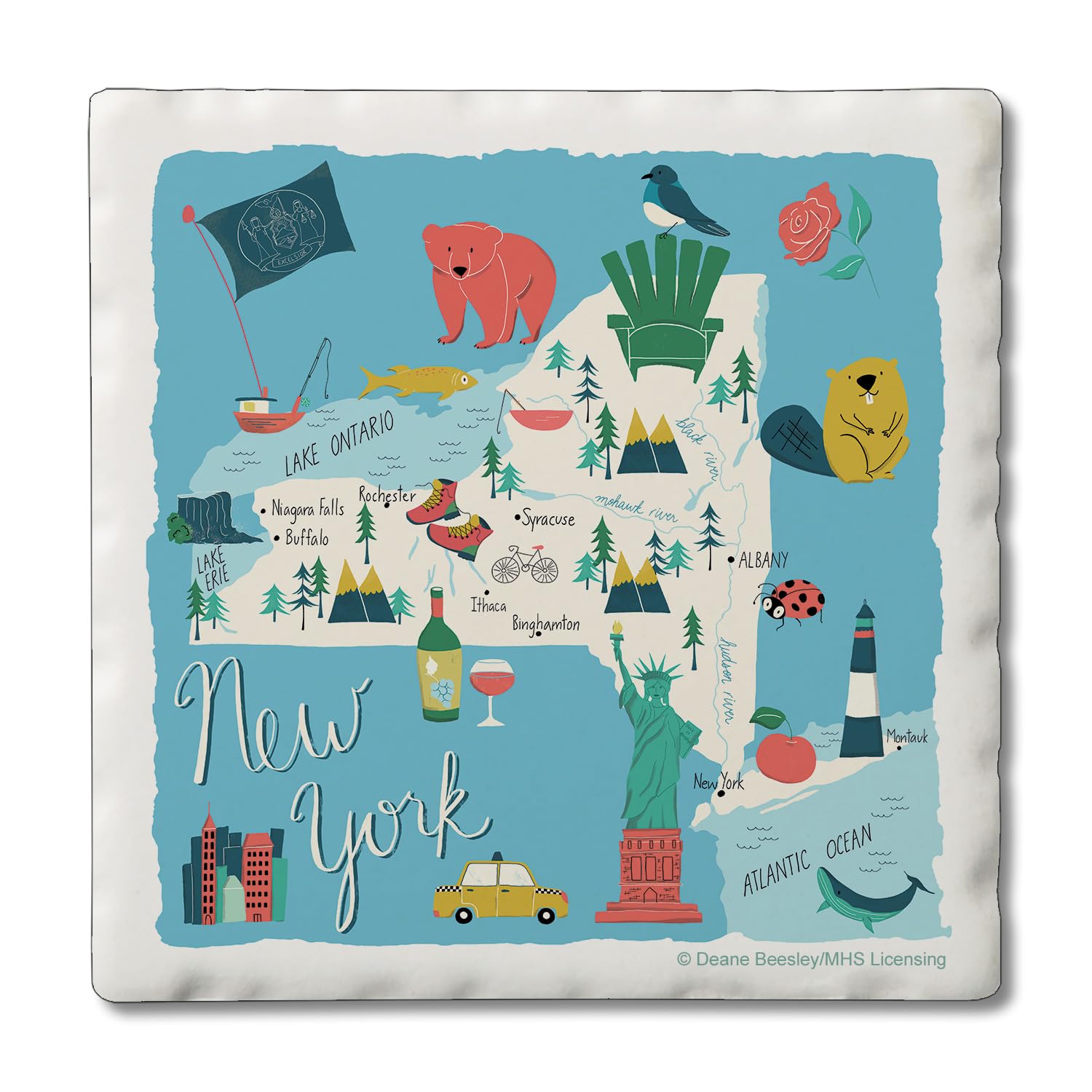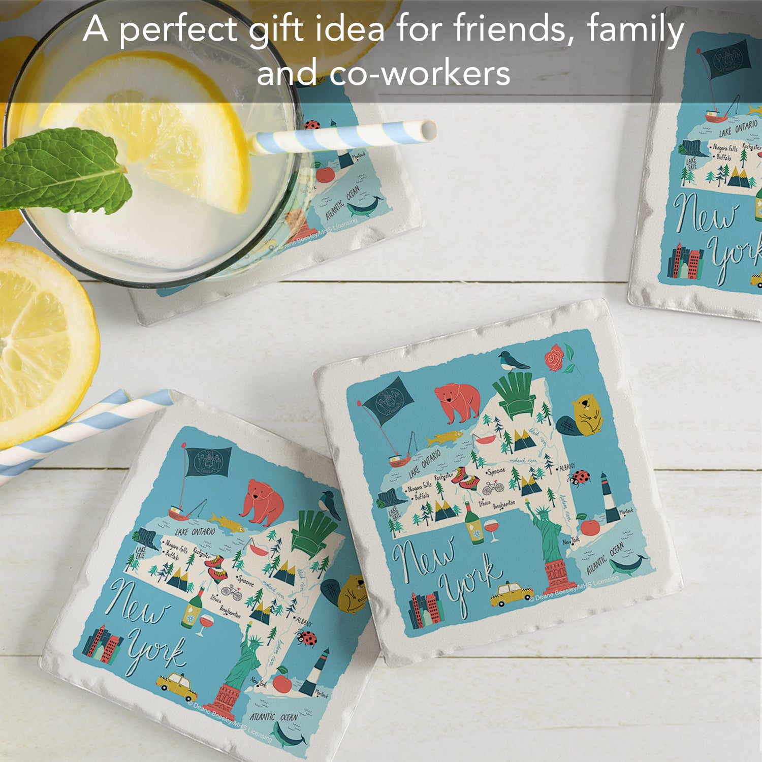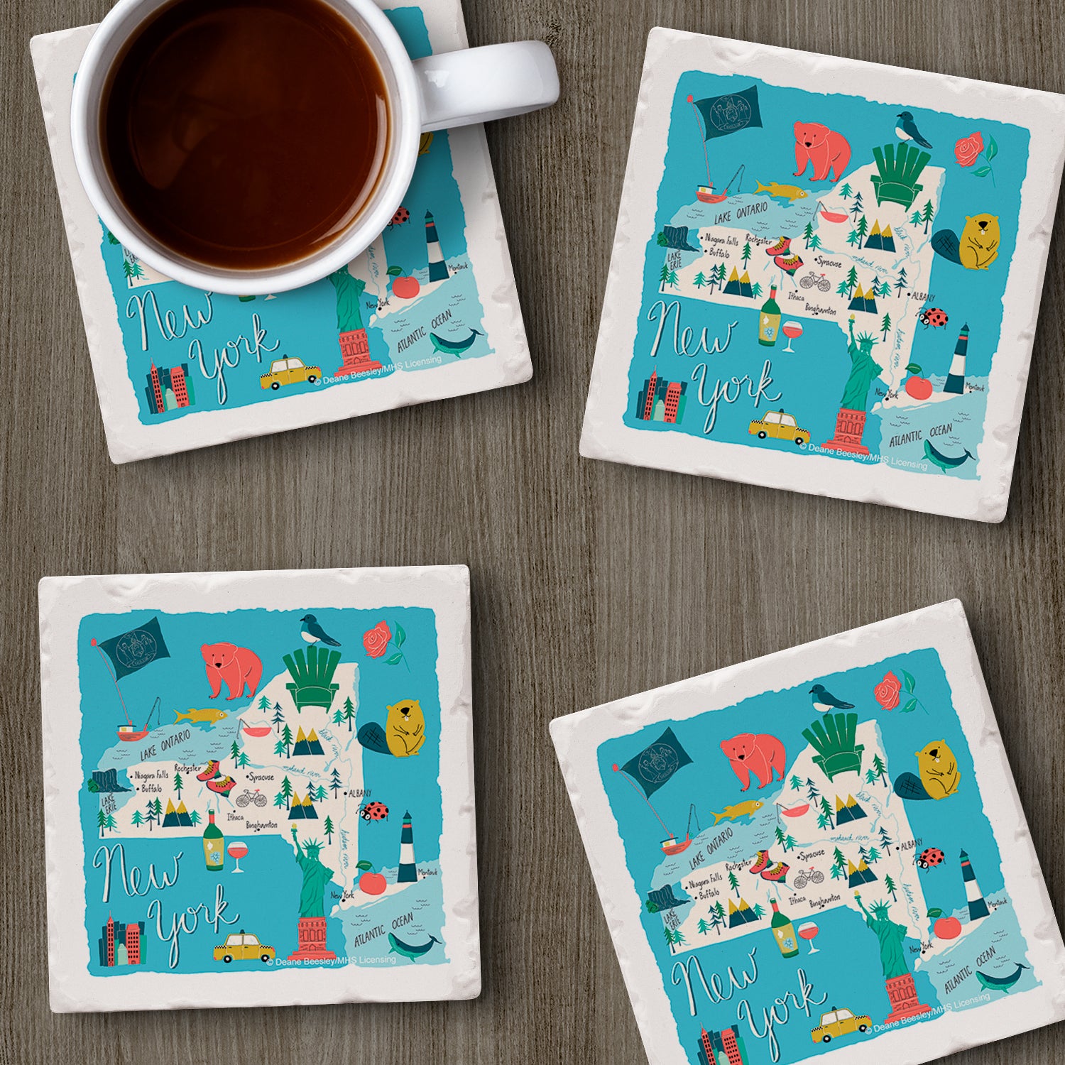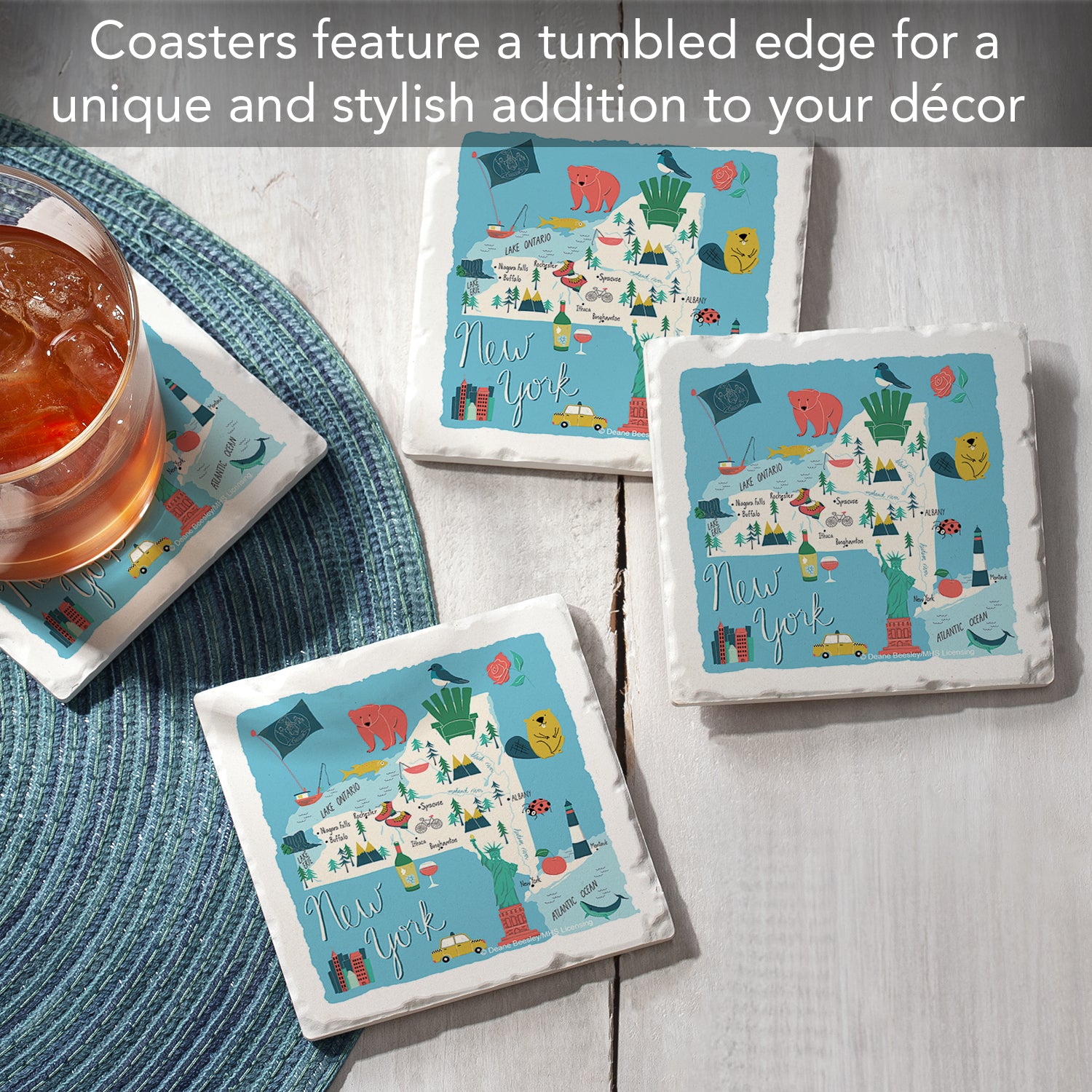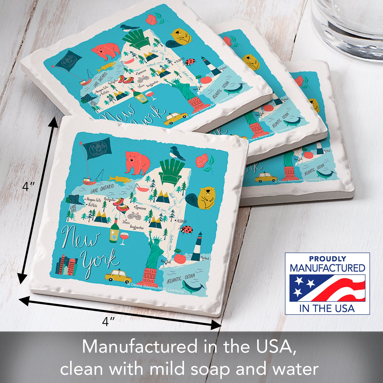 Thirstystone New York Home State 4 Pack Tumbled Tile Stone Coasters 4" Square Manufactured in the USA