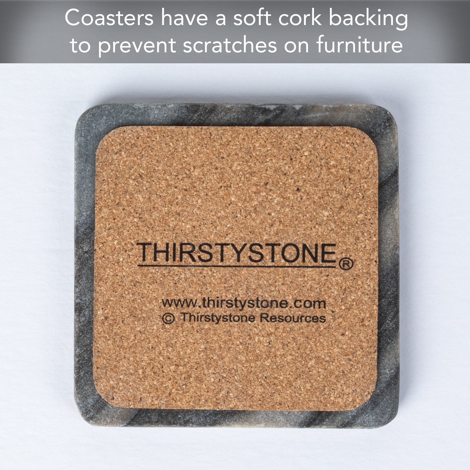 Thirstystone 4 Pack Black Natural Marble Square Coasters with Protective Cork Backing