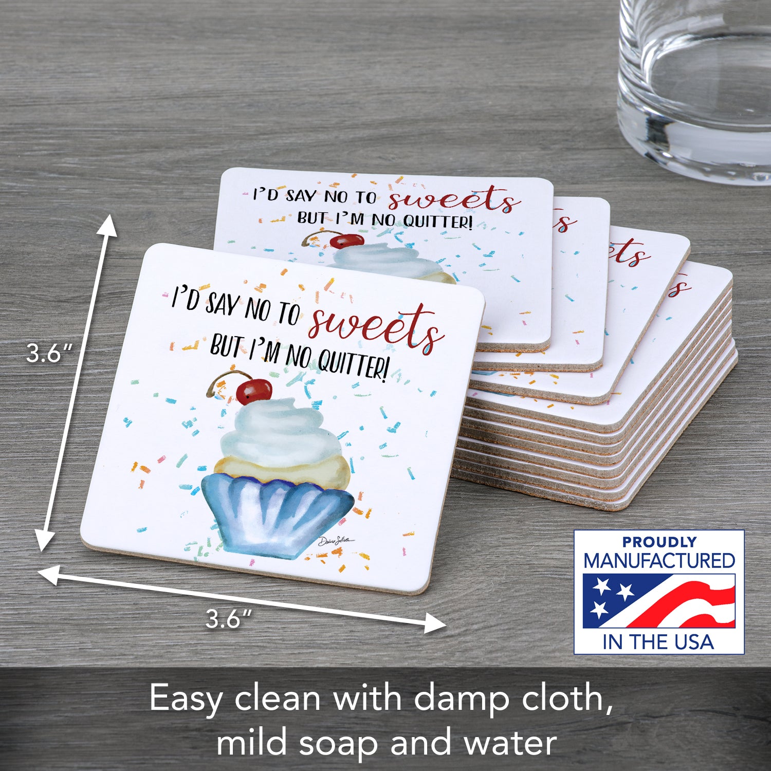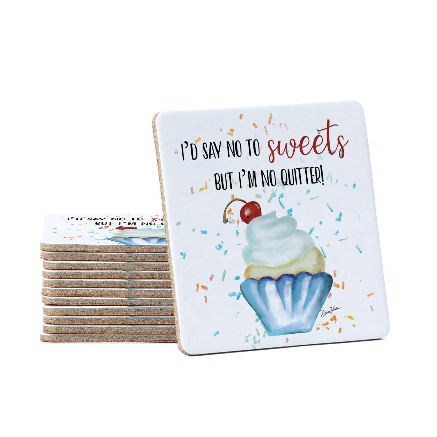 Thirstystone No Sweets 12-Pack Cork Back Paper Bar Coasters Made in The USA Humourous Quotes Attractive Designs