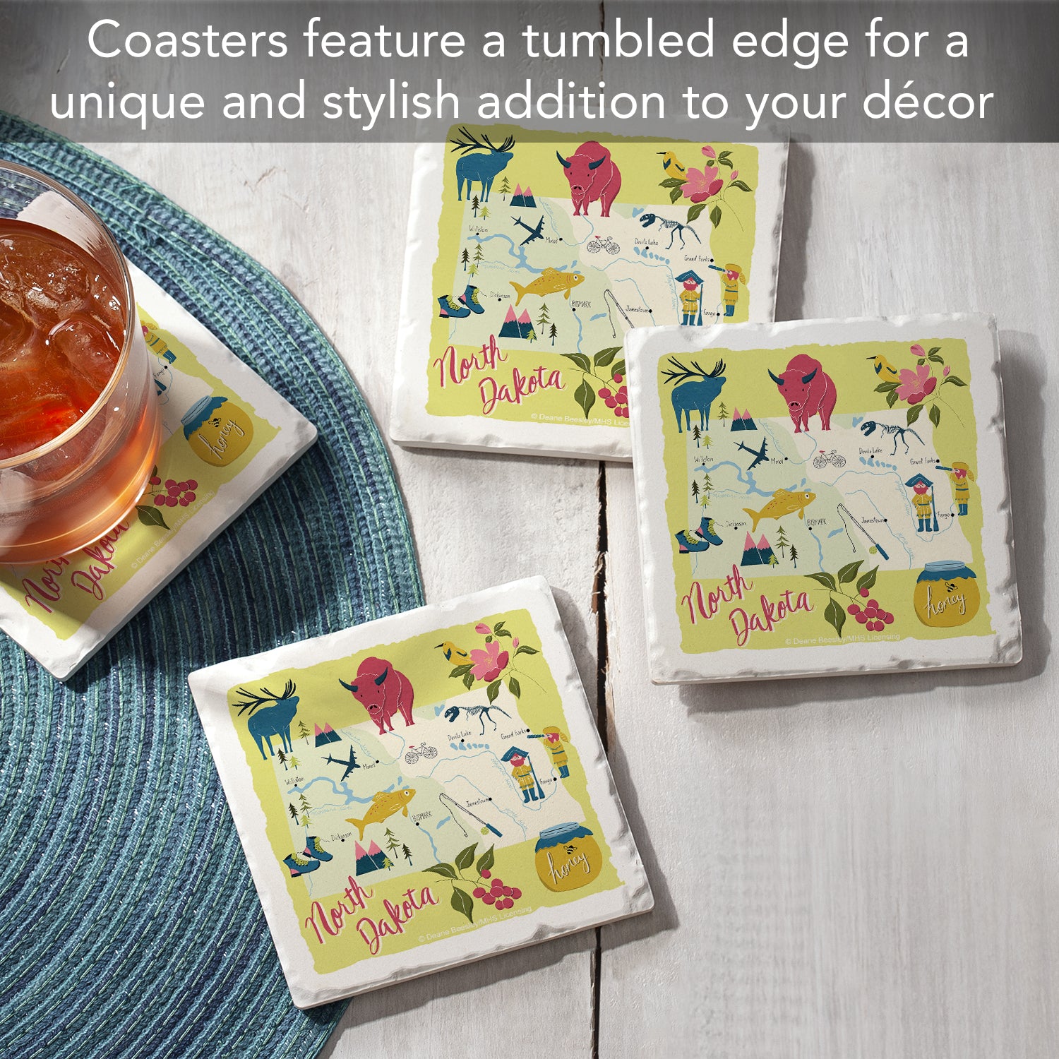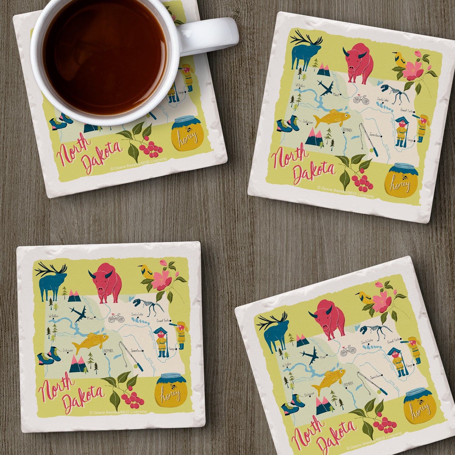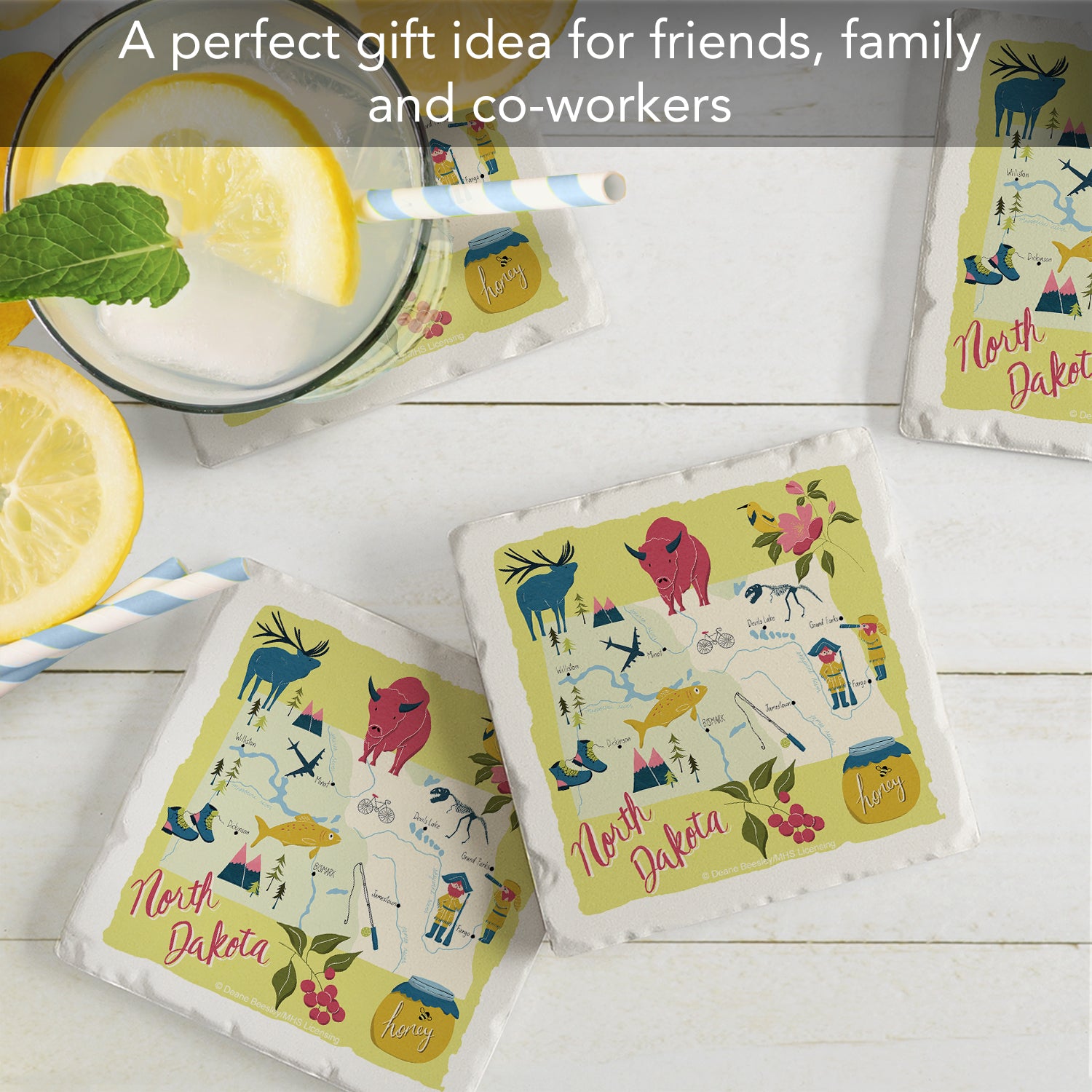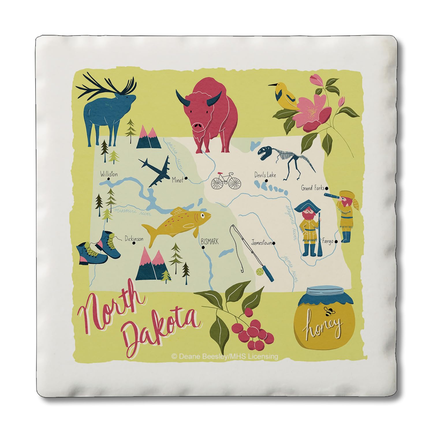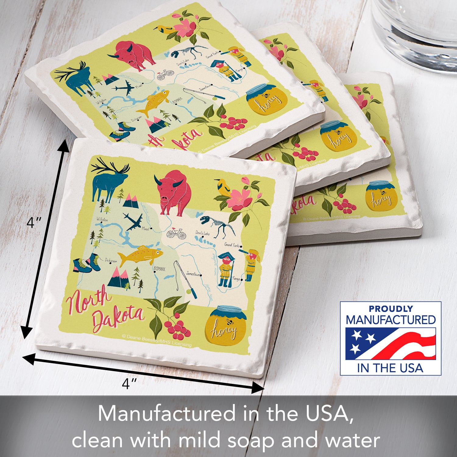 Thirstystone North Dakota Home State 4 Pack Tumbled Tile Stone Coasters 4" Square Manufactured in the USA