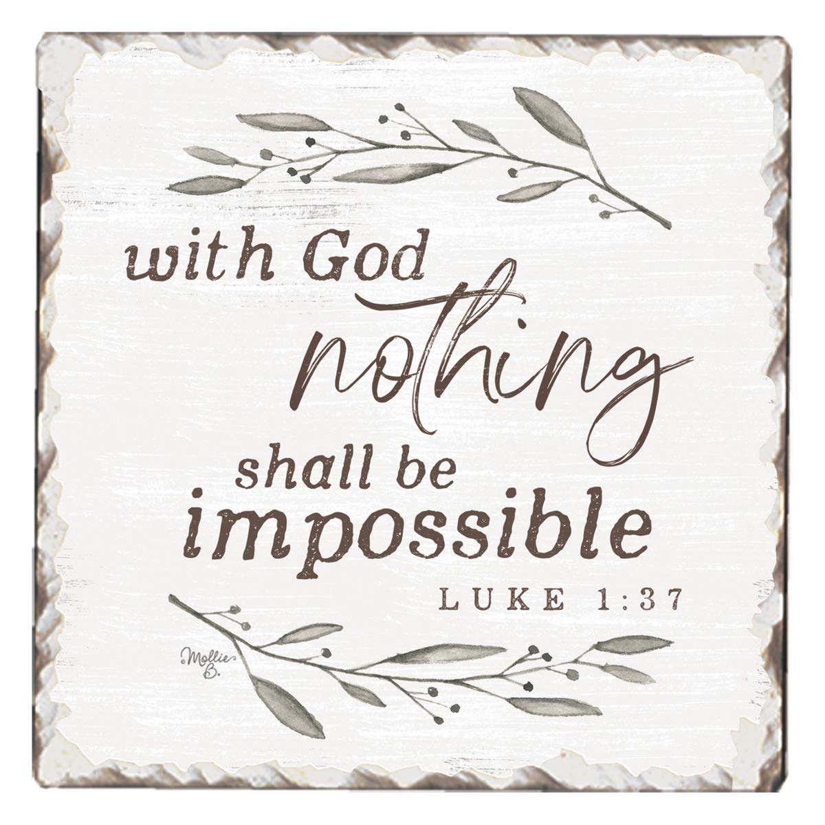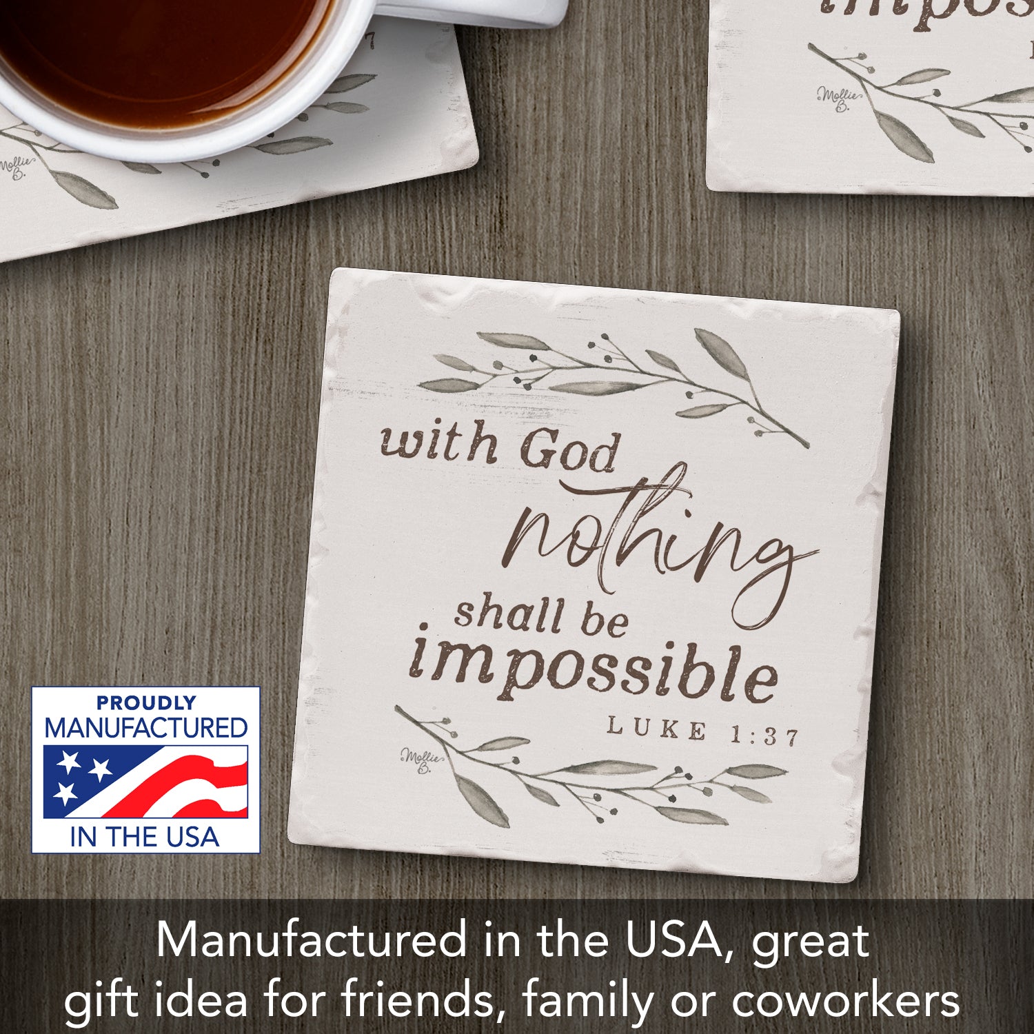 Thirstystone Nothing is Impossible Single Tumbled Tile Stone Coaster with Protective Cork Backing Manufactured in The USA 4" Square, Artistic, Easily Wipes Clean