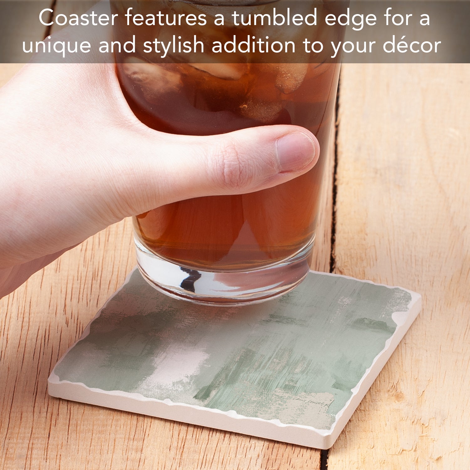 Thirstystone Oasis Single Tumbled Tile Stone Coaster with Protective Cork Backing Manufactured in The USA 4" Square, Colorful, Artistiic, Easily Wipes Clean