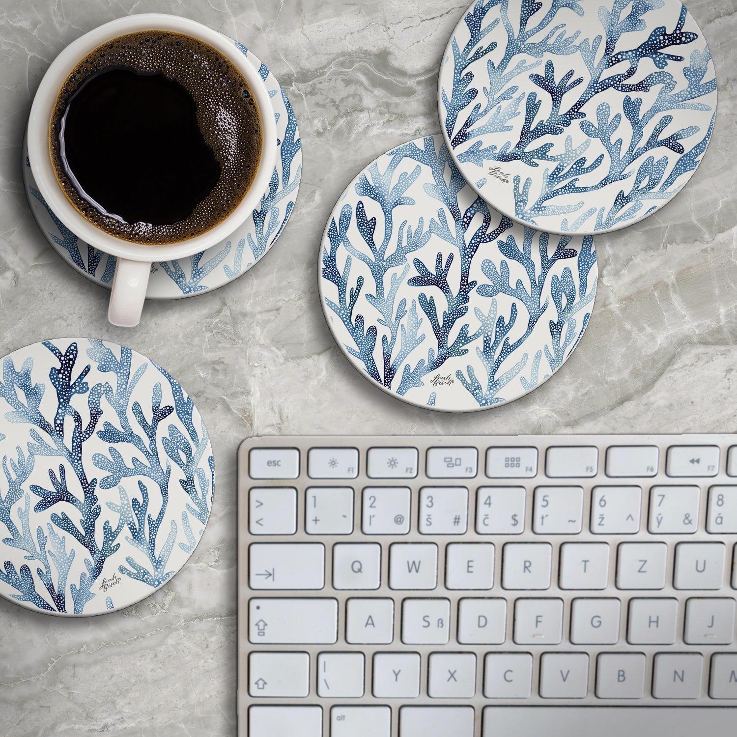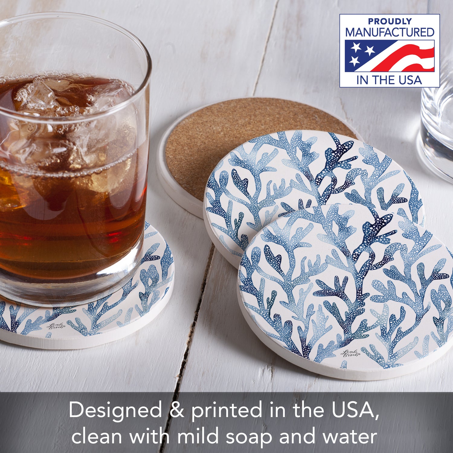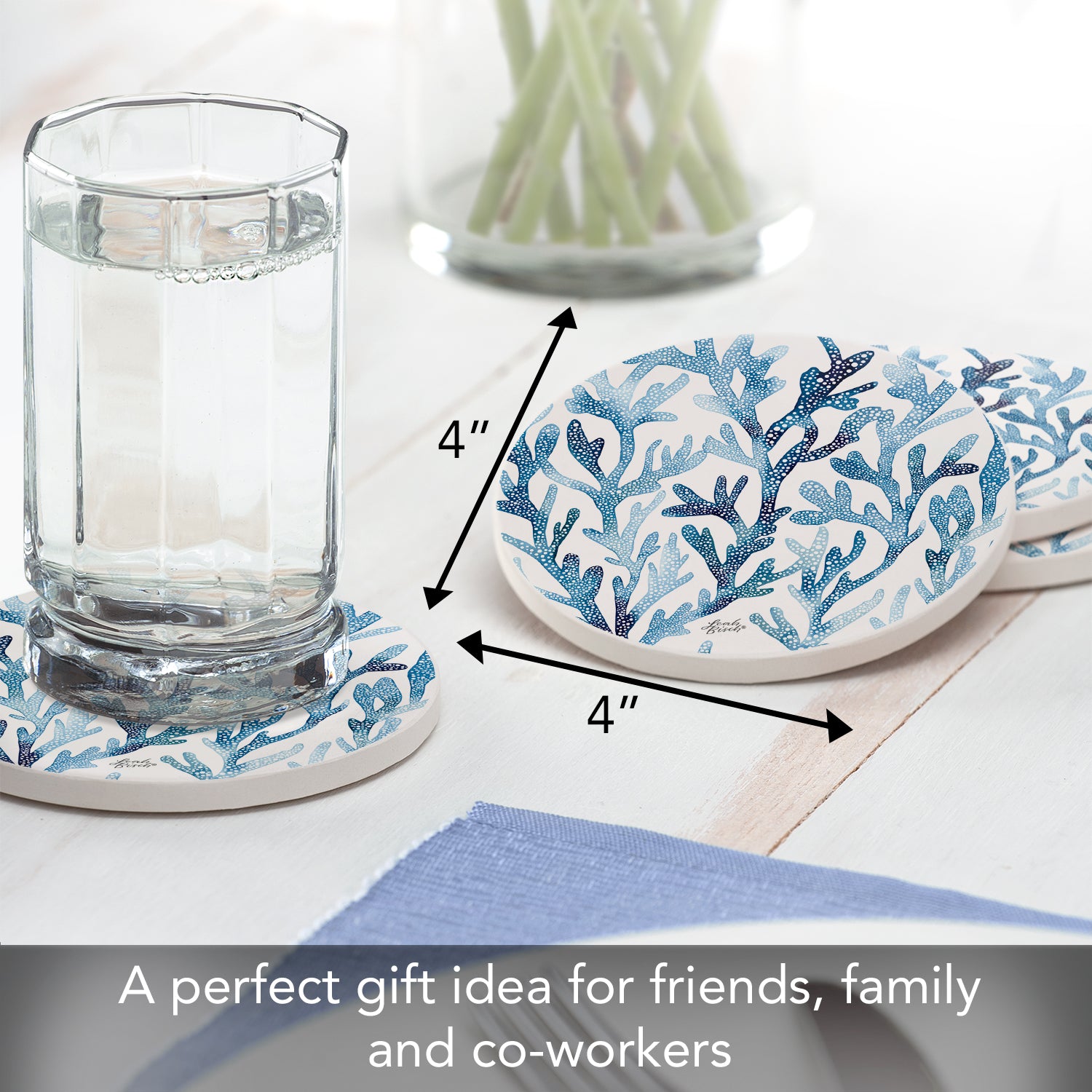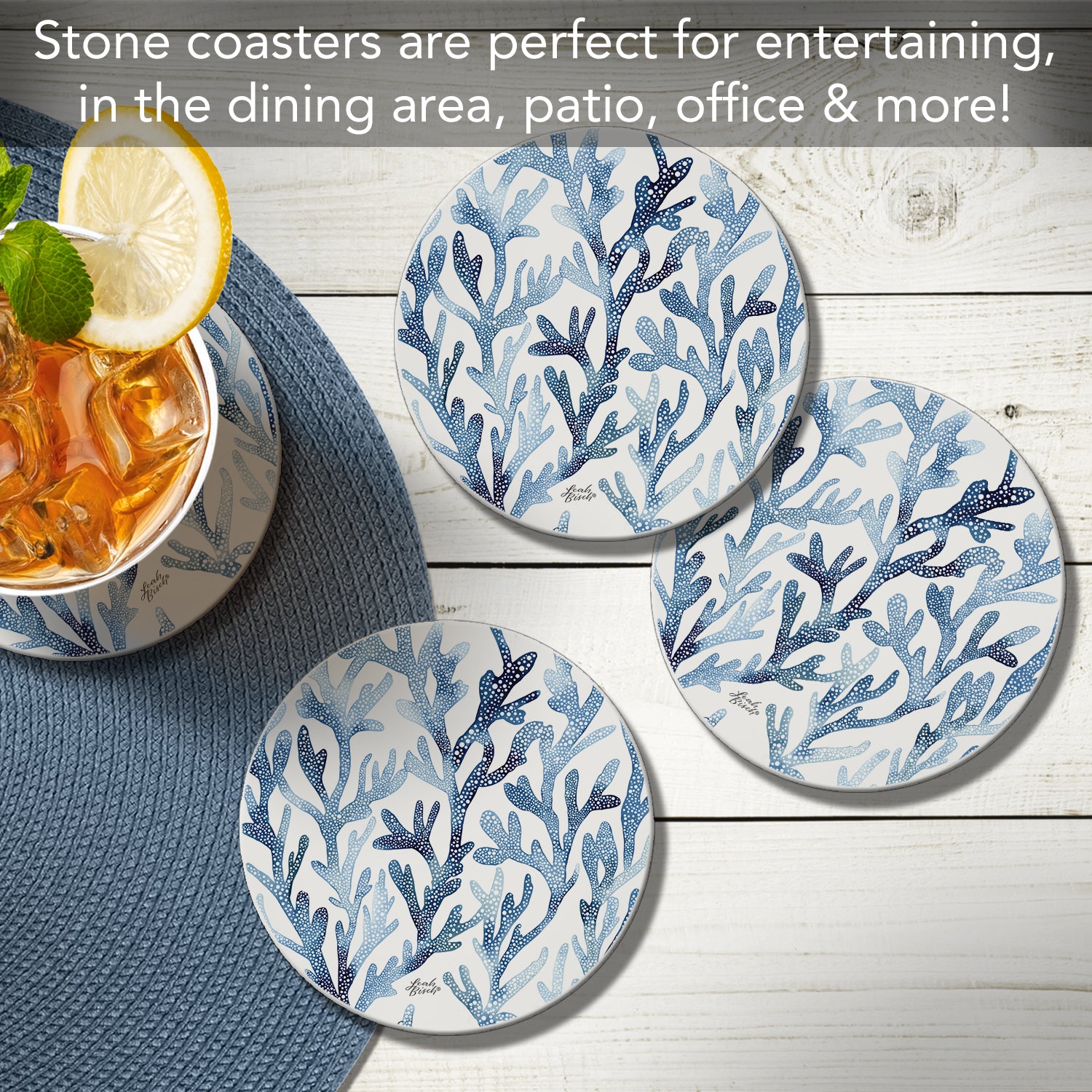 Thirstystone Ocean Coral 4 Pack Round Absorbent Stone Coasters 4" Diameter Manufactured in the USA