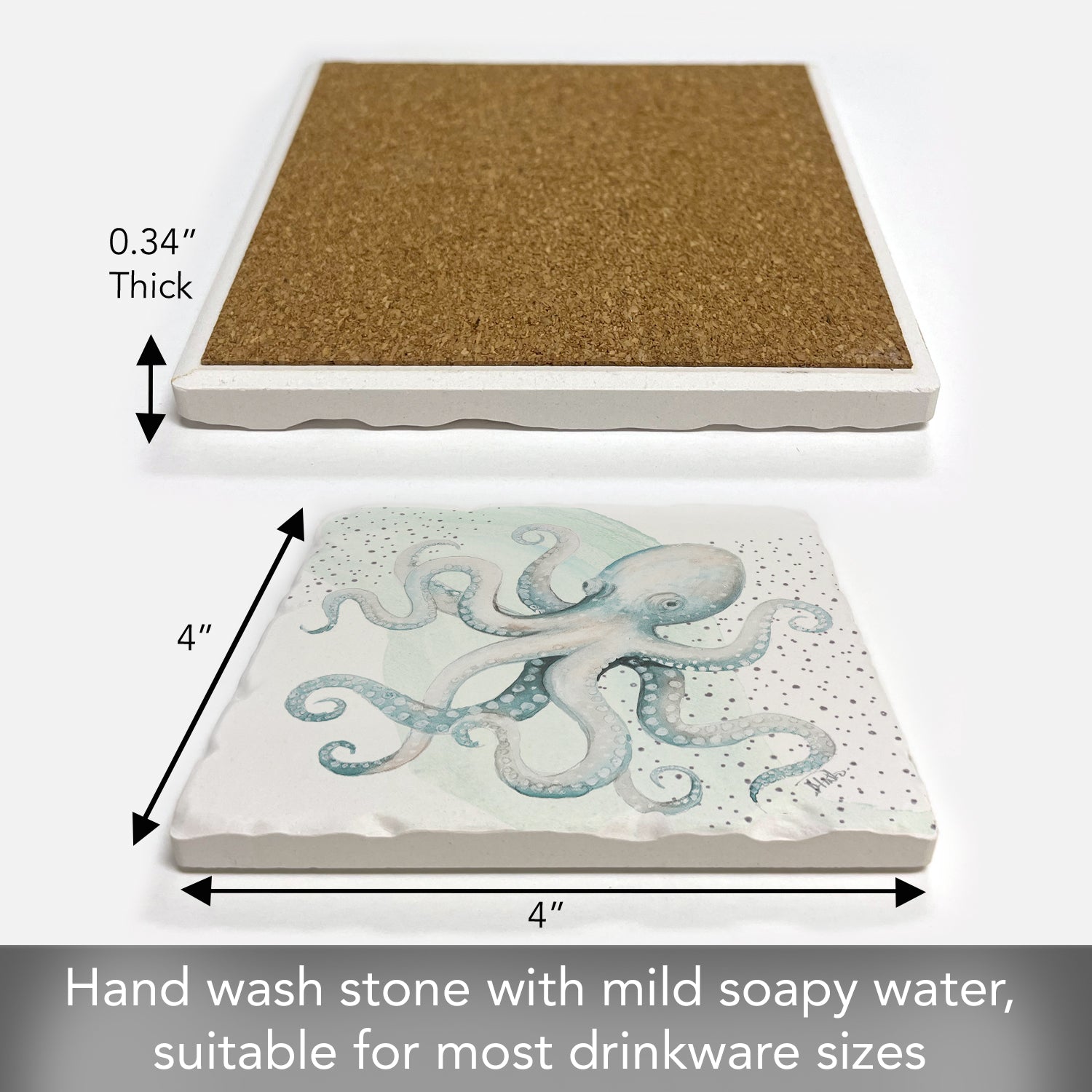 Thirstystone Ocean Octopus Single Tumbled Tile Stone Coaster with Protective Cork Backing Manufactured in The USA 4" Square, Colorful, Artistiic, Easily Wipes Clean