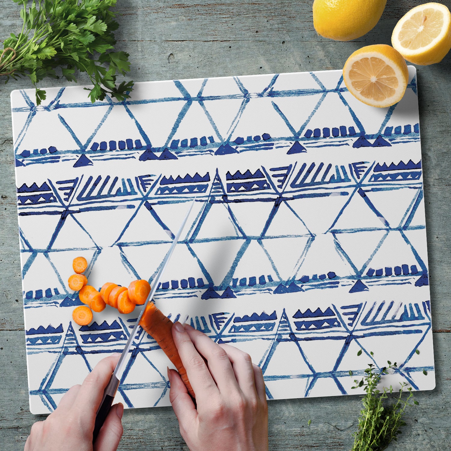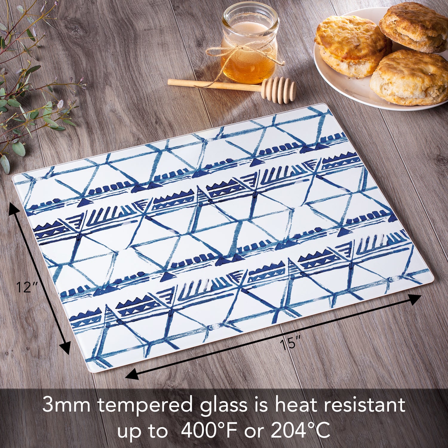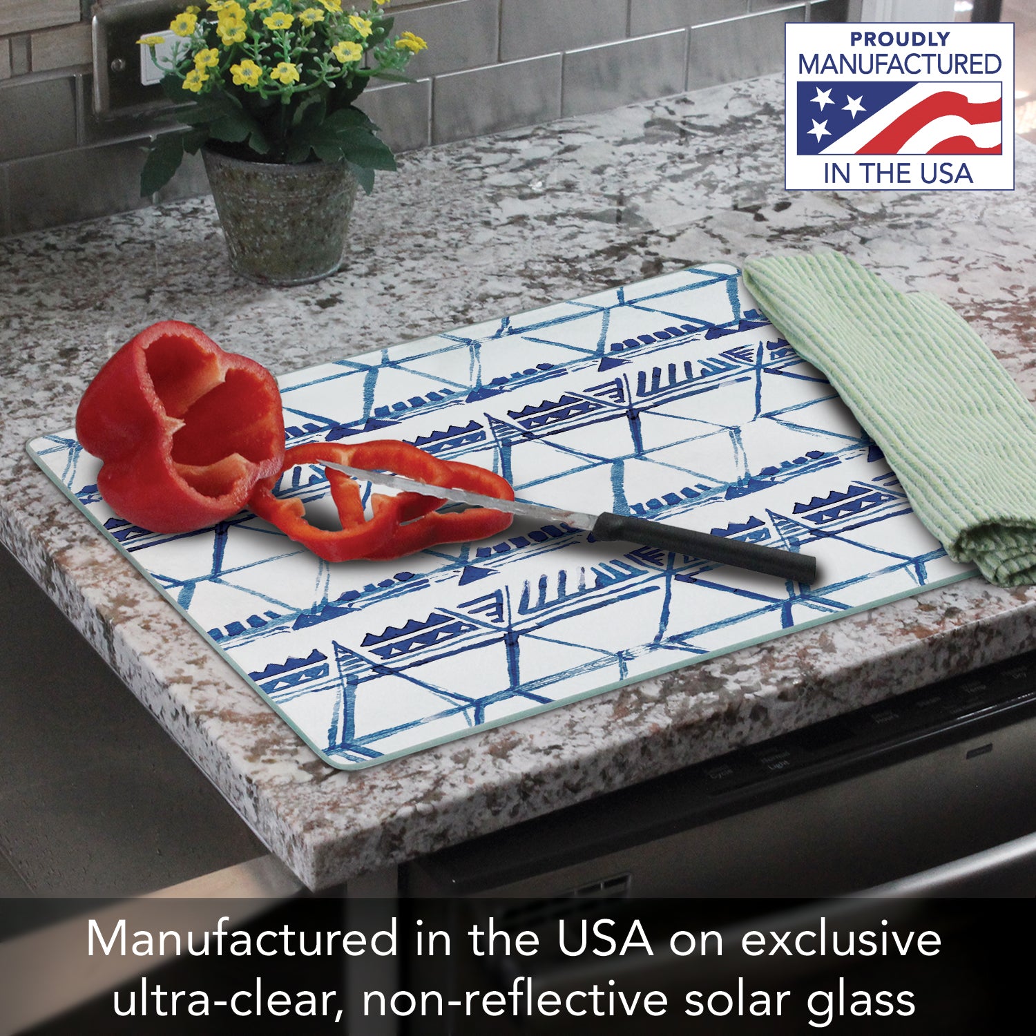 CounterArt Open Triangles 3mm Tempered Glass Cutting Board 15” x 12” Manufactured in the USA