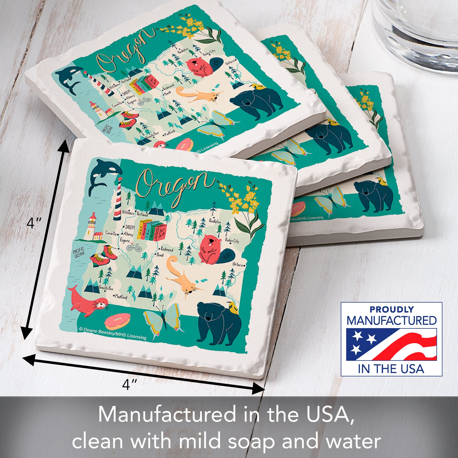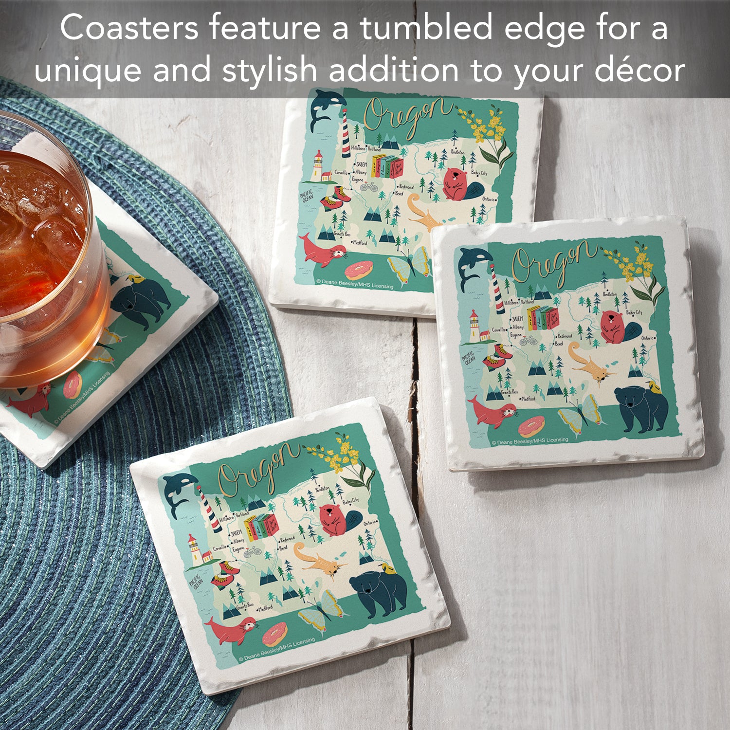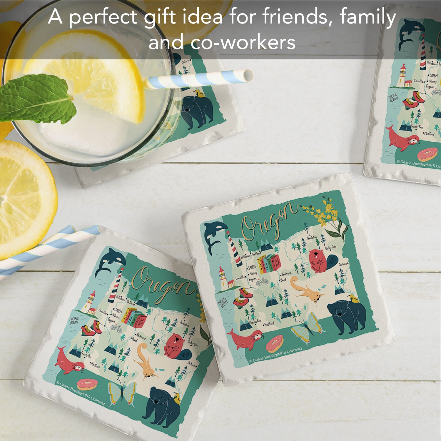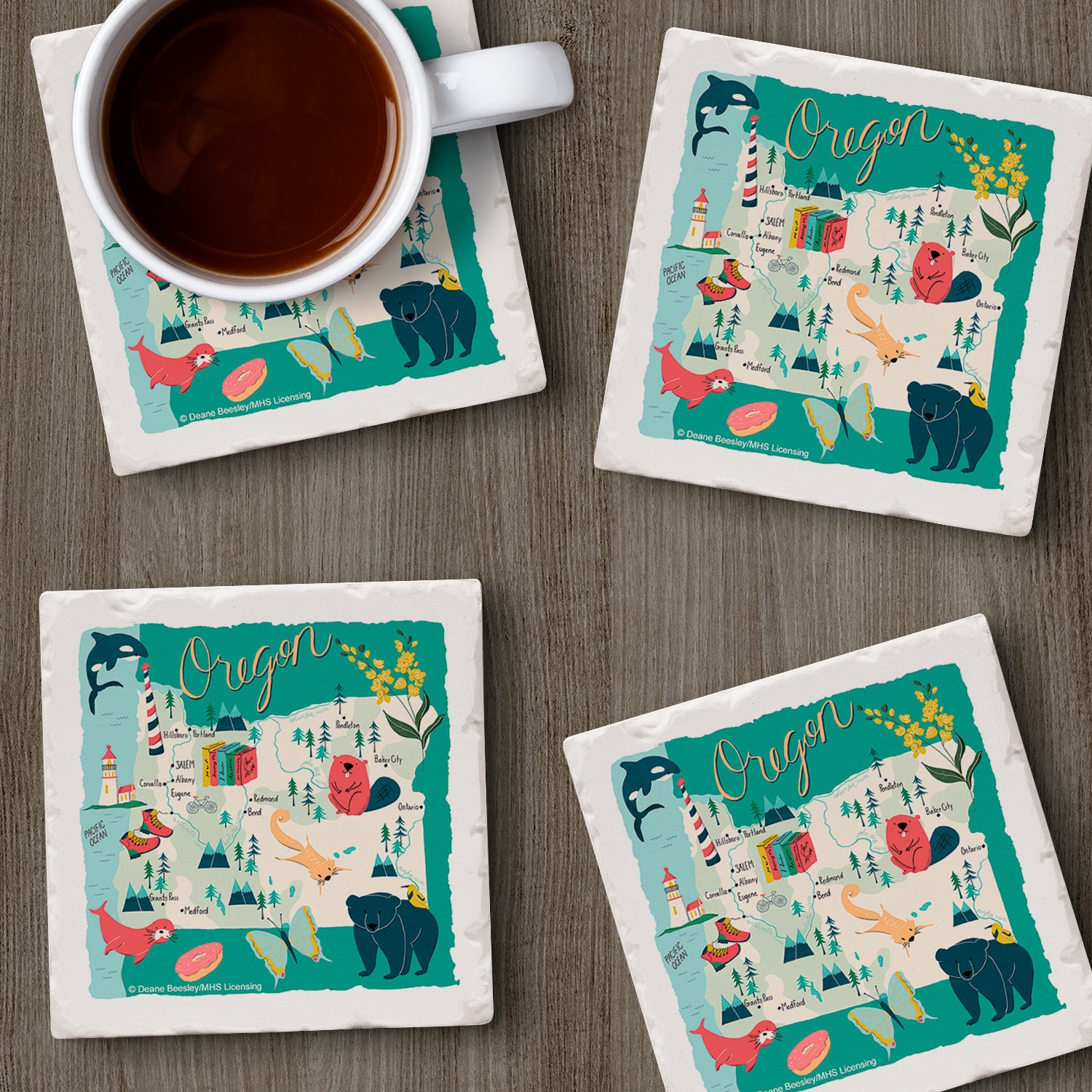 Thirstystone Oregon Home State 4 Pack Tumbled Tile Stone Coasters 4" Square Manufactured in the USA