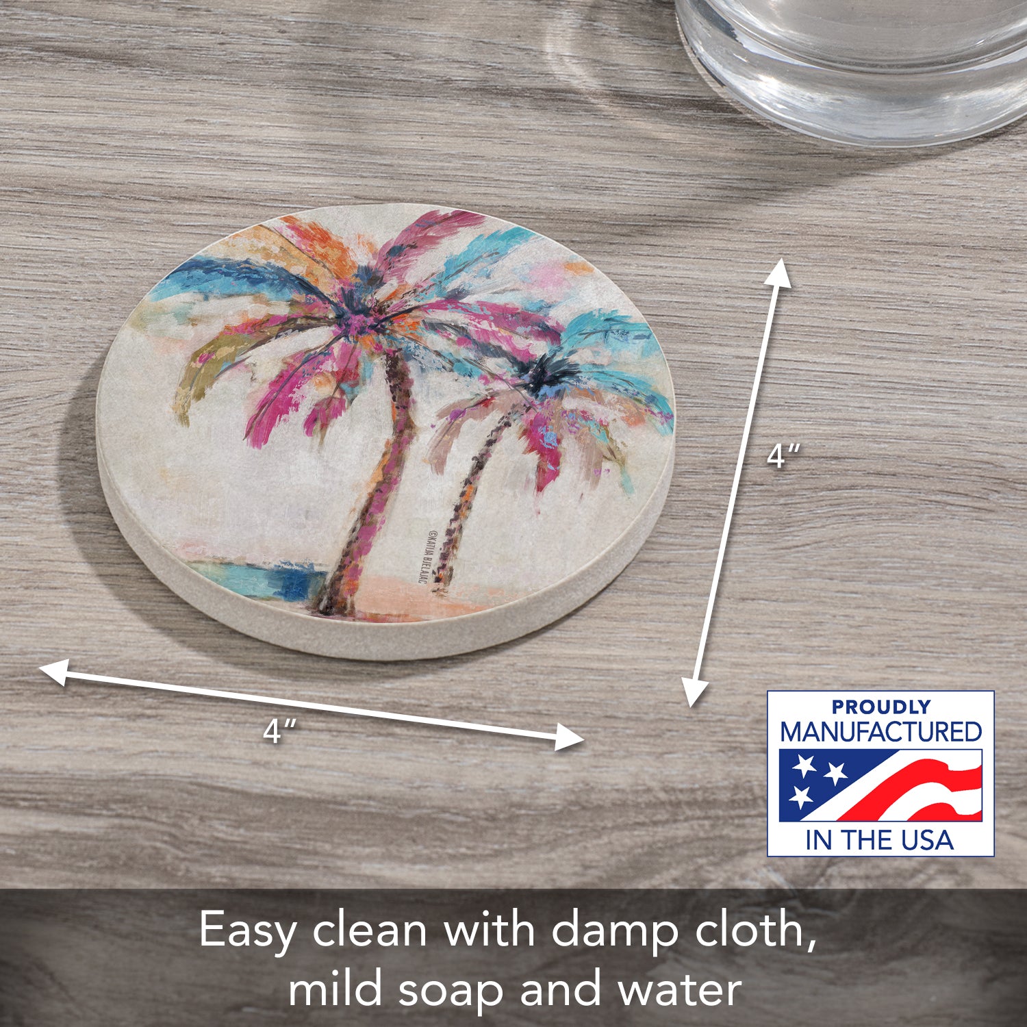 Painted Palms Single Natural Sandstone Coaster 4" Round Create Your Own Set
