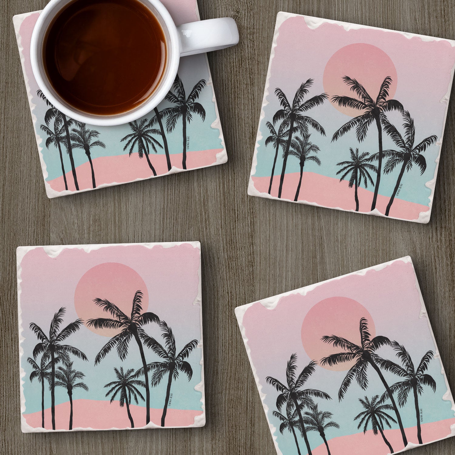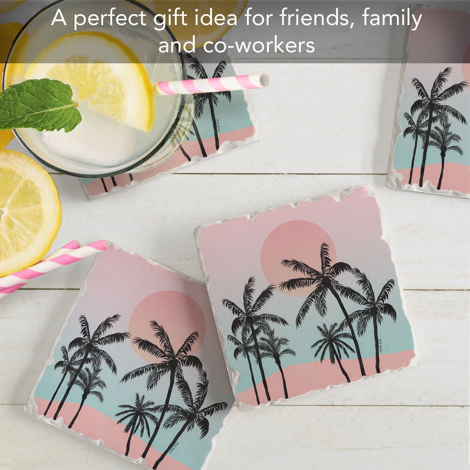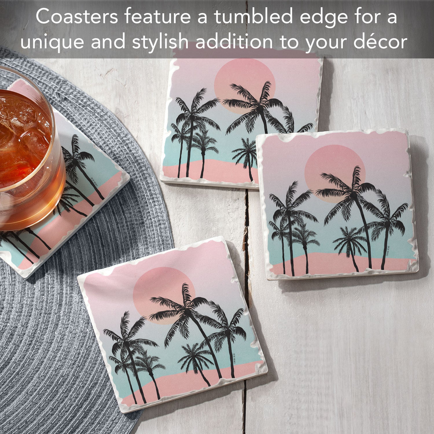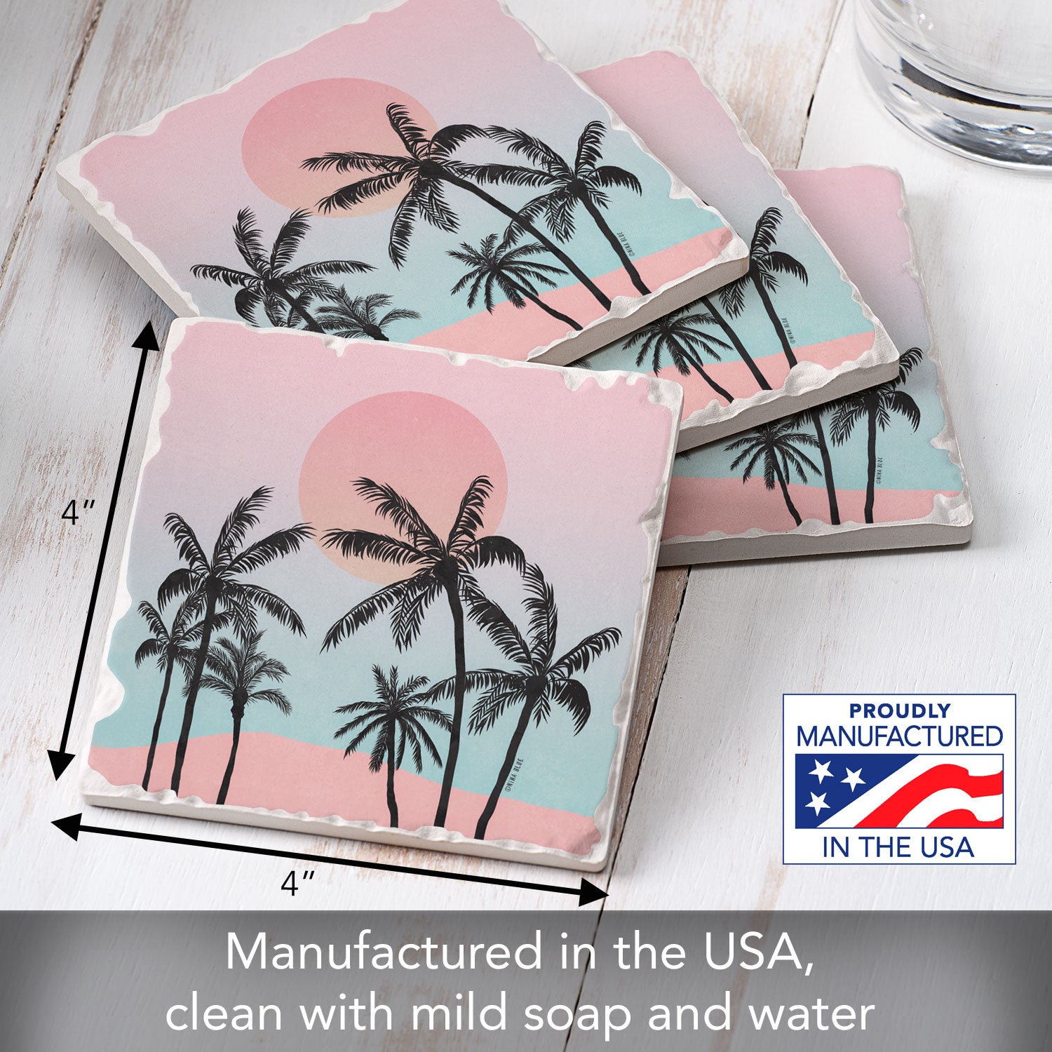 Thirstystone Palm Tree Coast 4 Pack Tumbled Tile Stone Coasters 4" Square Manufactured in the USA