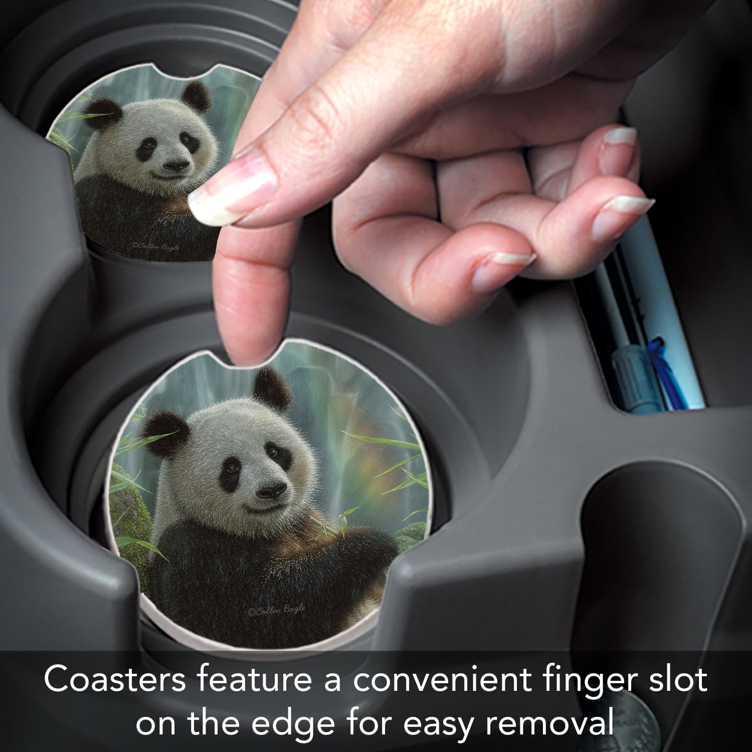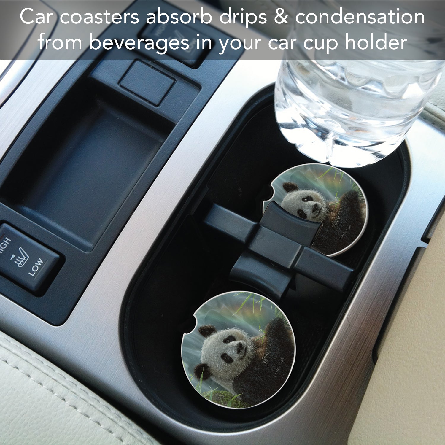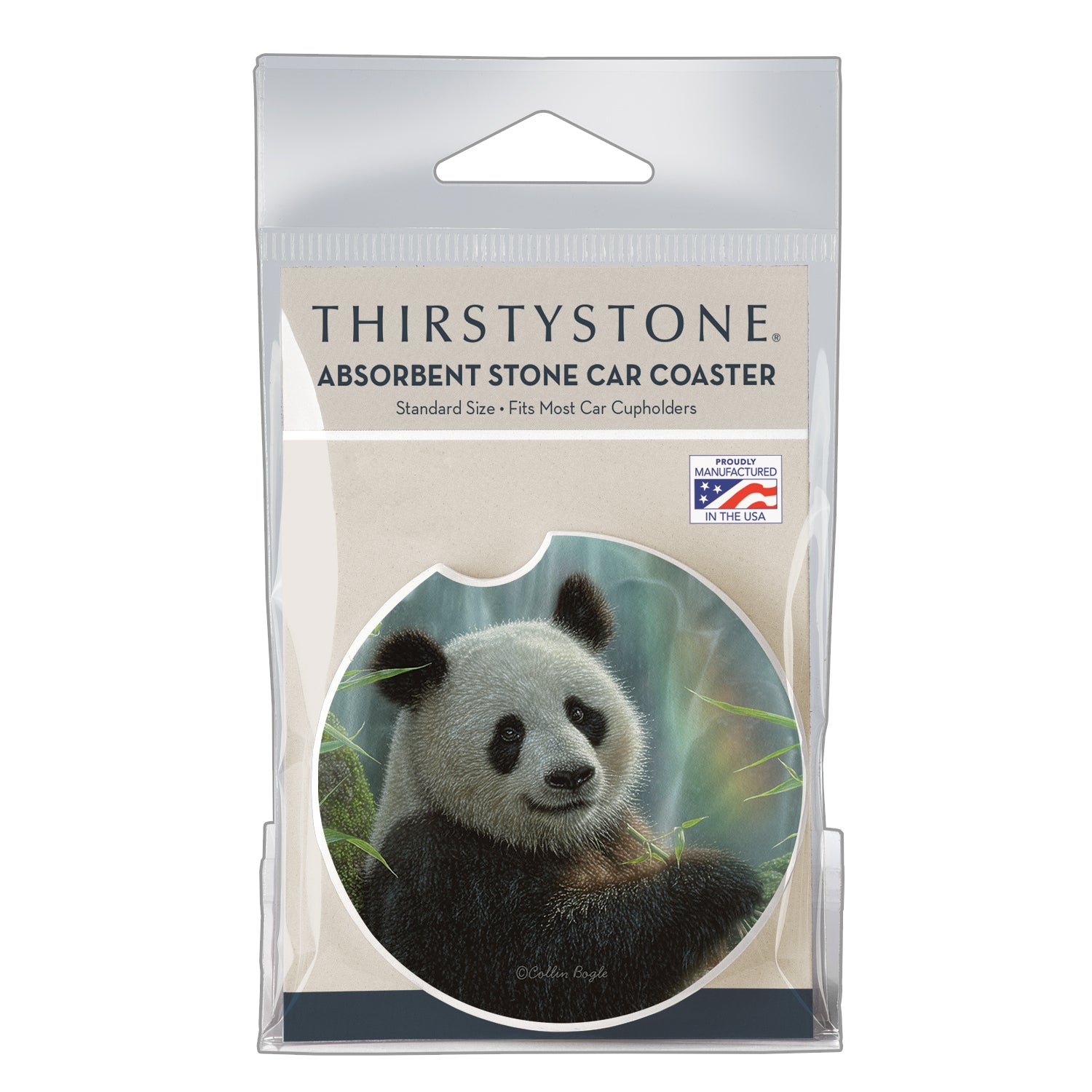 Thirstystone Panda Paradise Single Absorbent Stone Coaster for Vehicle Cup Holder 2.6” Diameter Manufactured in The USA