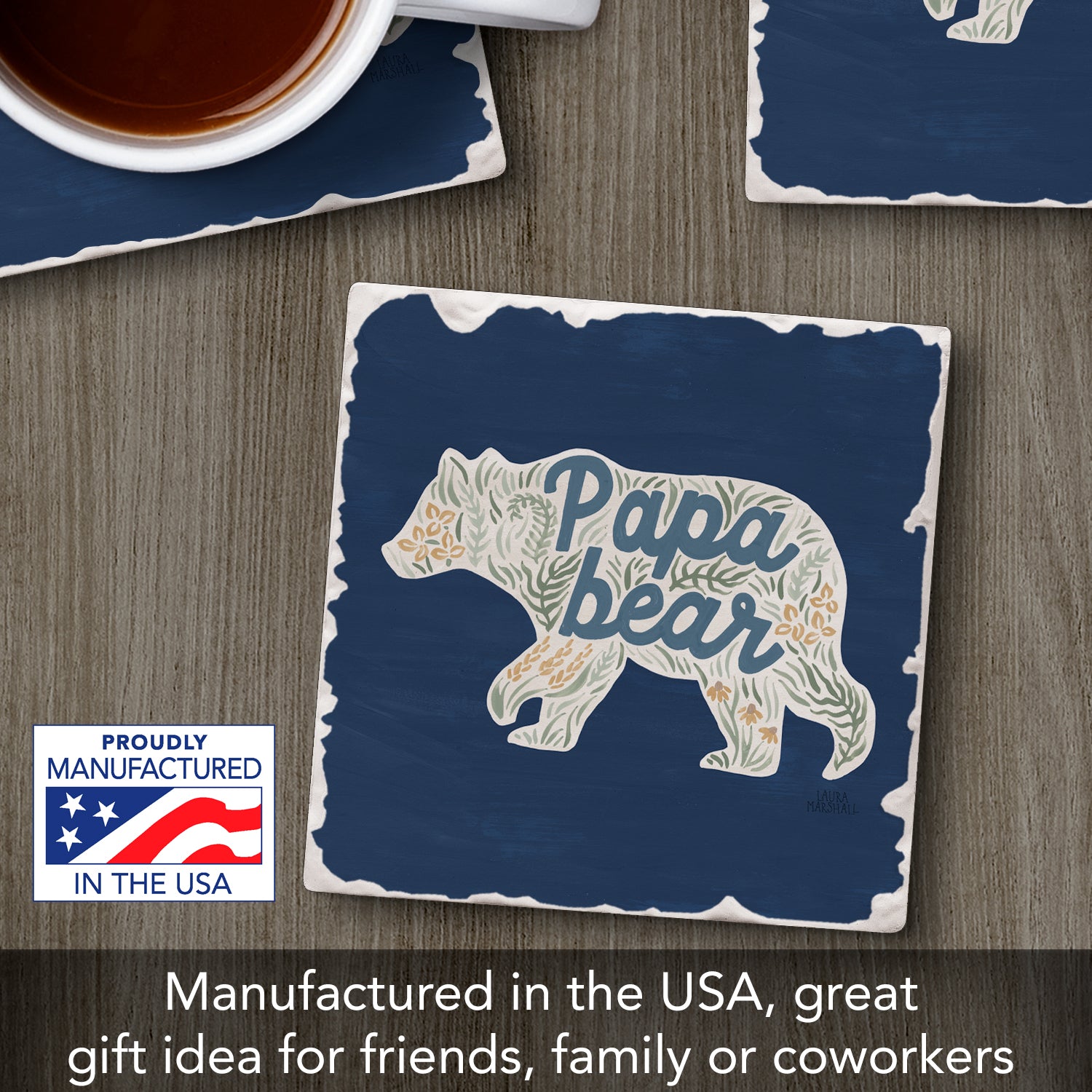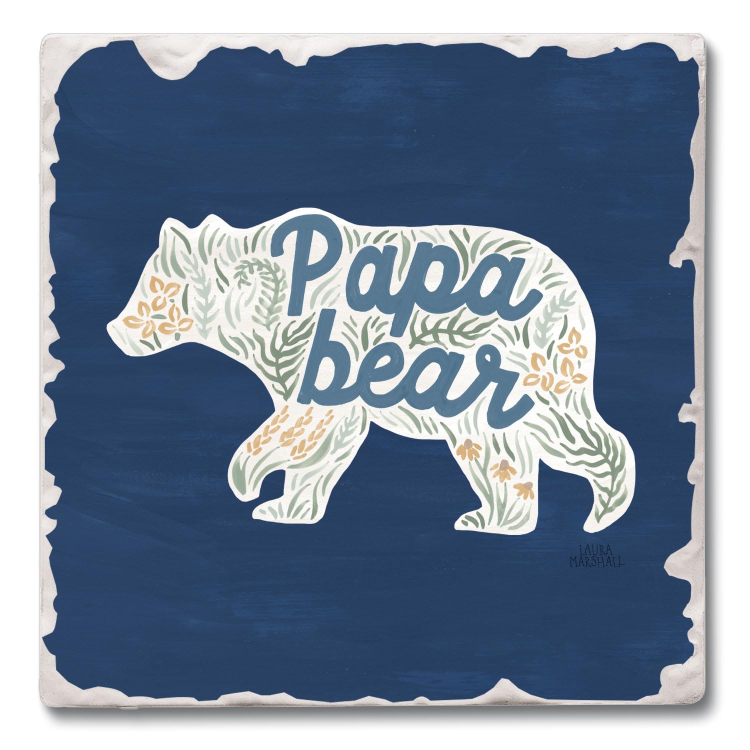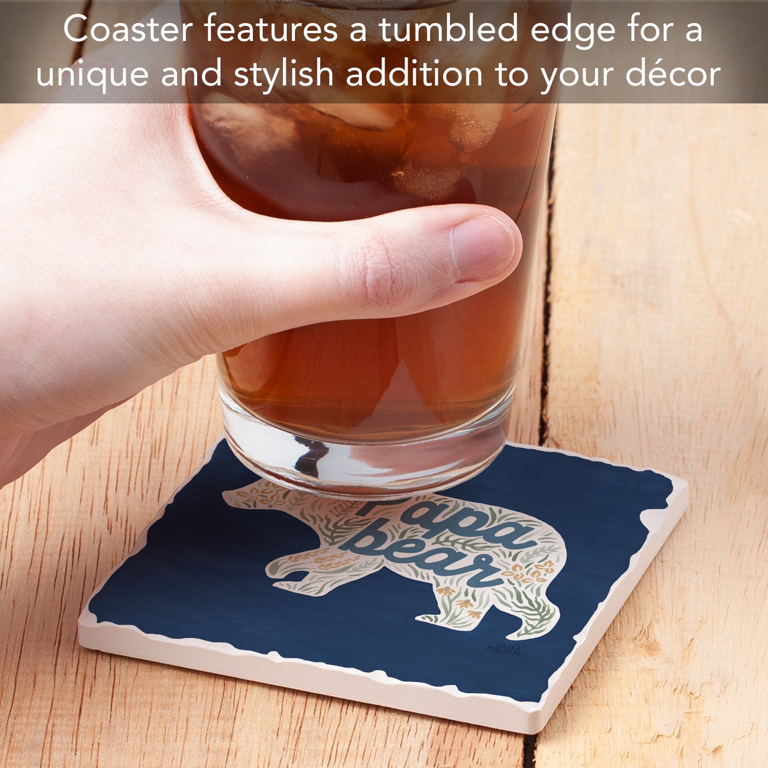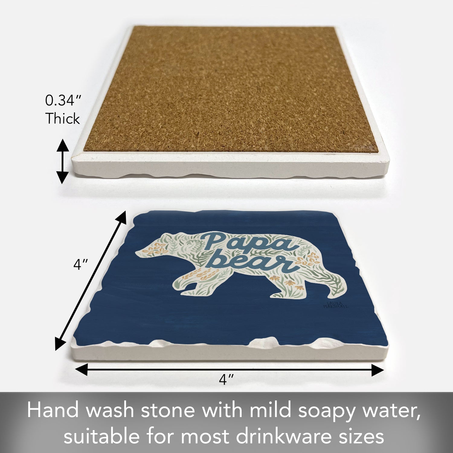 Thirstystone Papa Bear Single Tumbled Tile Stone Coaster with Protective Cork Backing Manufactured in The USA 4" Square
