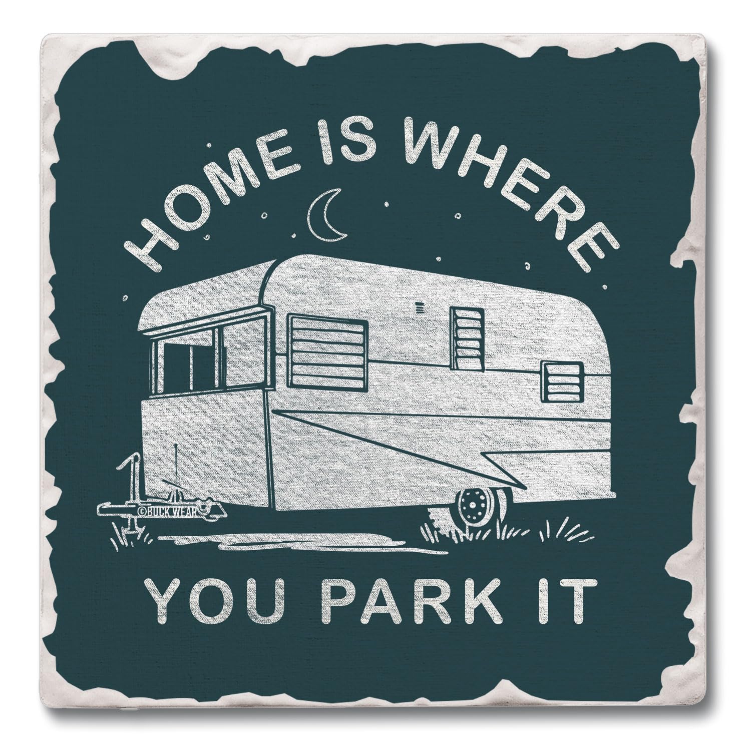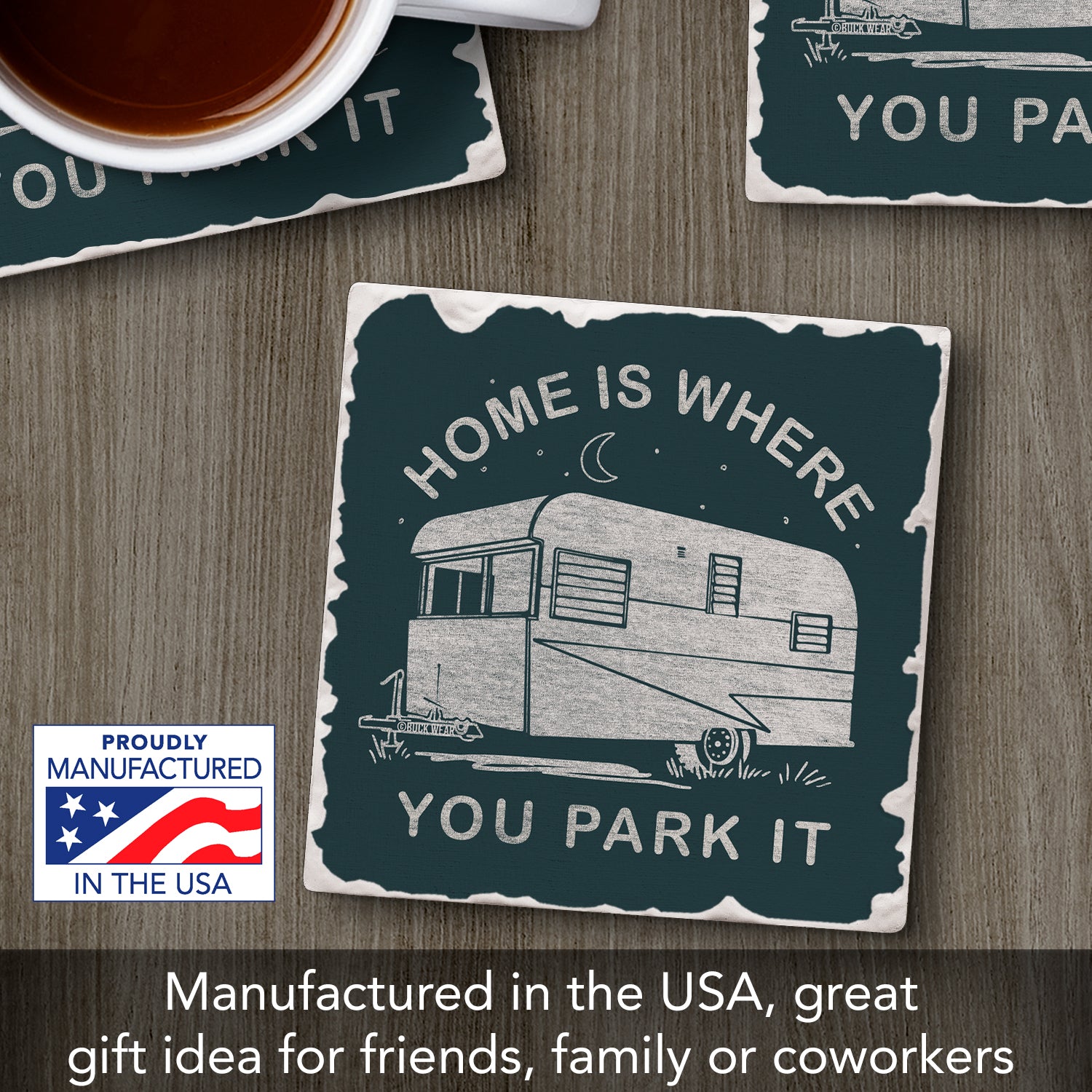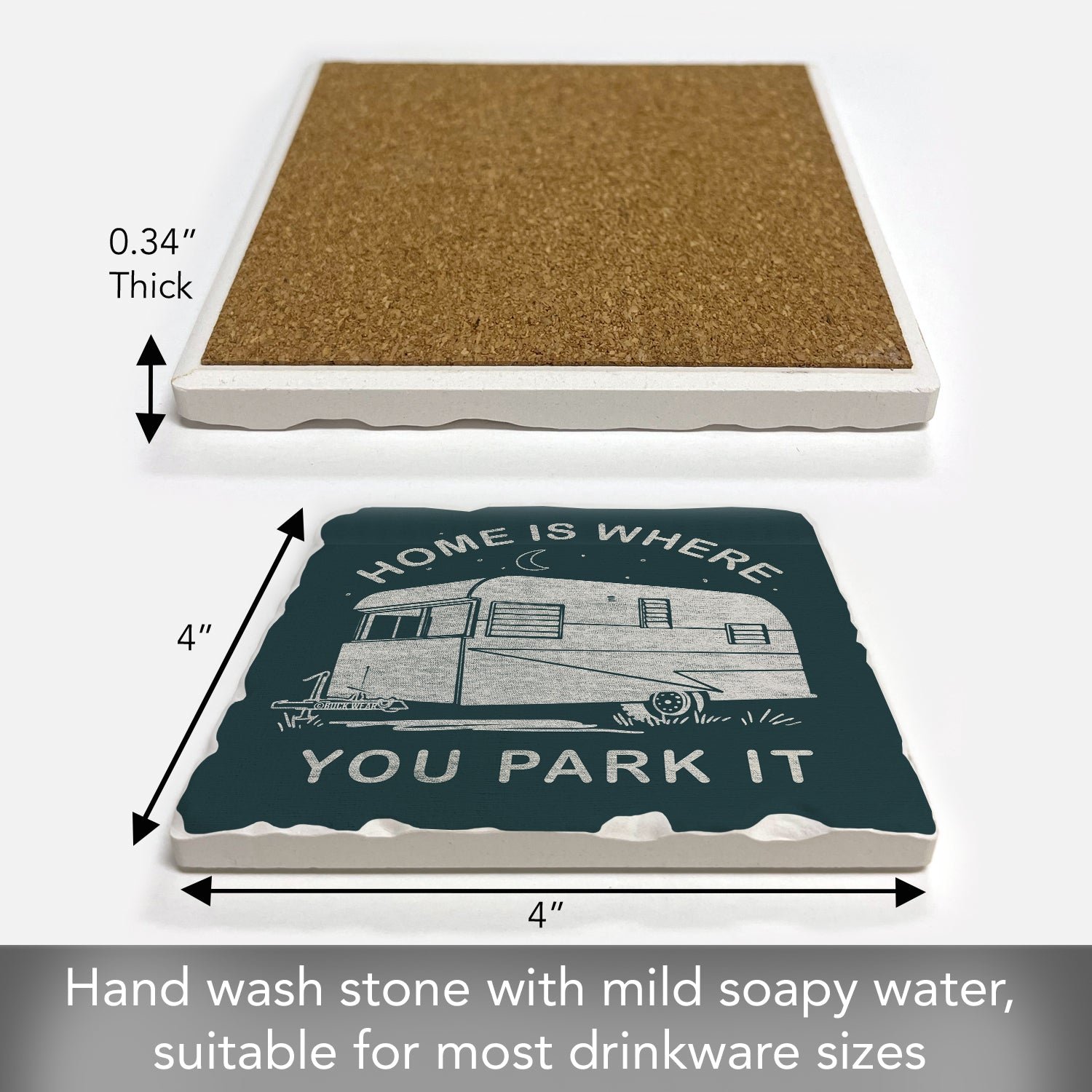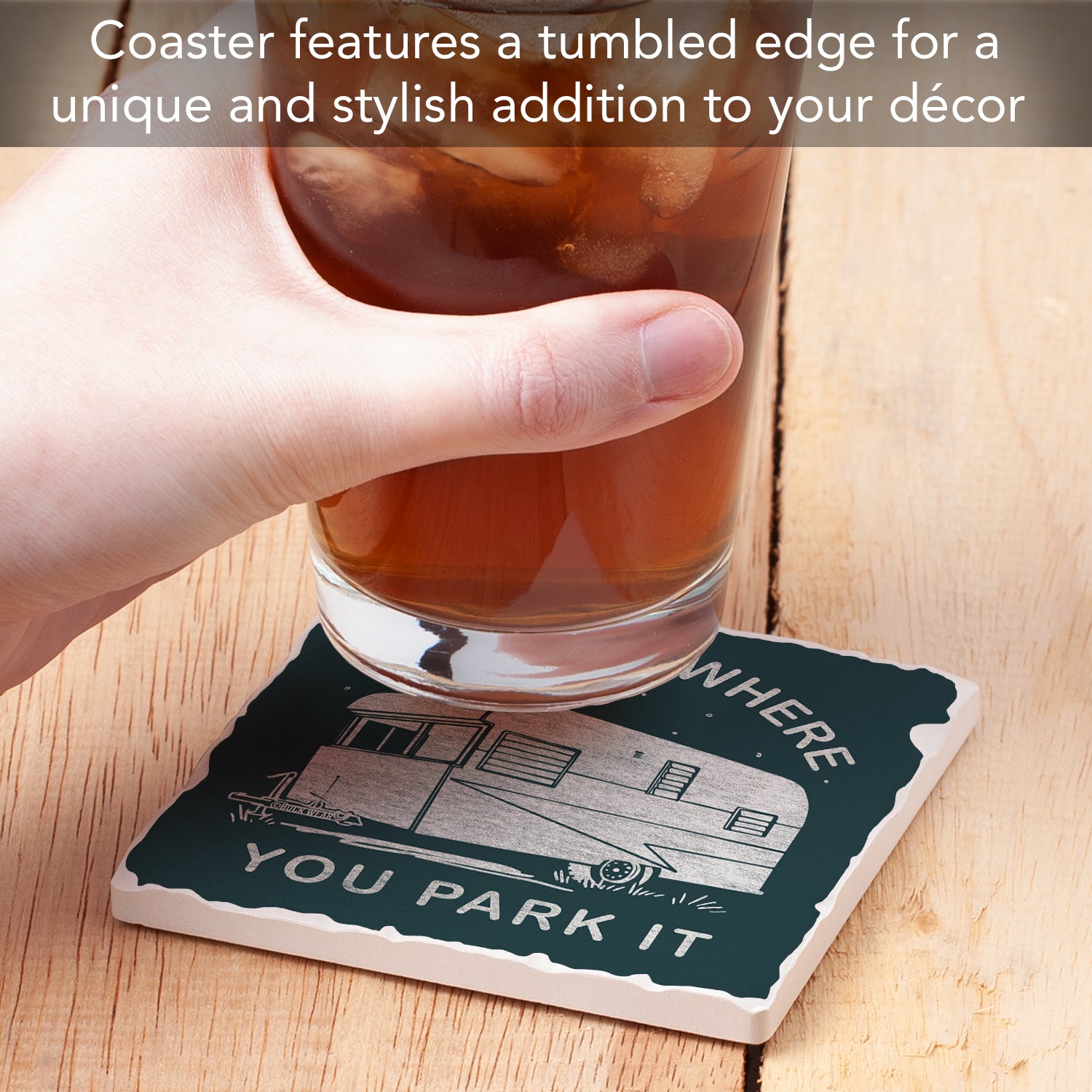 Thirstystone Park The RV Single Tumbled Tile Stone Coaster with Protective Cork Backing Manufactured in The USA 4" Square