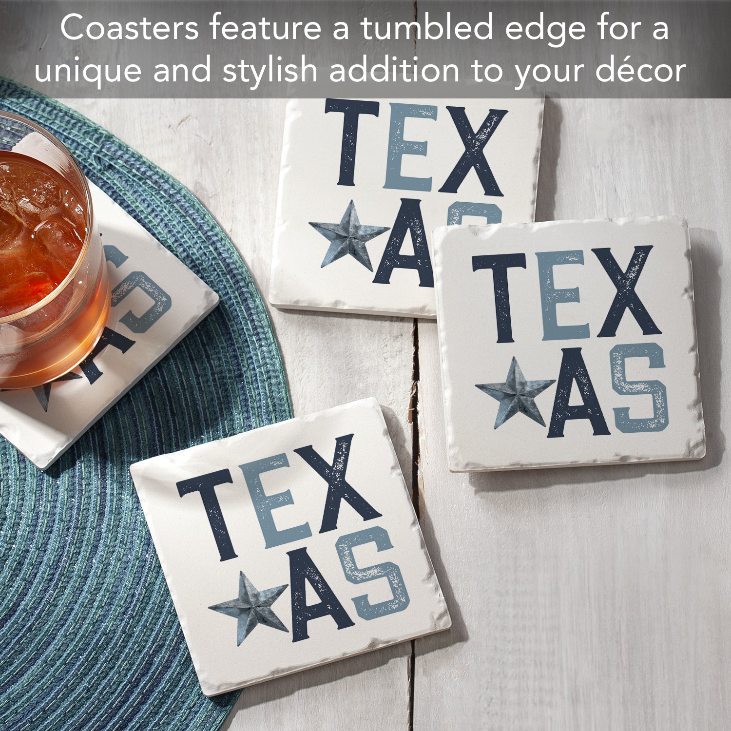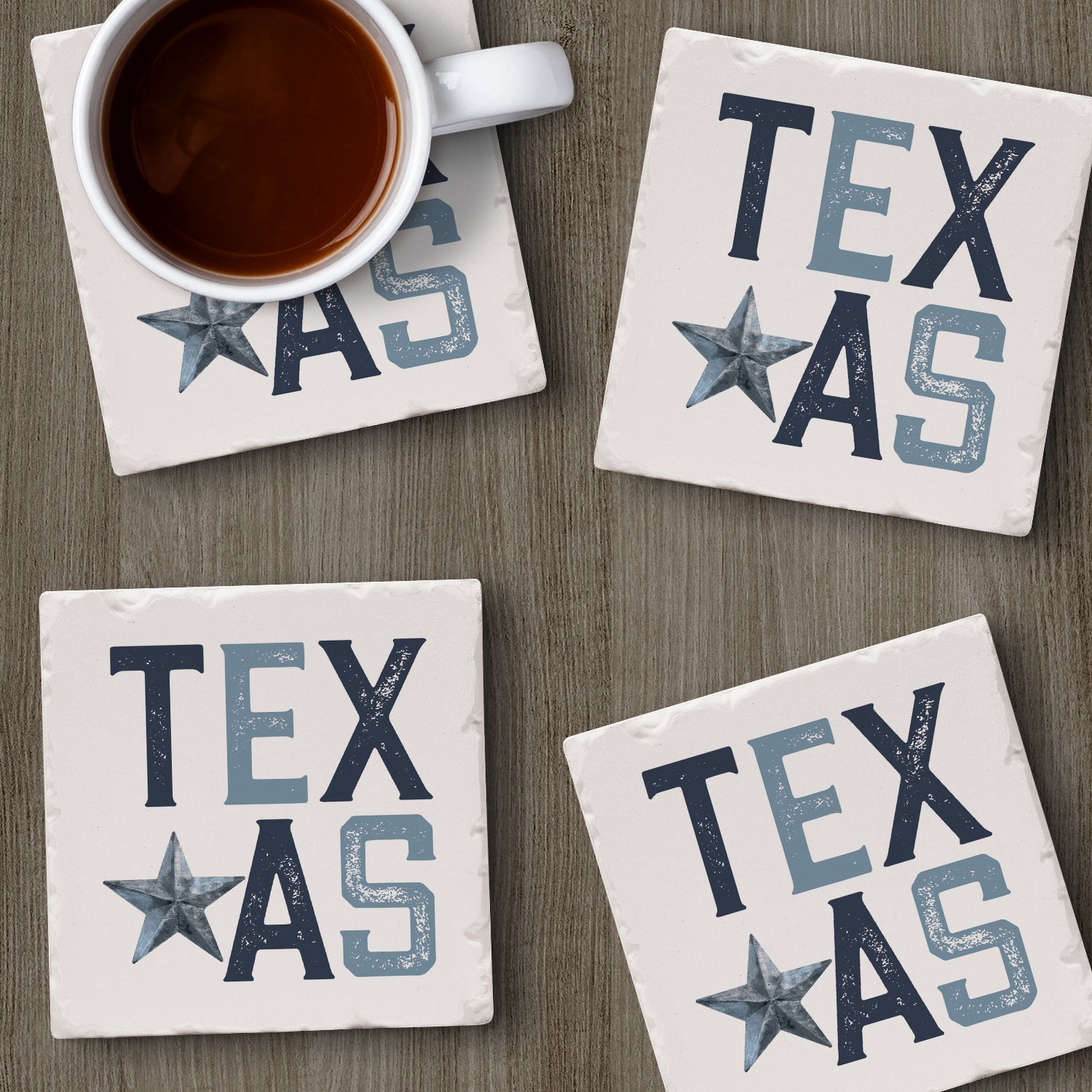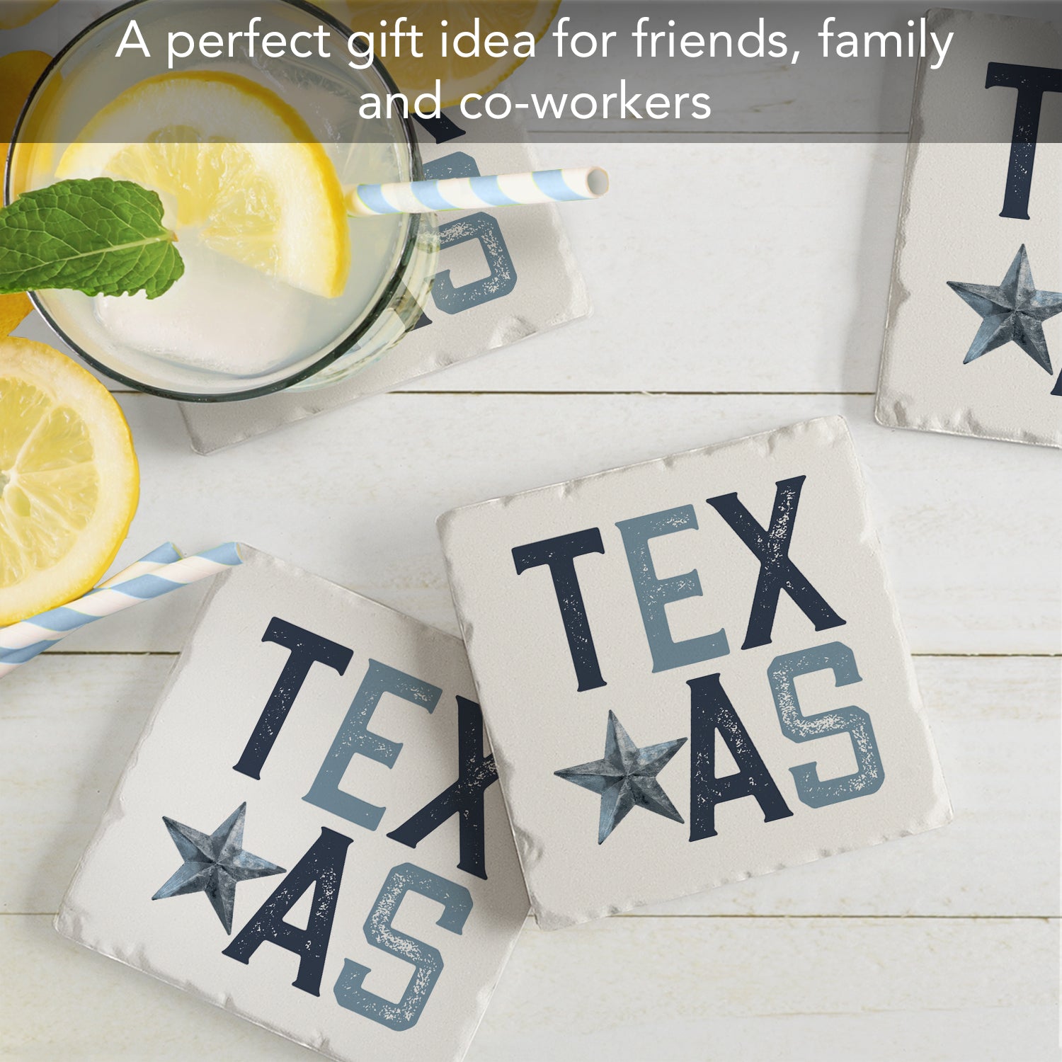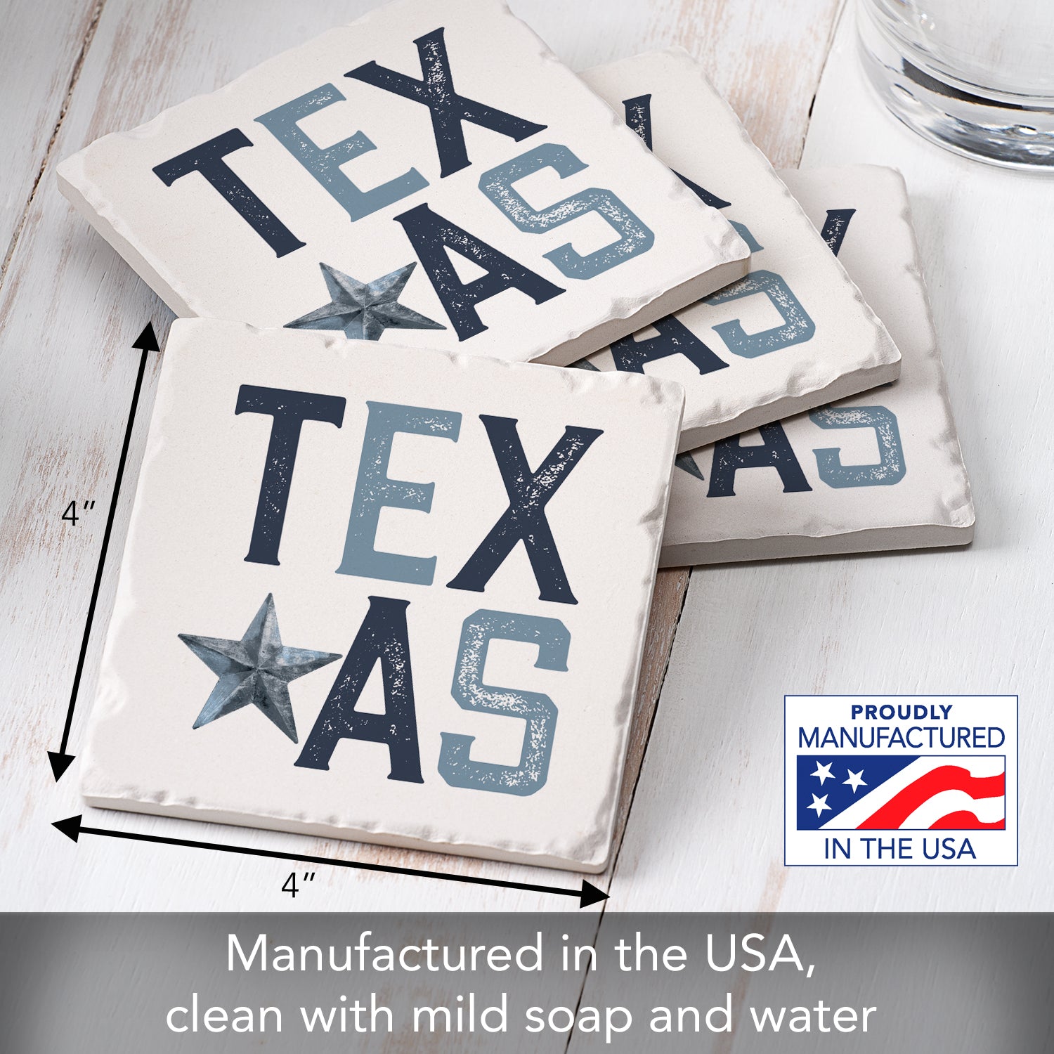 Thirstystone Patriotic Texas 4-Pack Tumbled Tile Stone Coasters 4" Square Manufactured in the USA