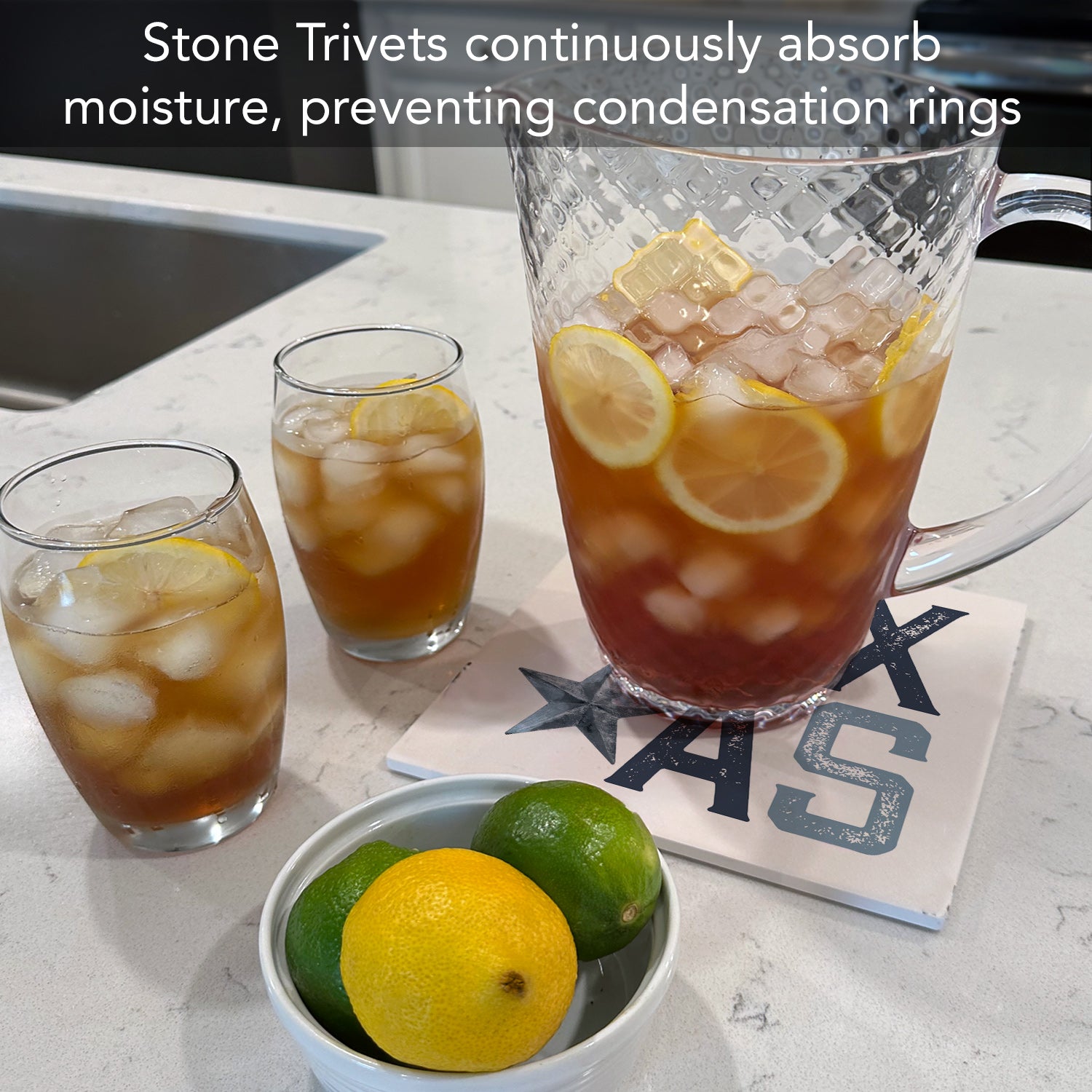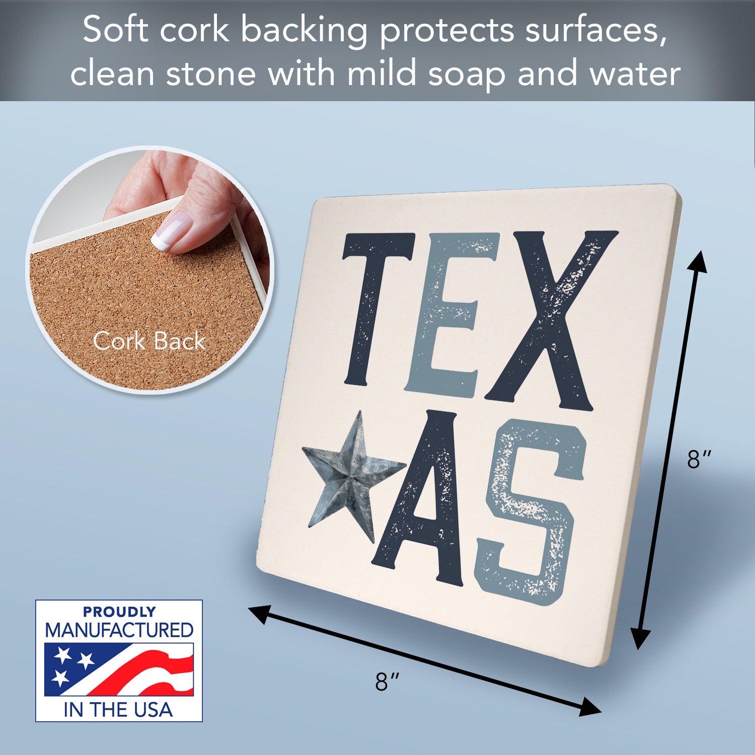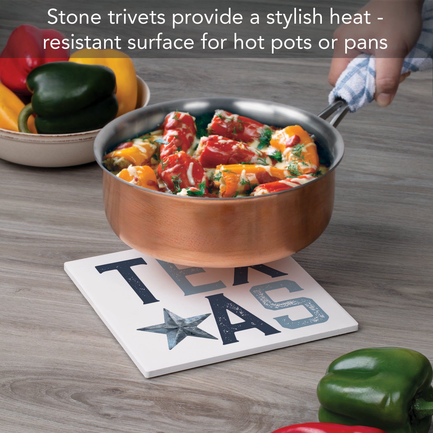Thirstystone Patriotic Texas Decorative Heat Tolerant Stone Trivet with Non-Skid Cork Backing 8” Square