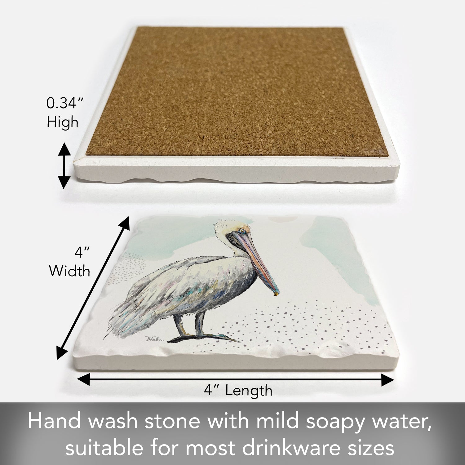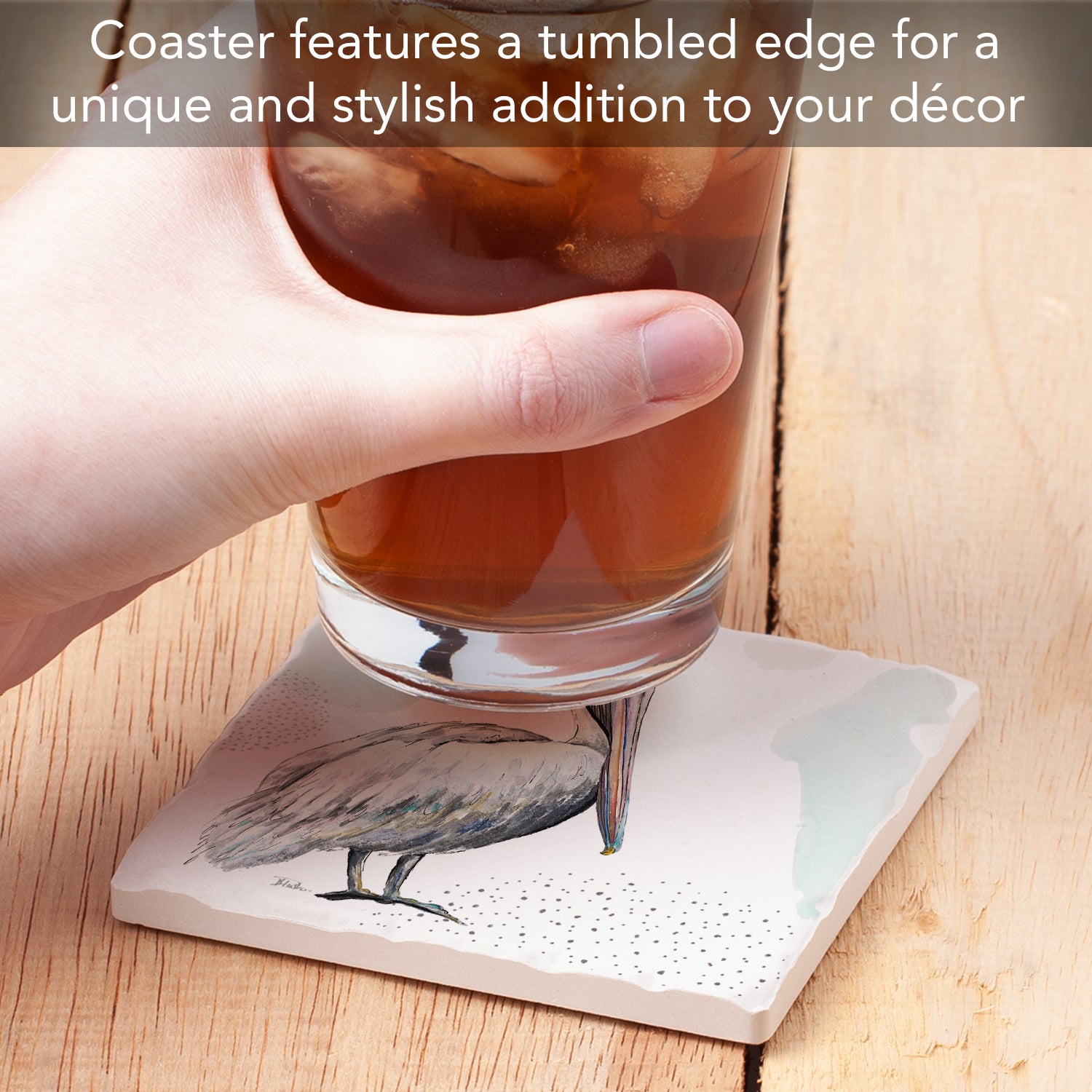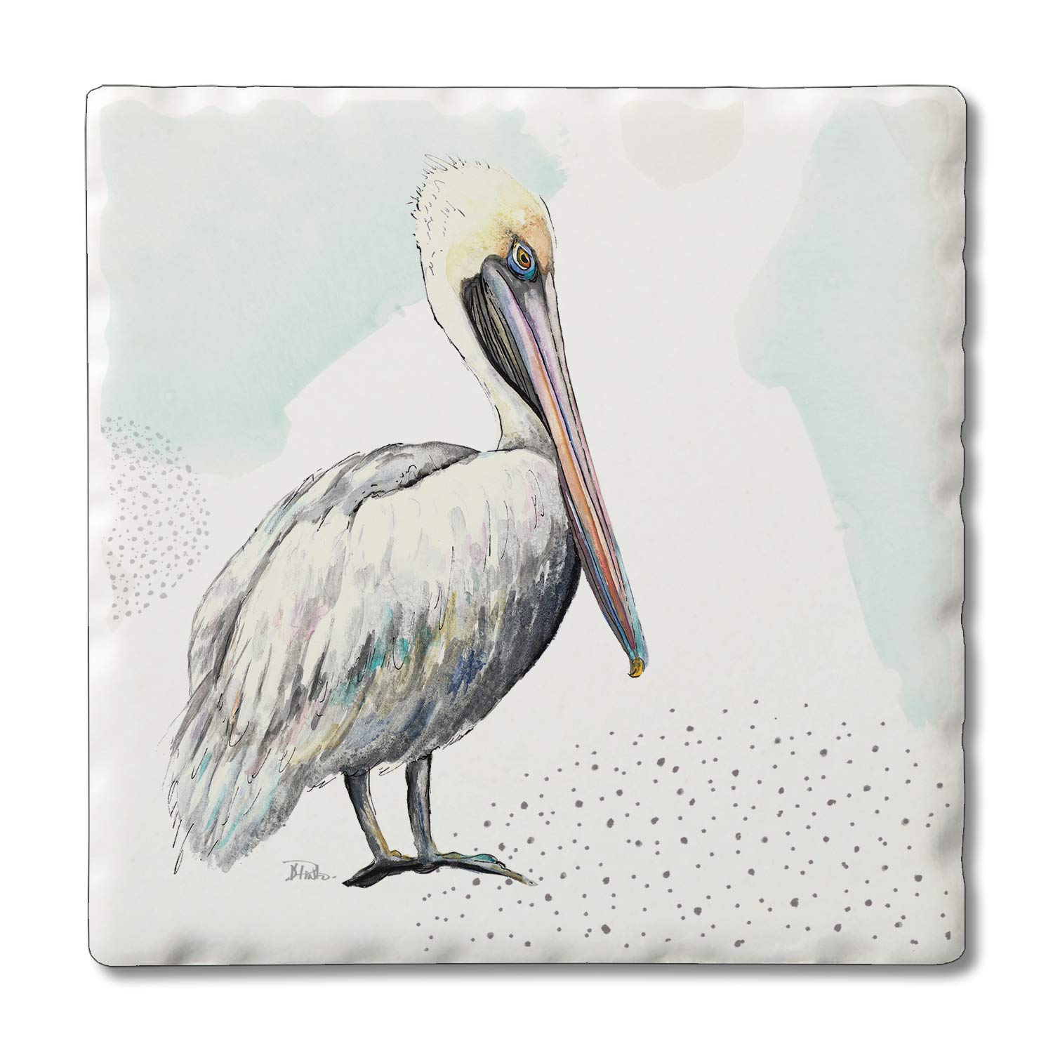 Thirstystone Pelican Single Tumbled Tile Stone Coaster with Protective Cork Backing Manufactured in The USA 4" Square, Colorful, Artistiic, Easily Wipes Clean