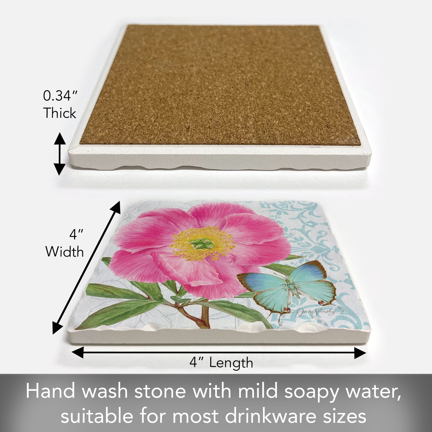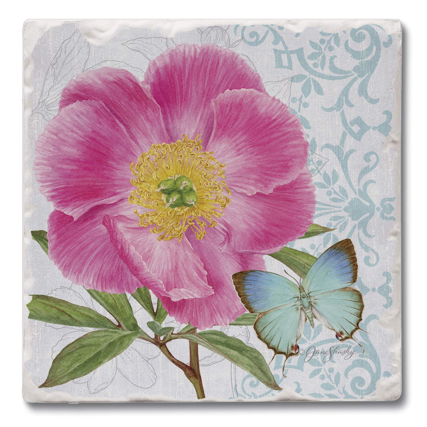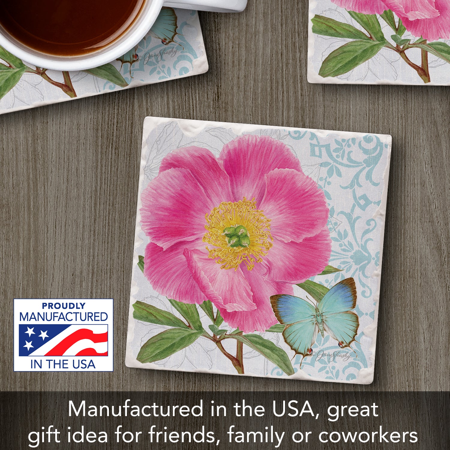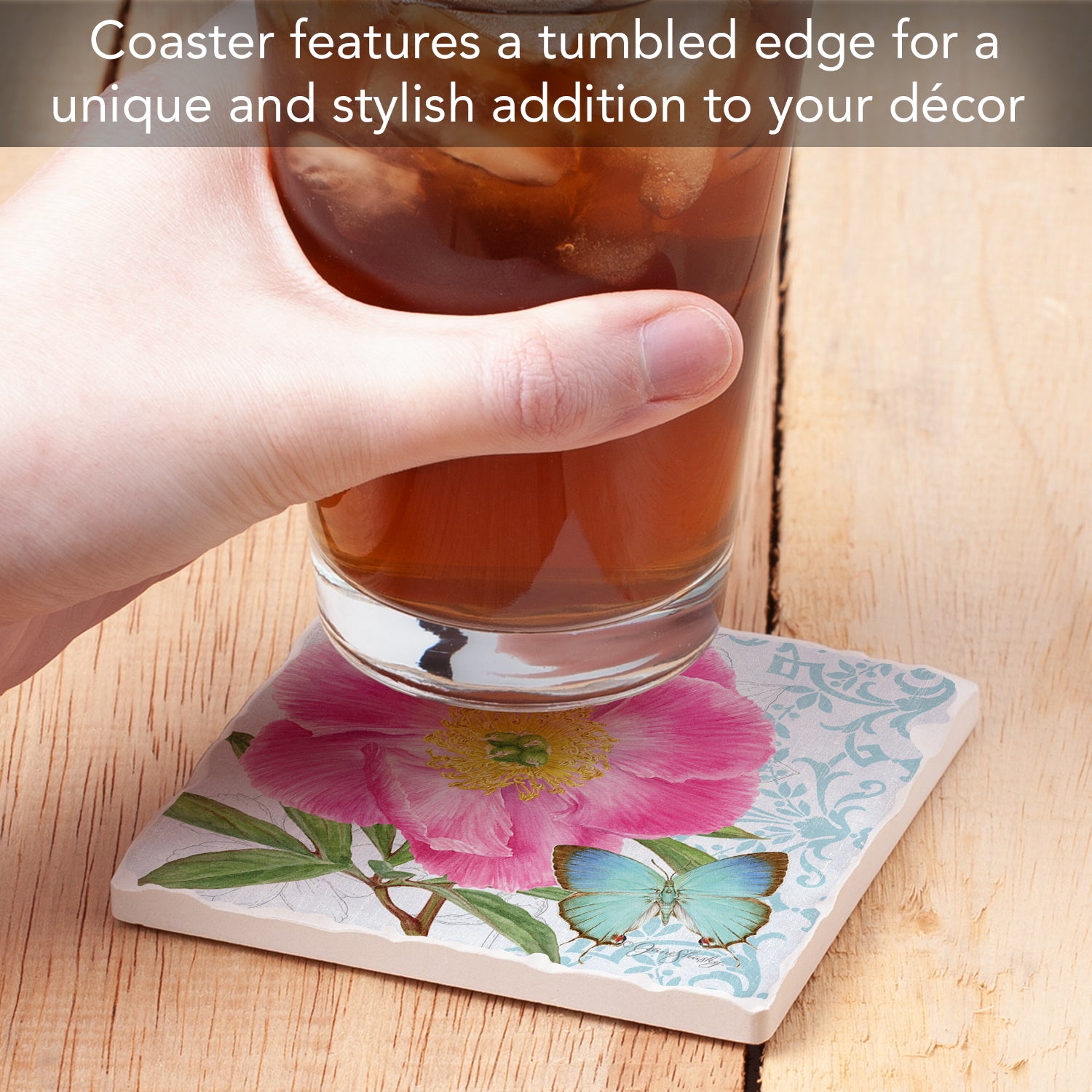 Thirstystone Peony Single Tumbled Tile Stone Coaster with Protective Cork Backing Manufactured in The USA 4" Square, Artistic, Easily Wipes Clean