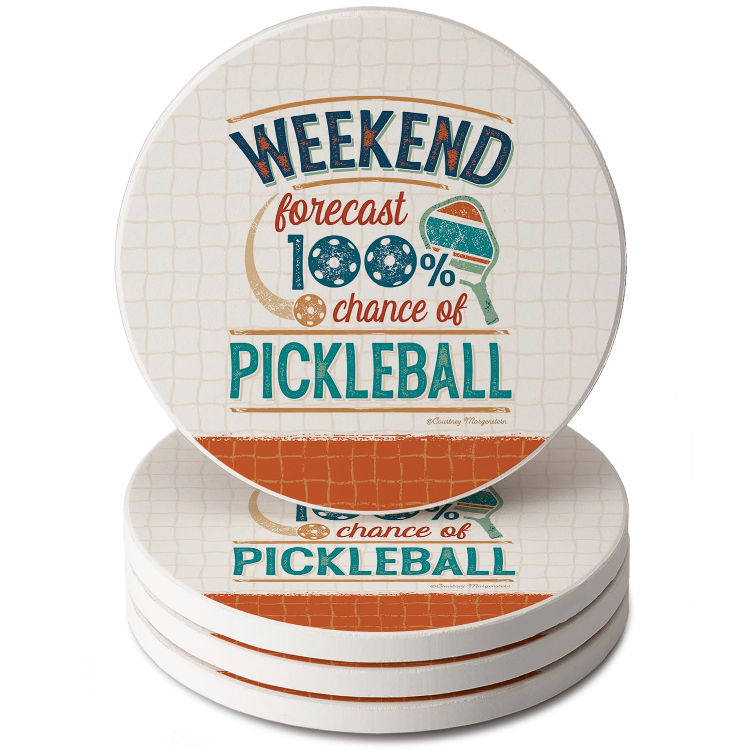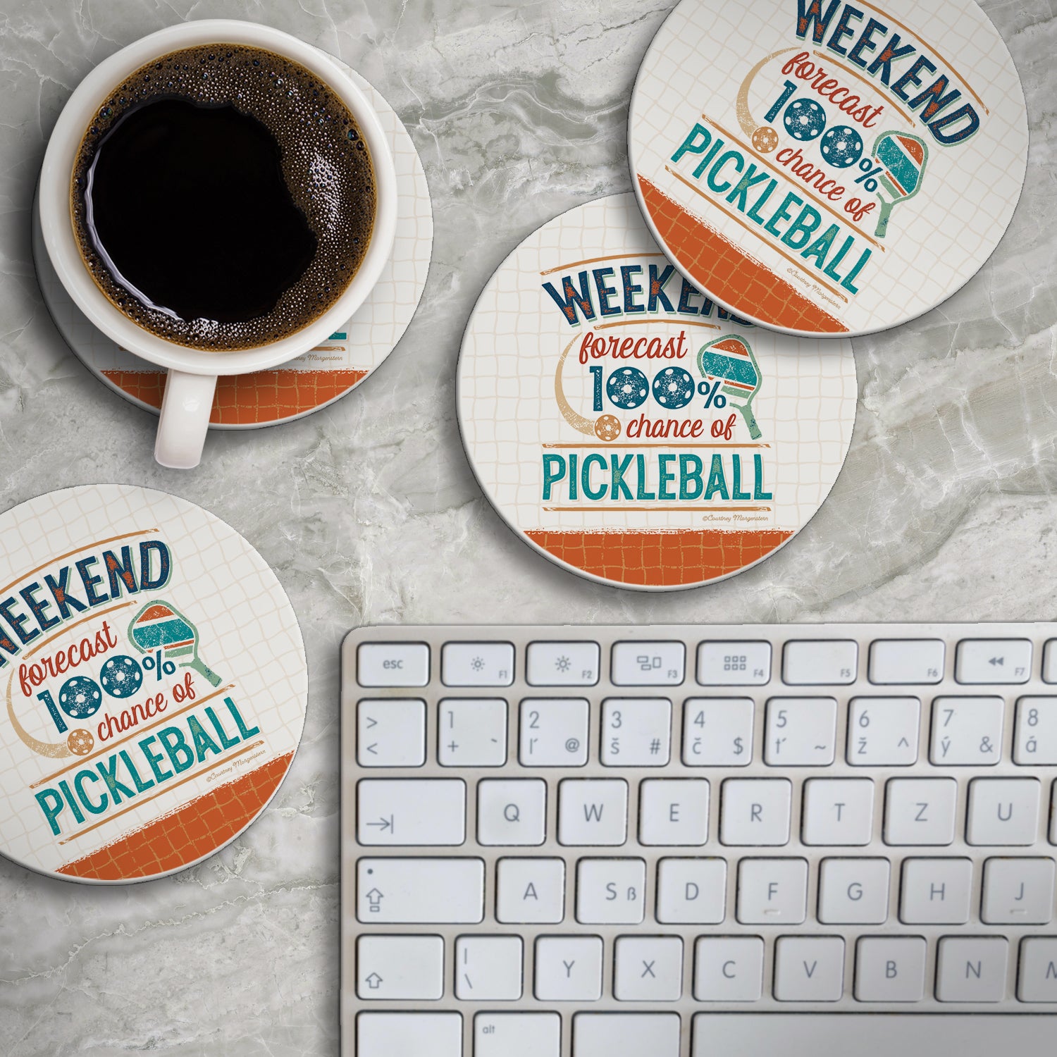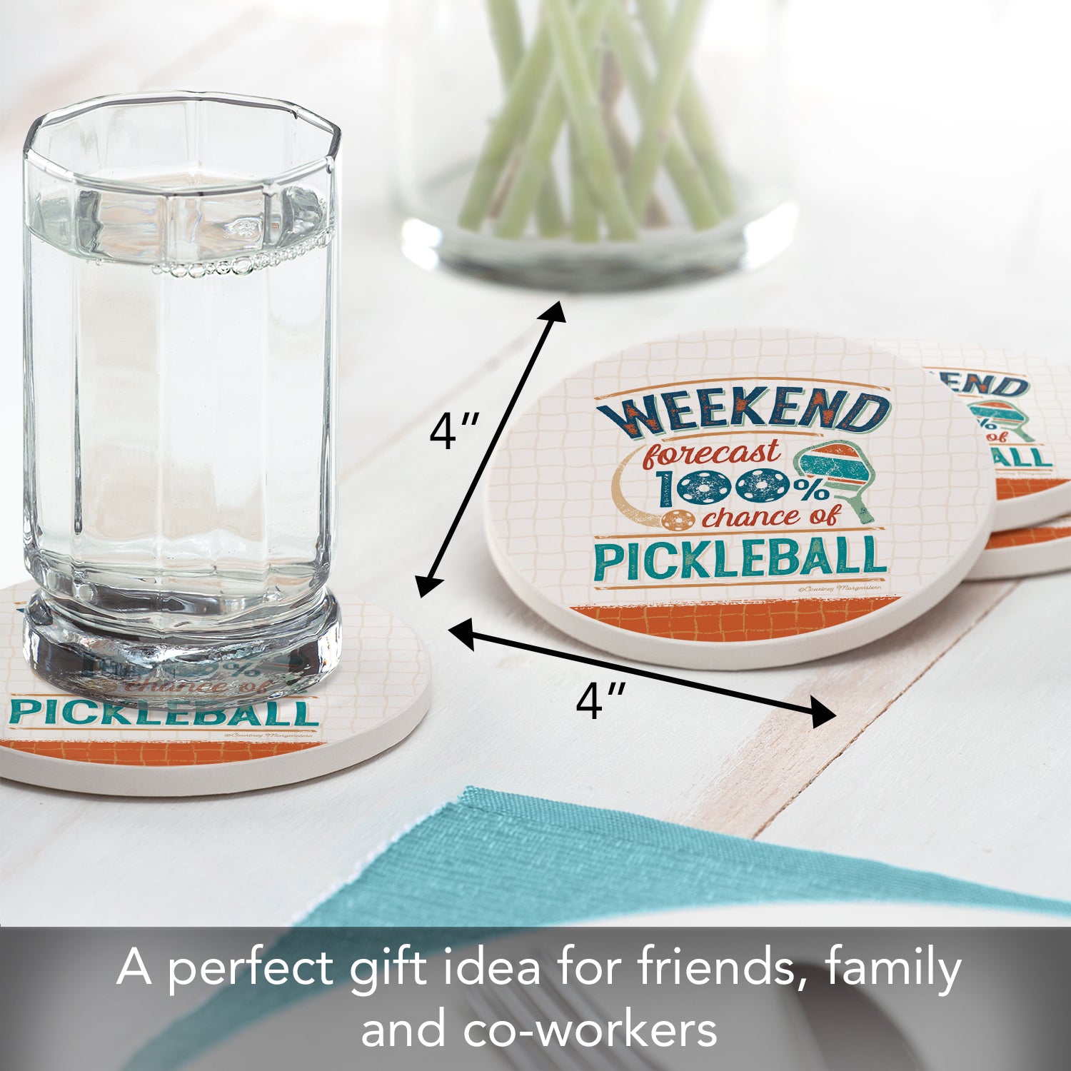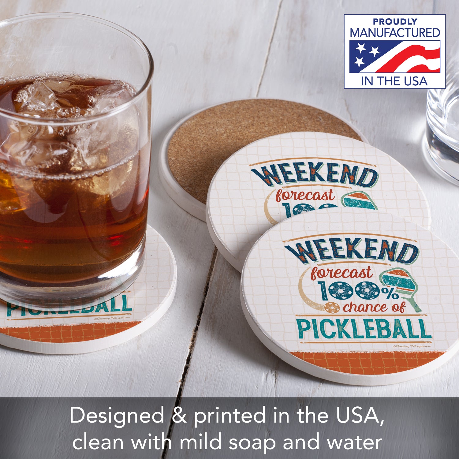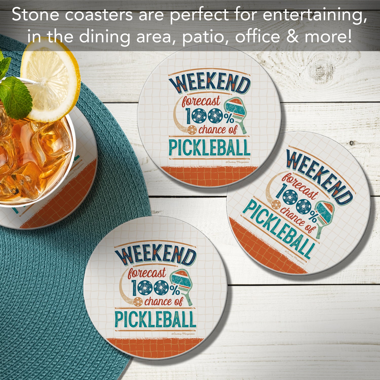 Thirstystone Pickleball Forecast 4 Pack Round Absorbent Stone Coasters 4" Diameter Manufactured in the USA