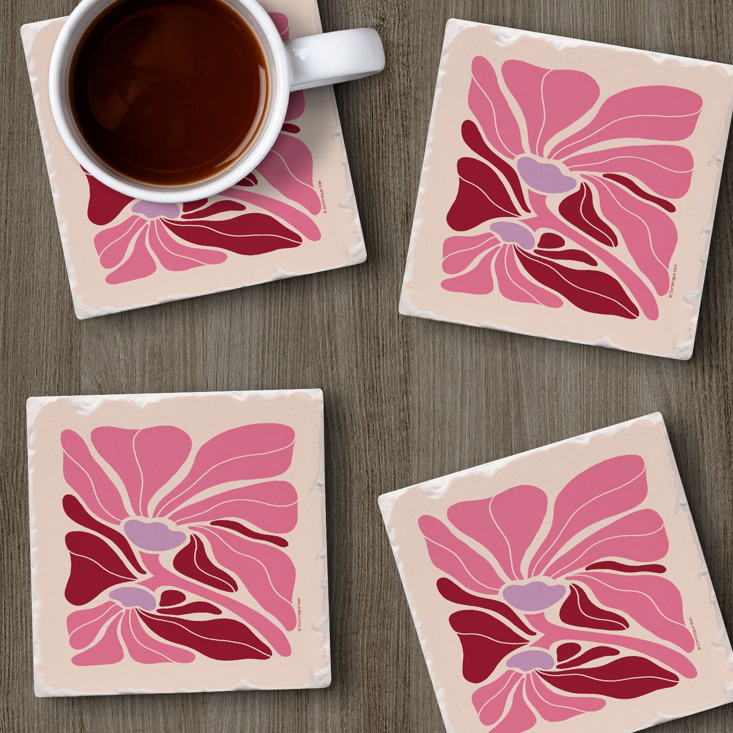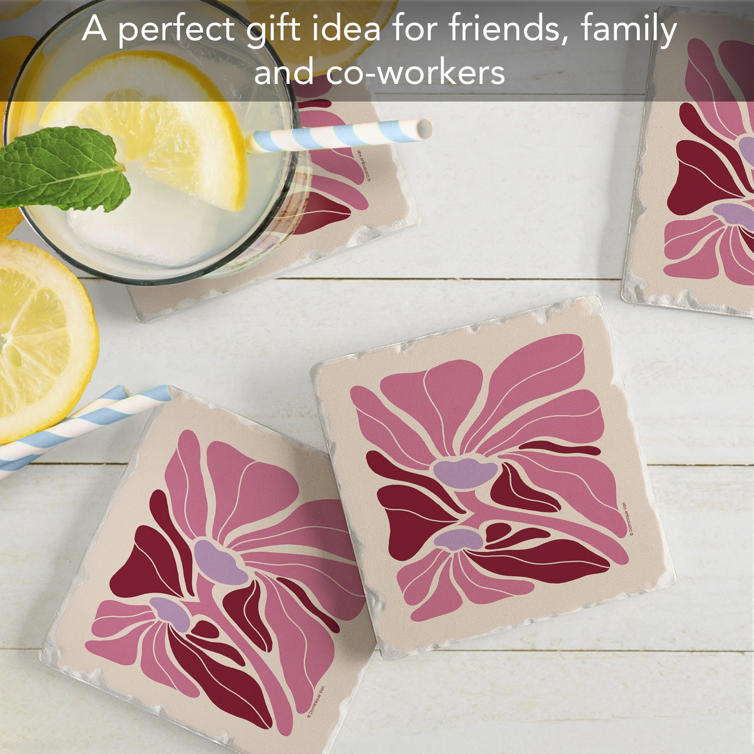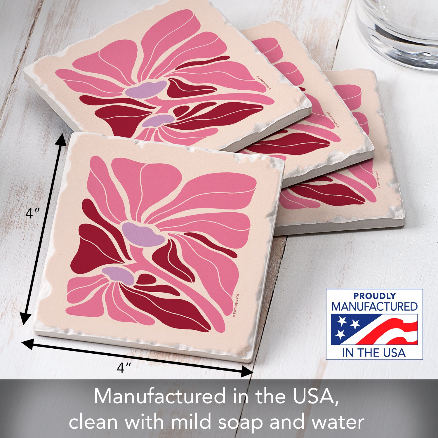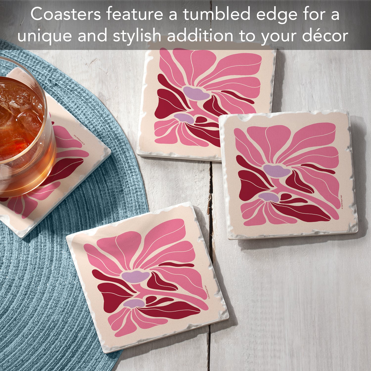 Thirstystone Pink Boho Floral 4 Pack Tumbled Tile Stone Coasters 4" Square Manufactured in the USA