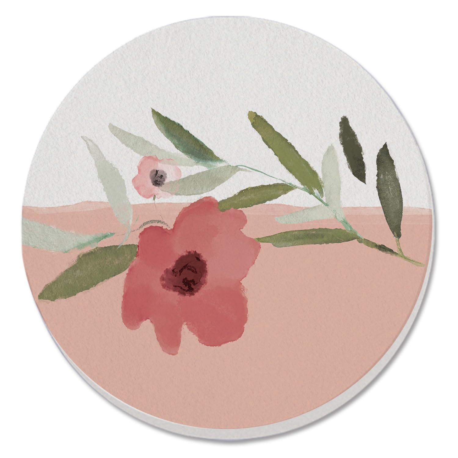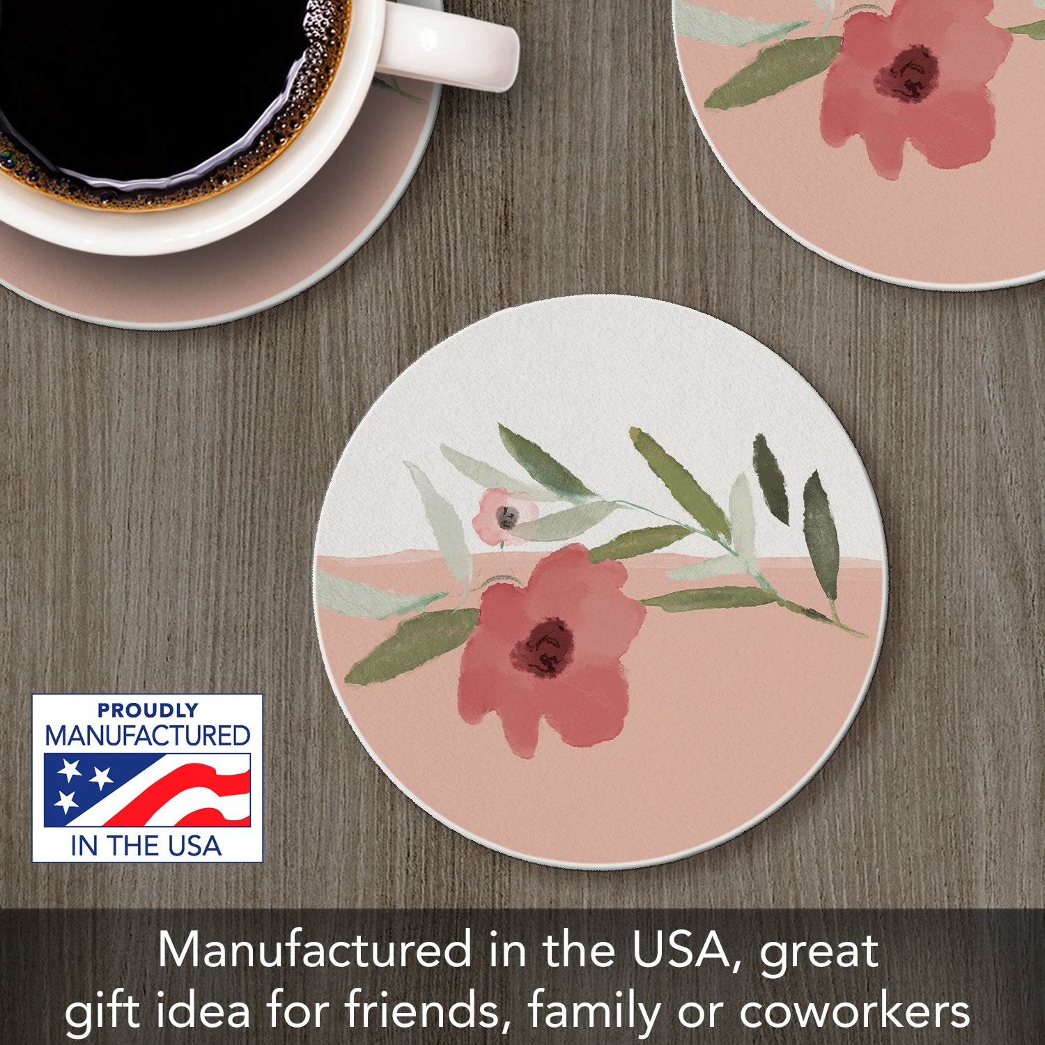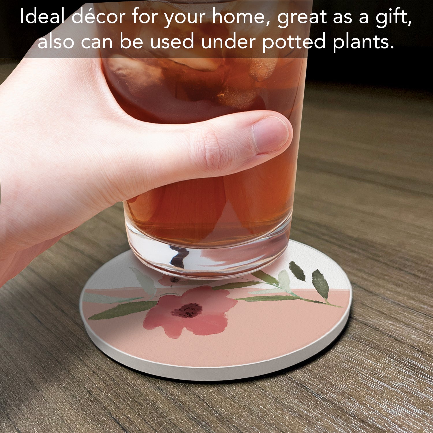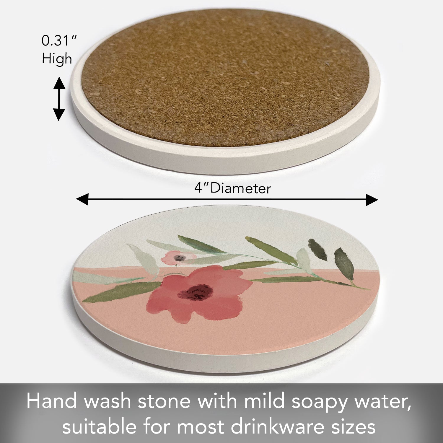 Thirstystone Pink Floral Single Round Absorbent Stone Coaster with Protective Cork Backing Manufactured in The USA 4" Diameter