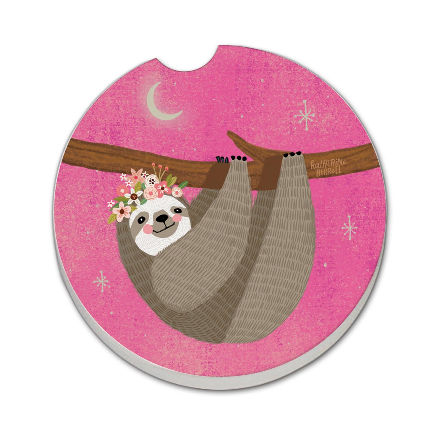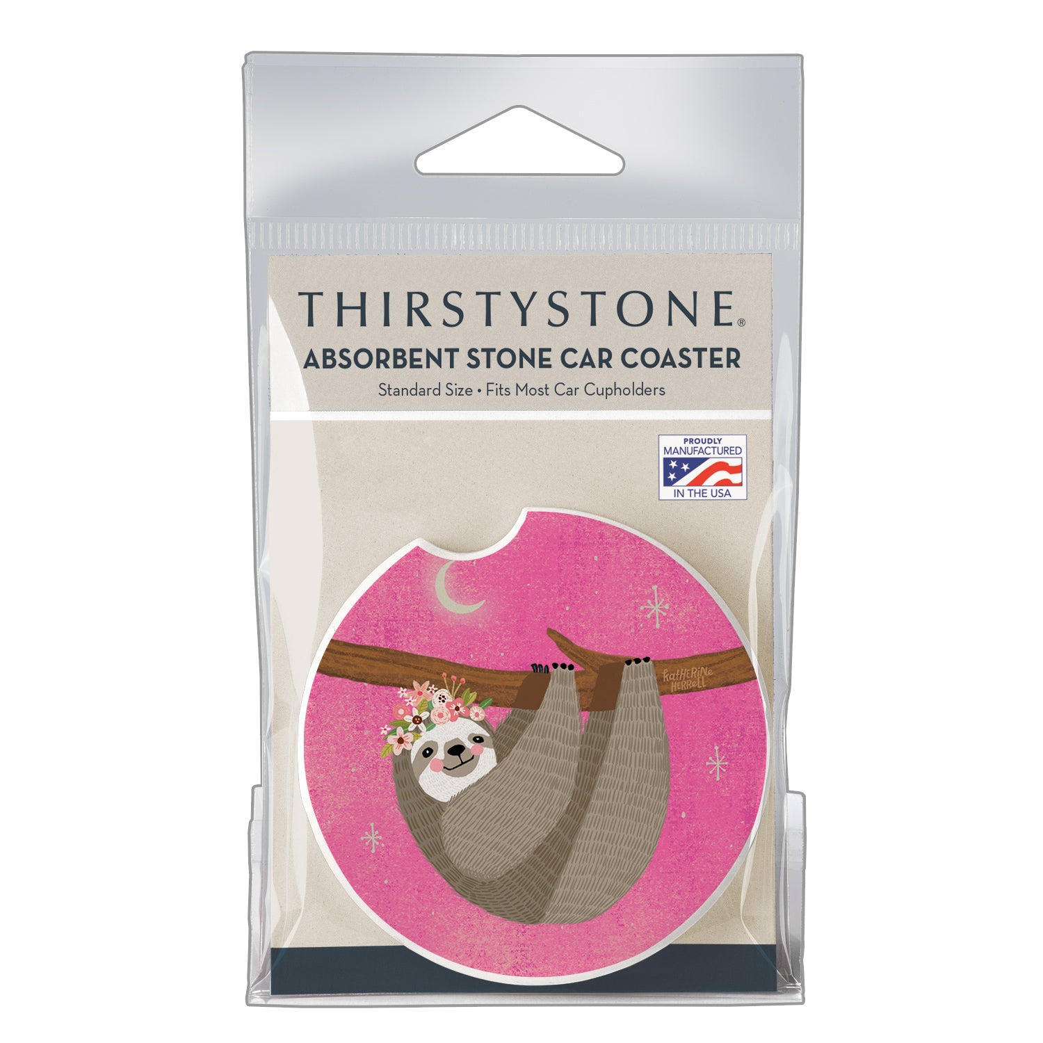 Thirstystone Pink Sloth Single Absorbent Stone Car Coaster 2.6” Diameter Manufactured in the USA