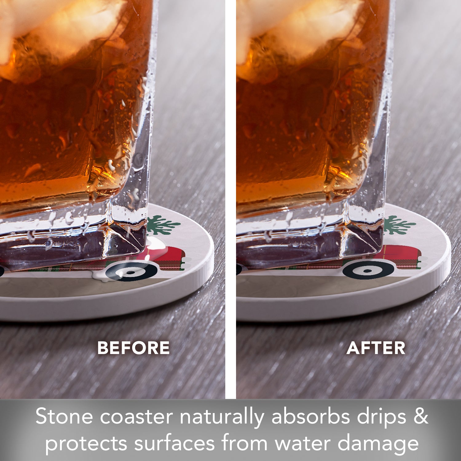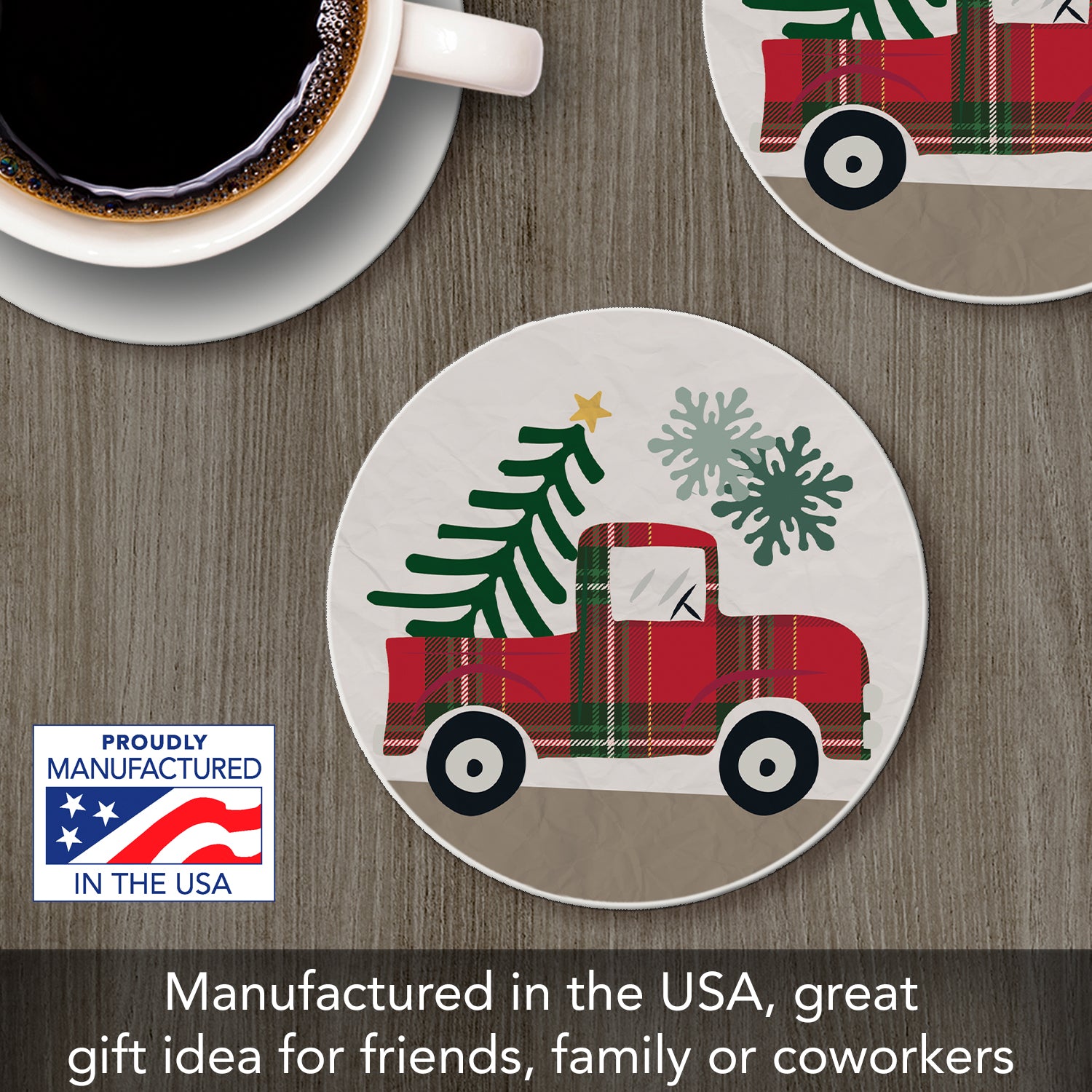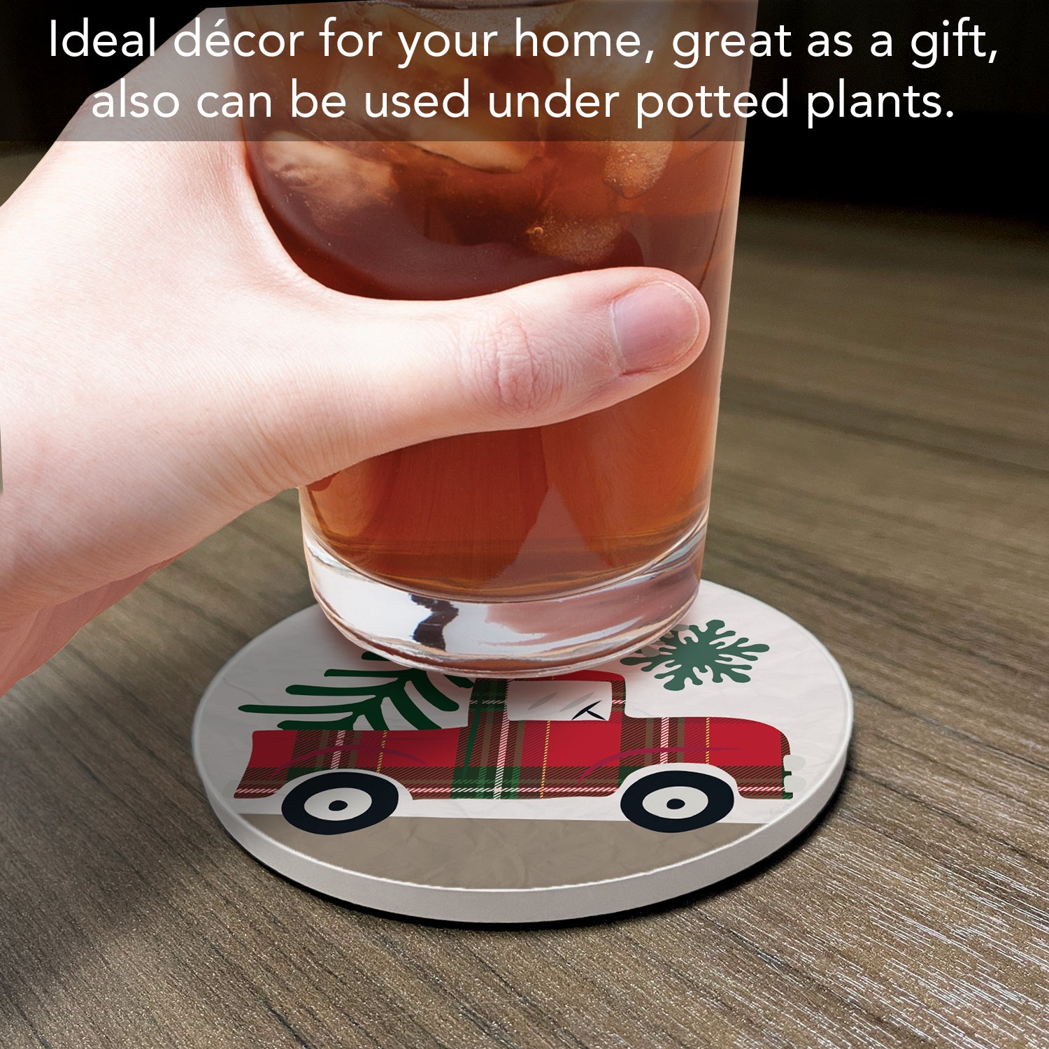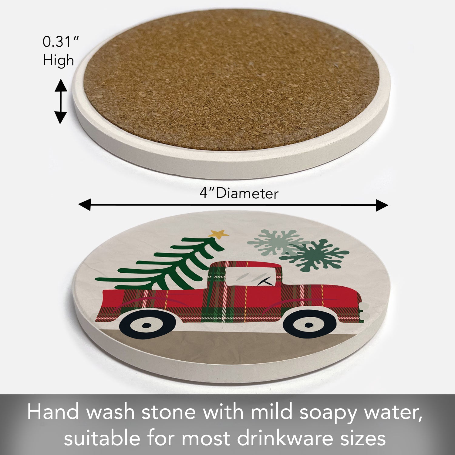Thirstystone Plaid Christmas Tree Truck Single Round Absorbent Stone Coaster with Protective Cork Backing Manufactured in The USA 4" Diameter