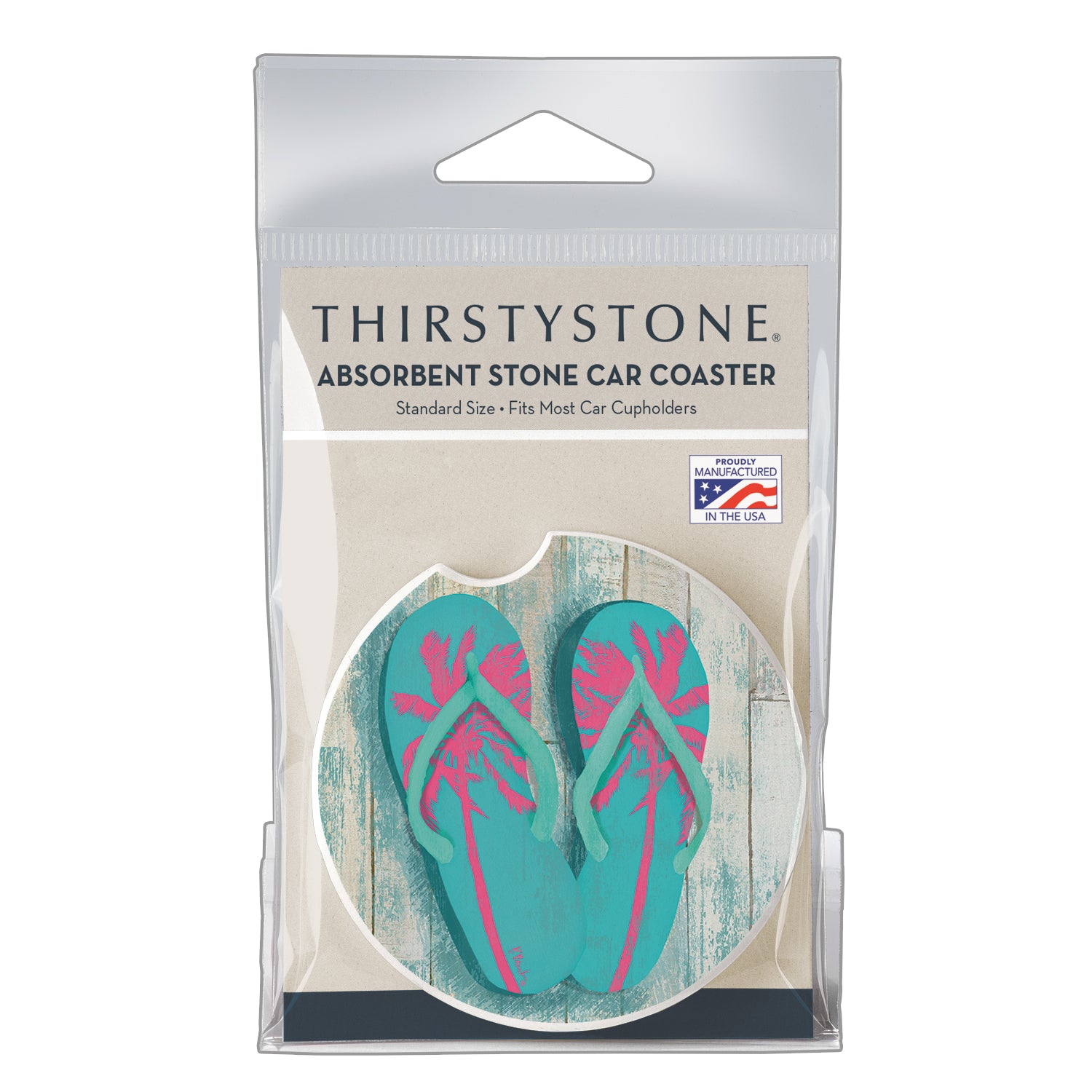 Thirstystone Pompano Sandals Single Absorbent Stone Car Coaster 2.6” Diameter Manufactured in the USA