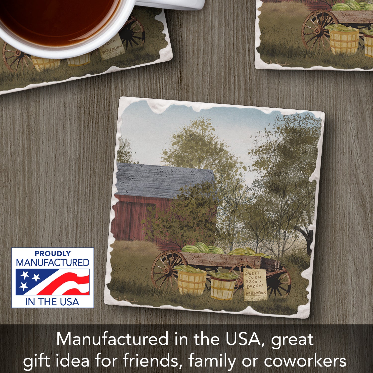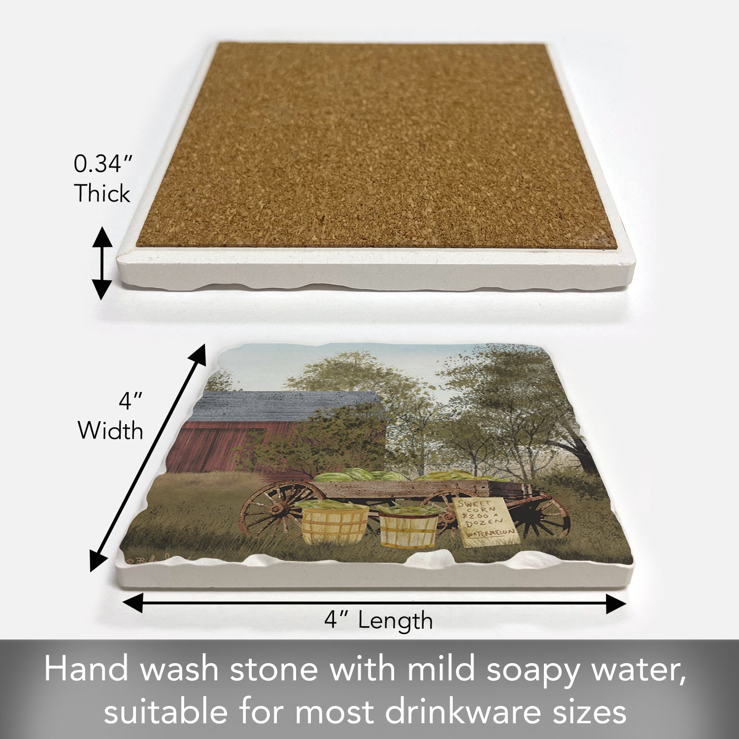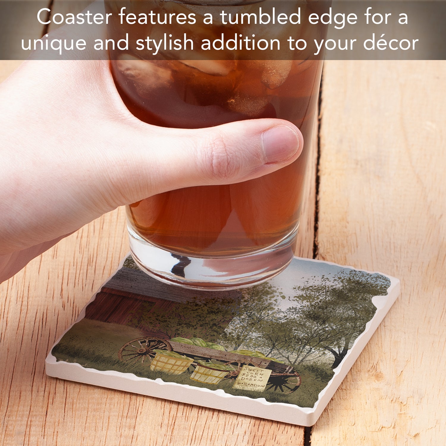 Thirstystone Produce Wagon Single Tumbled Tile Stone Coaster with Protective Cork Backing Manufactured in The USA 4" Square, Artistic, Easily Wipes Clean