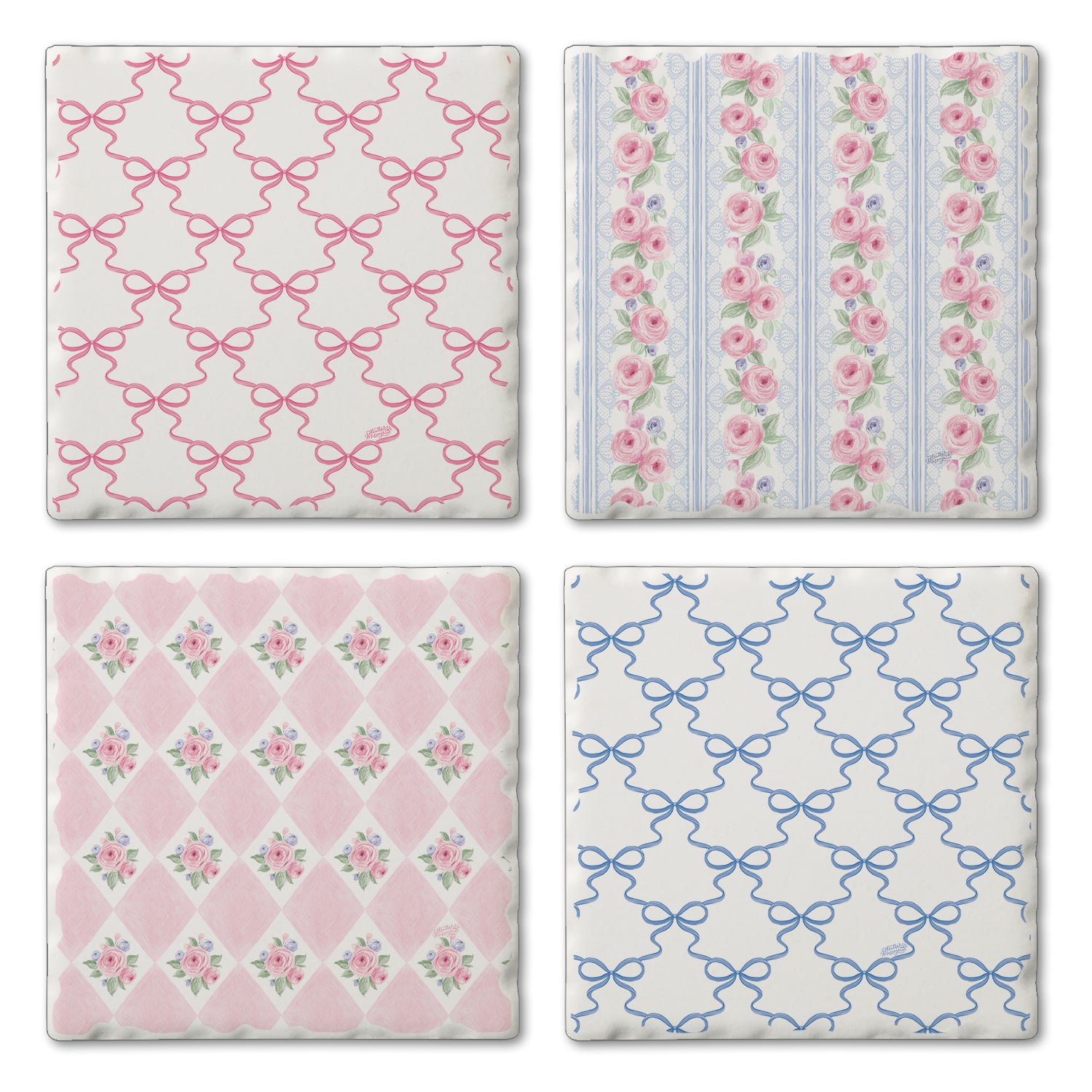 Thirstystone Pure Romance 4 Pack Assorted Tumbled Tile Stone Coasters 4" Square