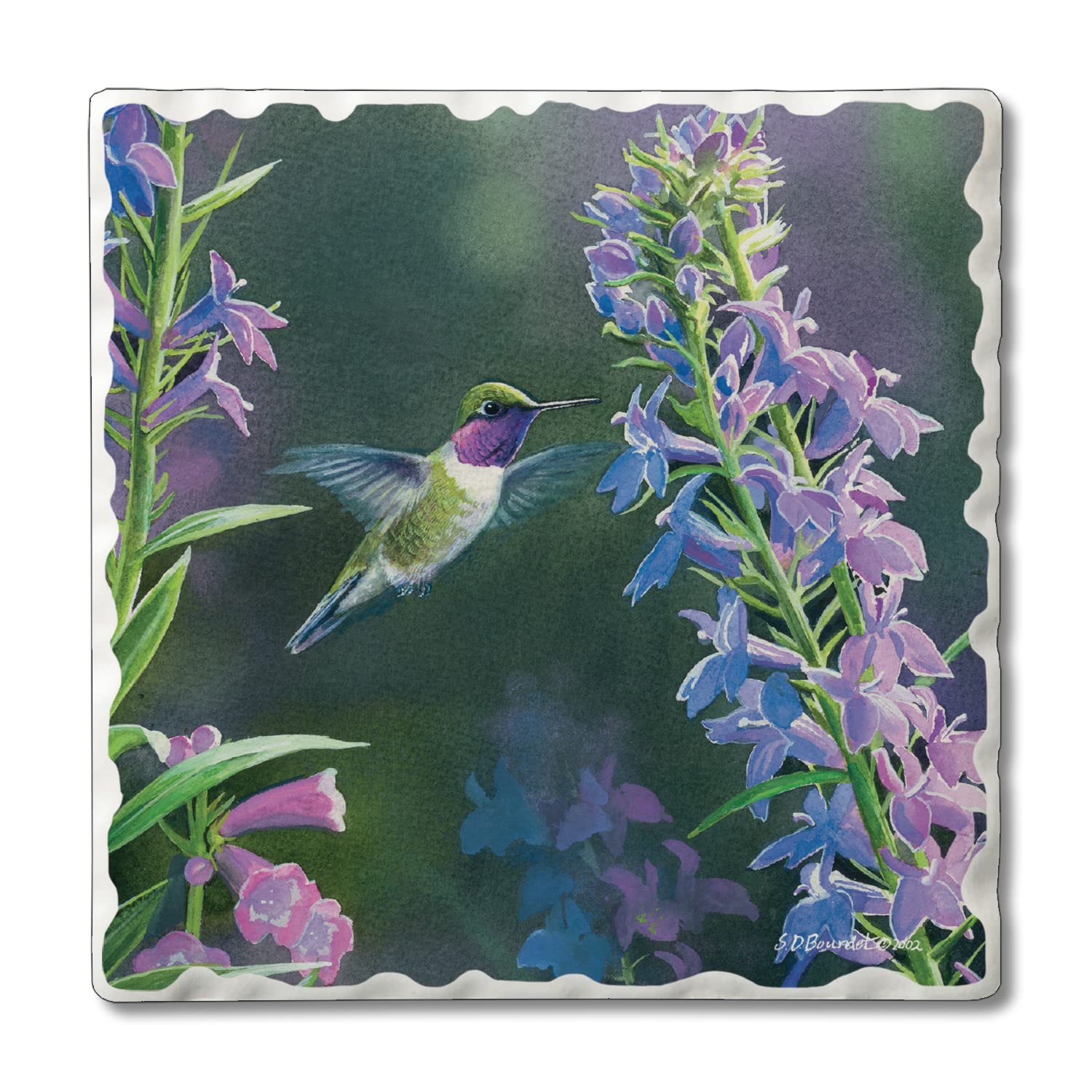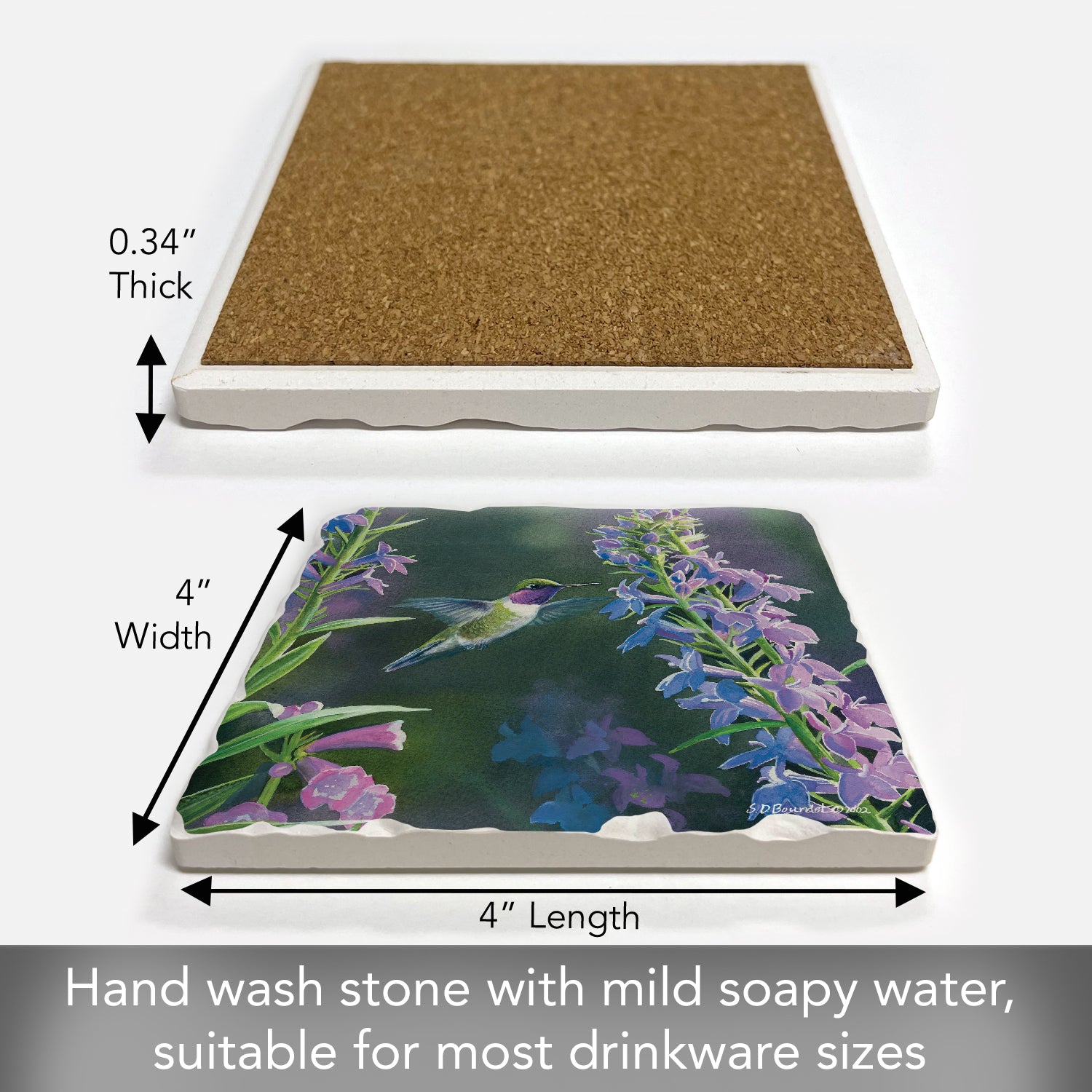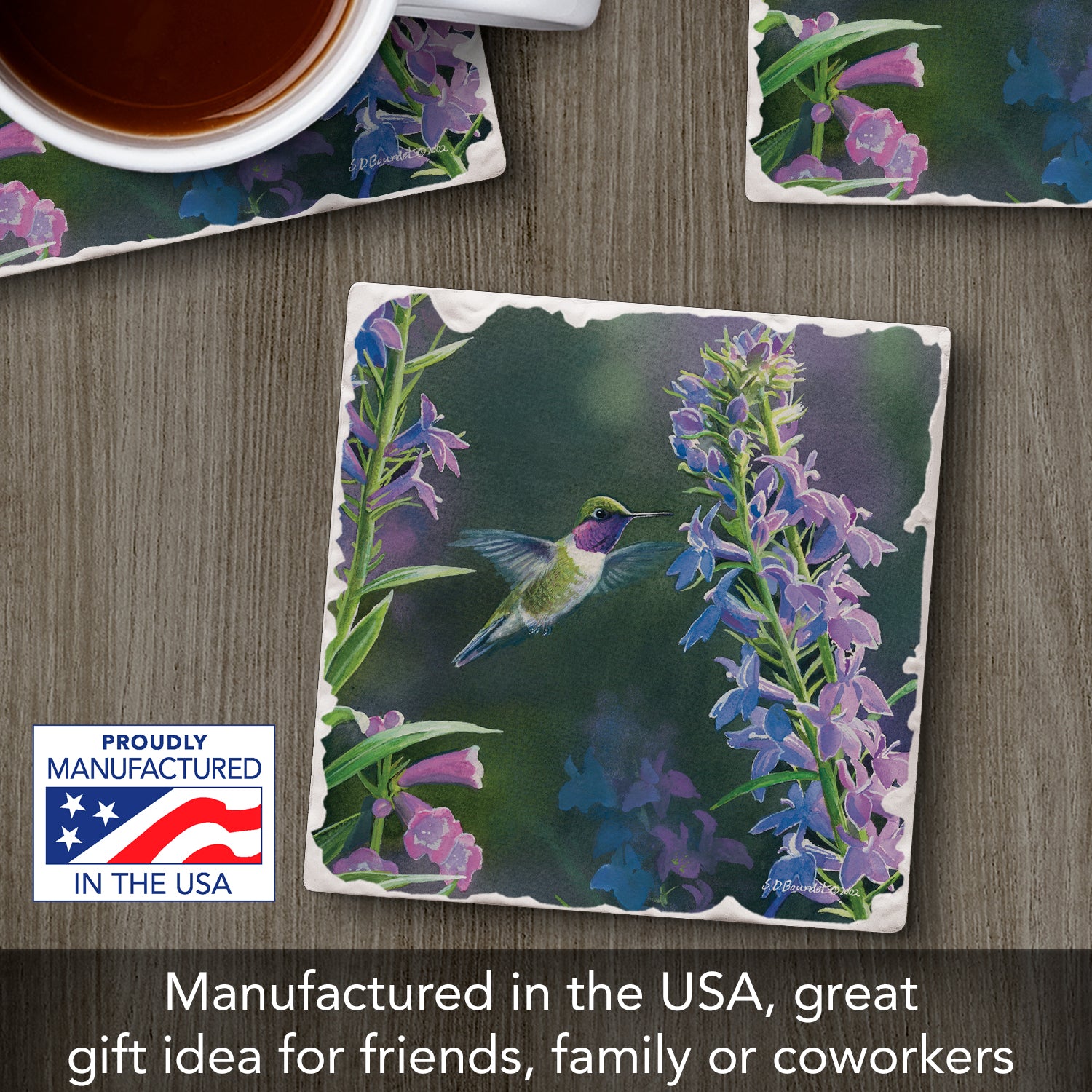 Thirstystone Purple Hummingbird Floral Single Tumbled Tile Stone Coaster with Protective Cork Backing Manufactured in The USA 4" Square, Artistic, Easily Wipes Clean