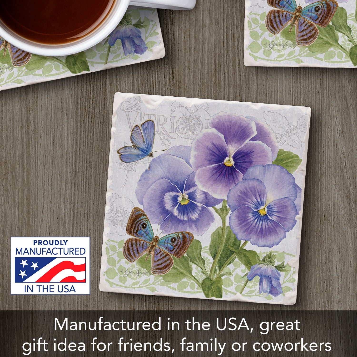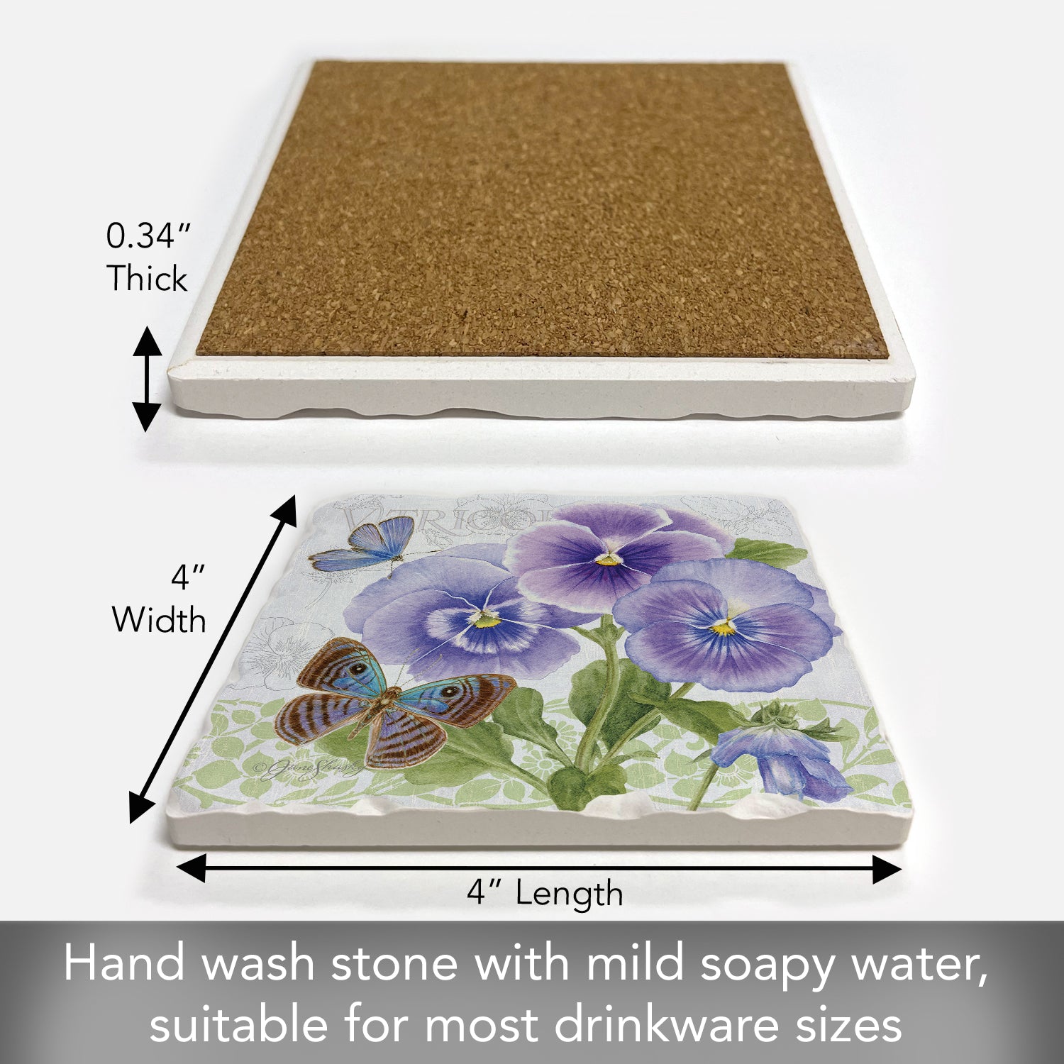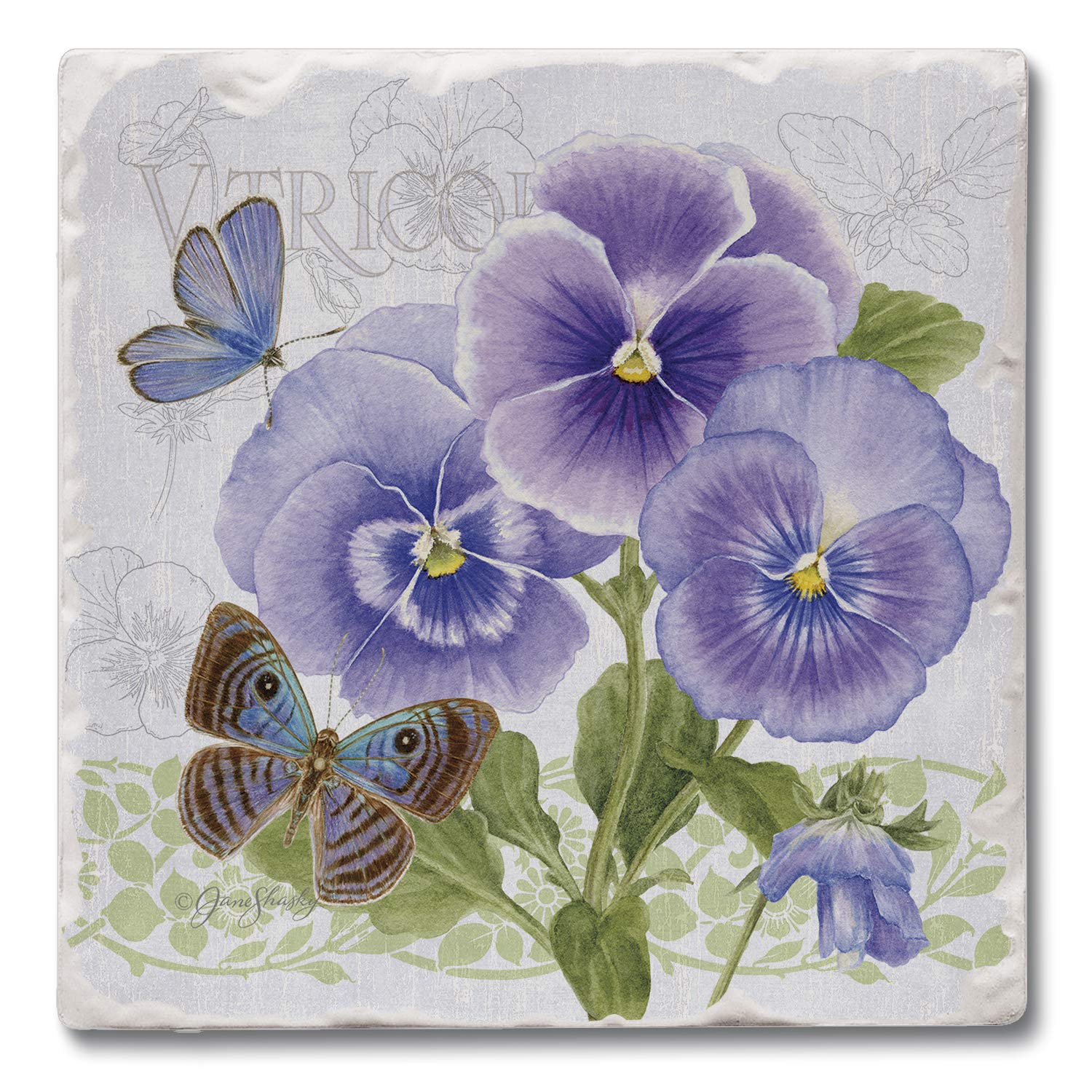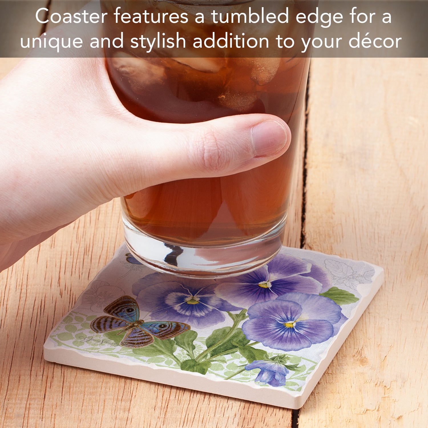 Thirstystone Purple Pansies Single Tumbled Tile Stone Coaster with Protective Cork Backing Manufactured in The USA 4" Square, Artistic, Easily Wipes Clean