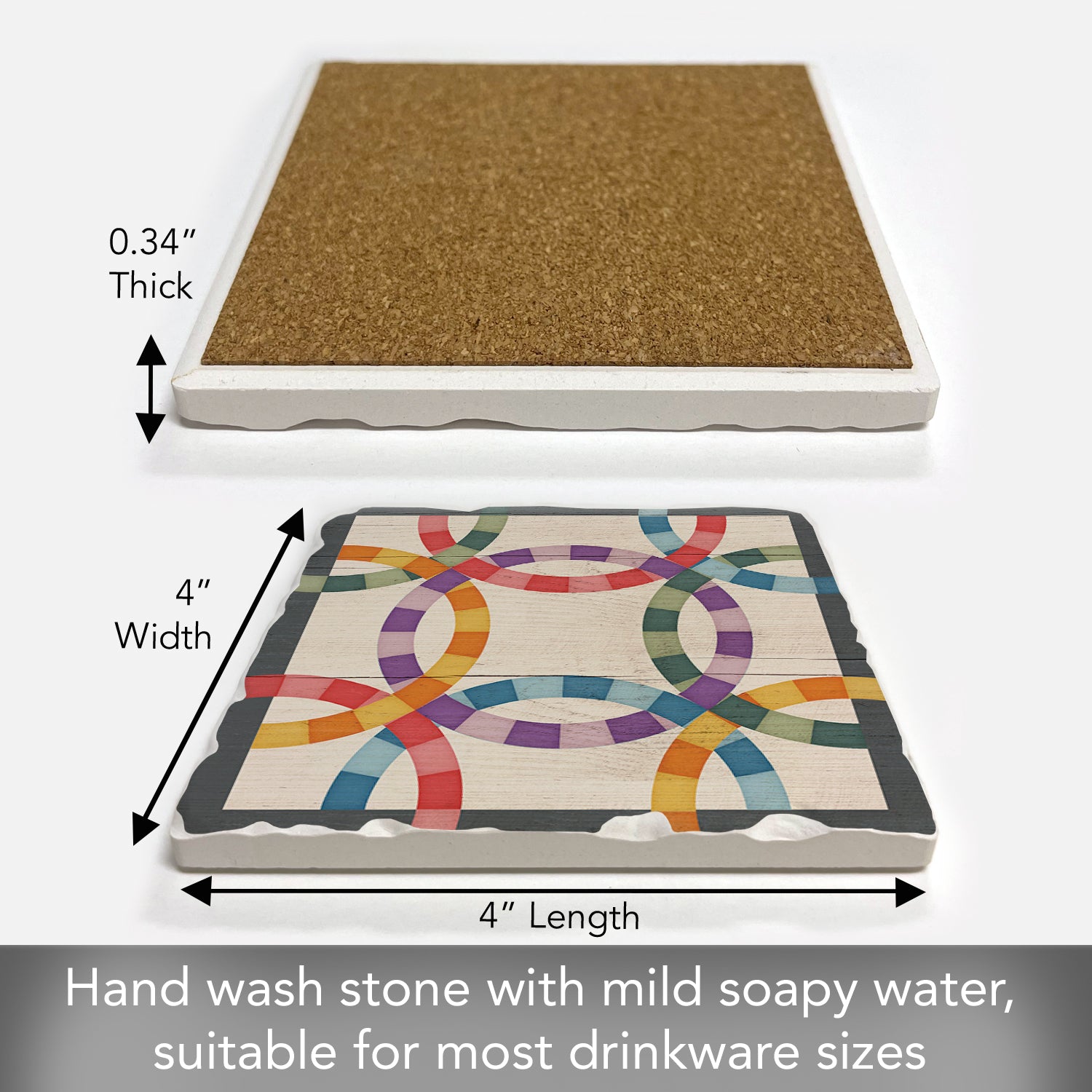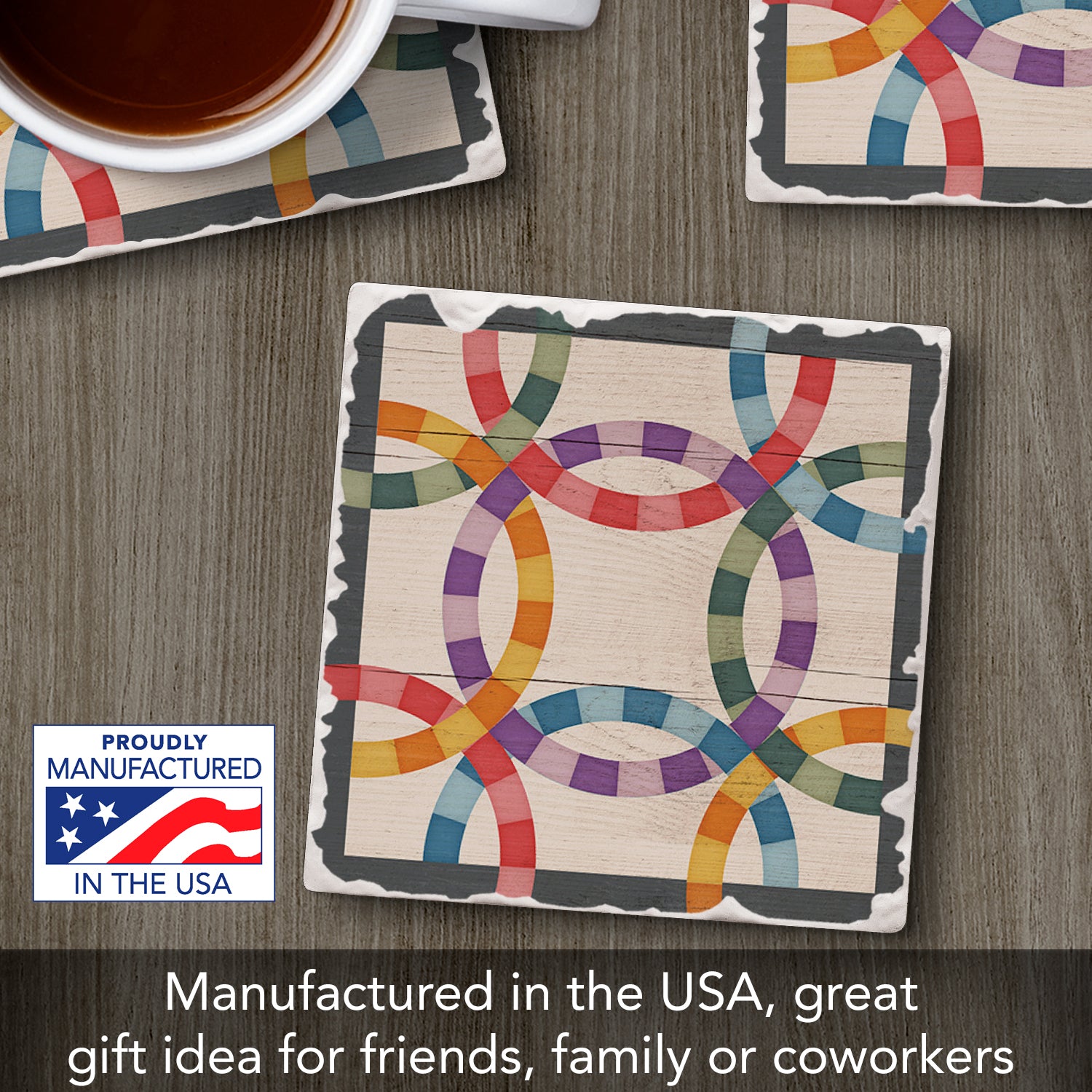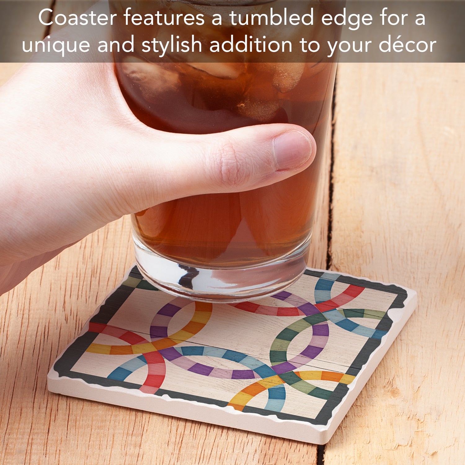 Thirstystone Quilt Design Double Wedding Ring Single Tumbled Tile Stone Coaster with Protective Cork Backing Manufactured in The USA 4" Square, Artistic, Easily Wipes Clean