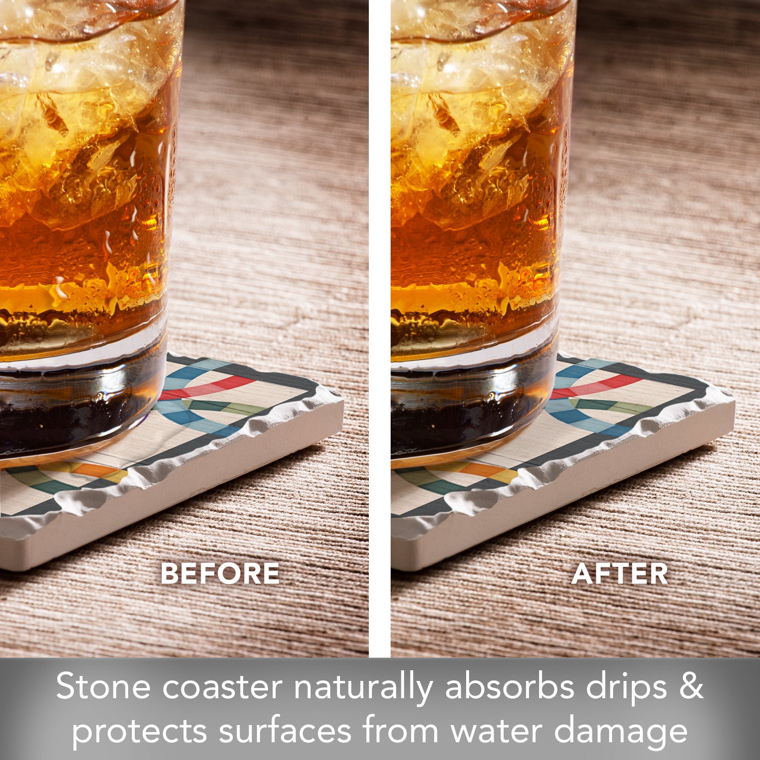 FUNCTIONAL ART-Beautiful artistic design allows the Coaster to remain displayed even when not in use. Each Coaster measures 4” x 4” x .25”. Sized to fit larger Mugs & Glasses.