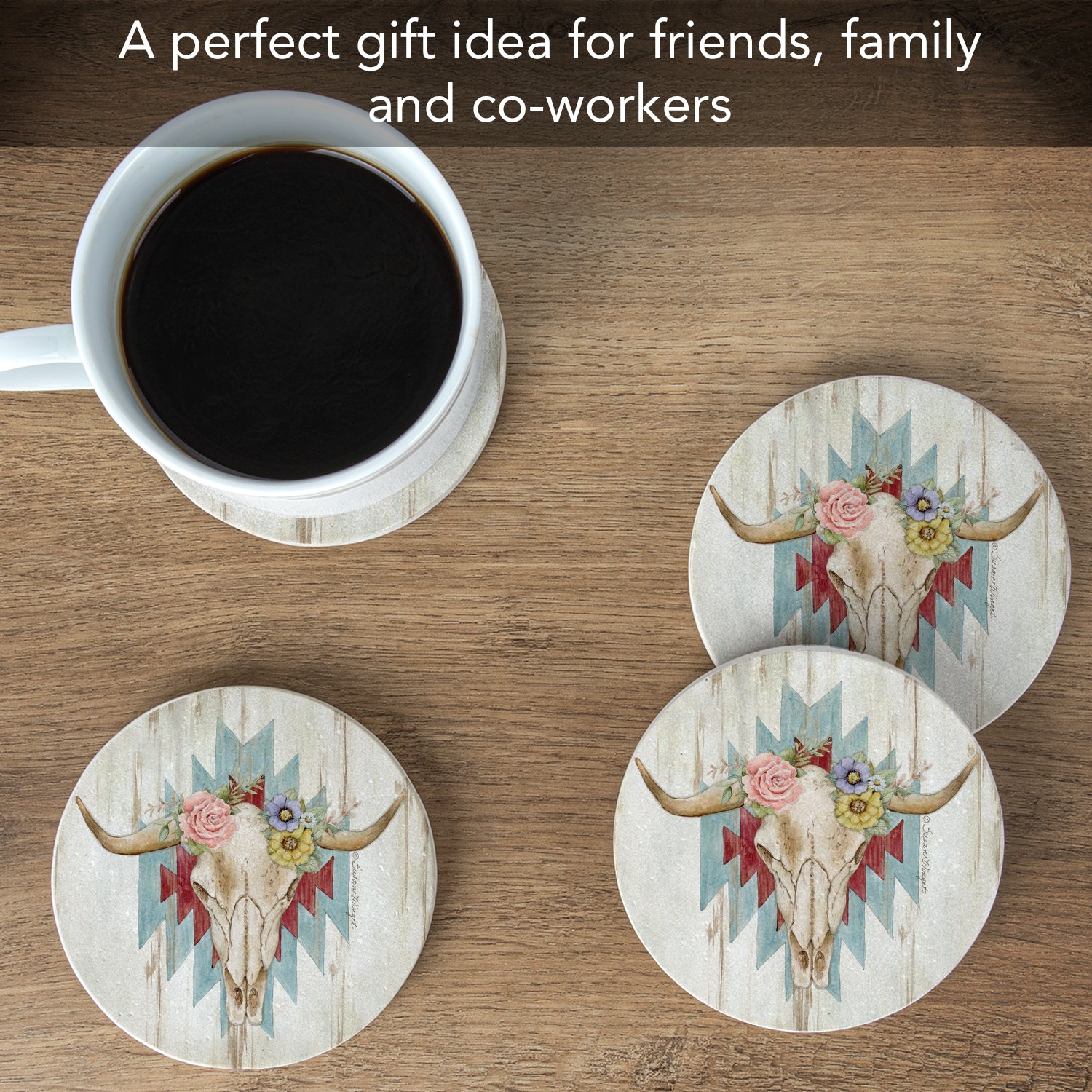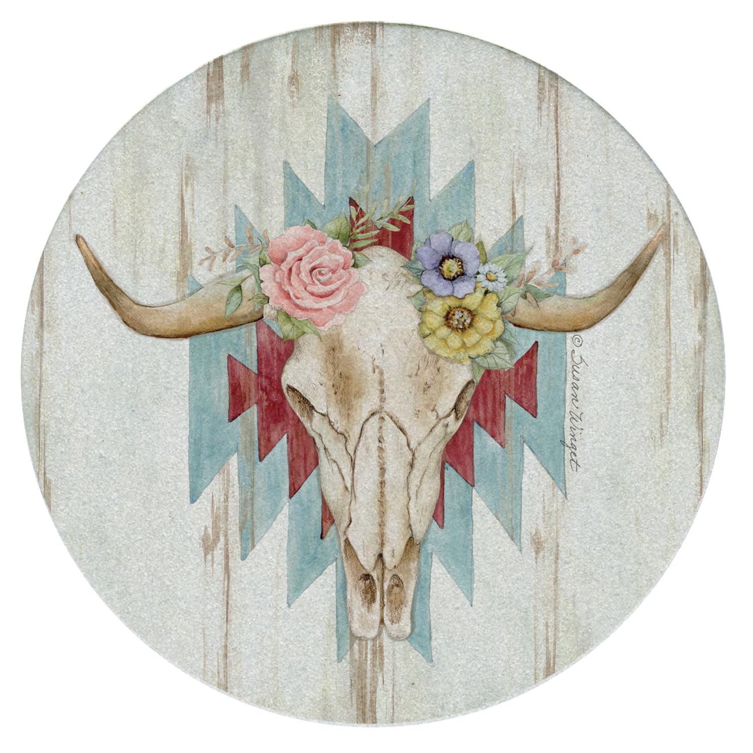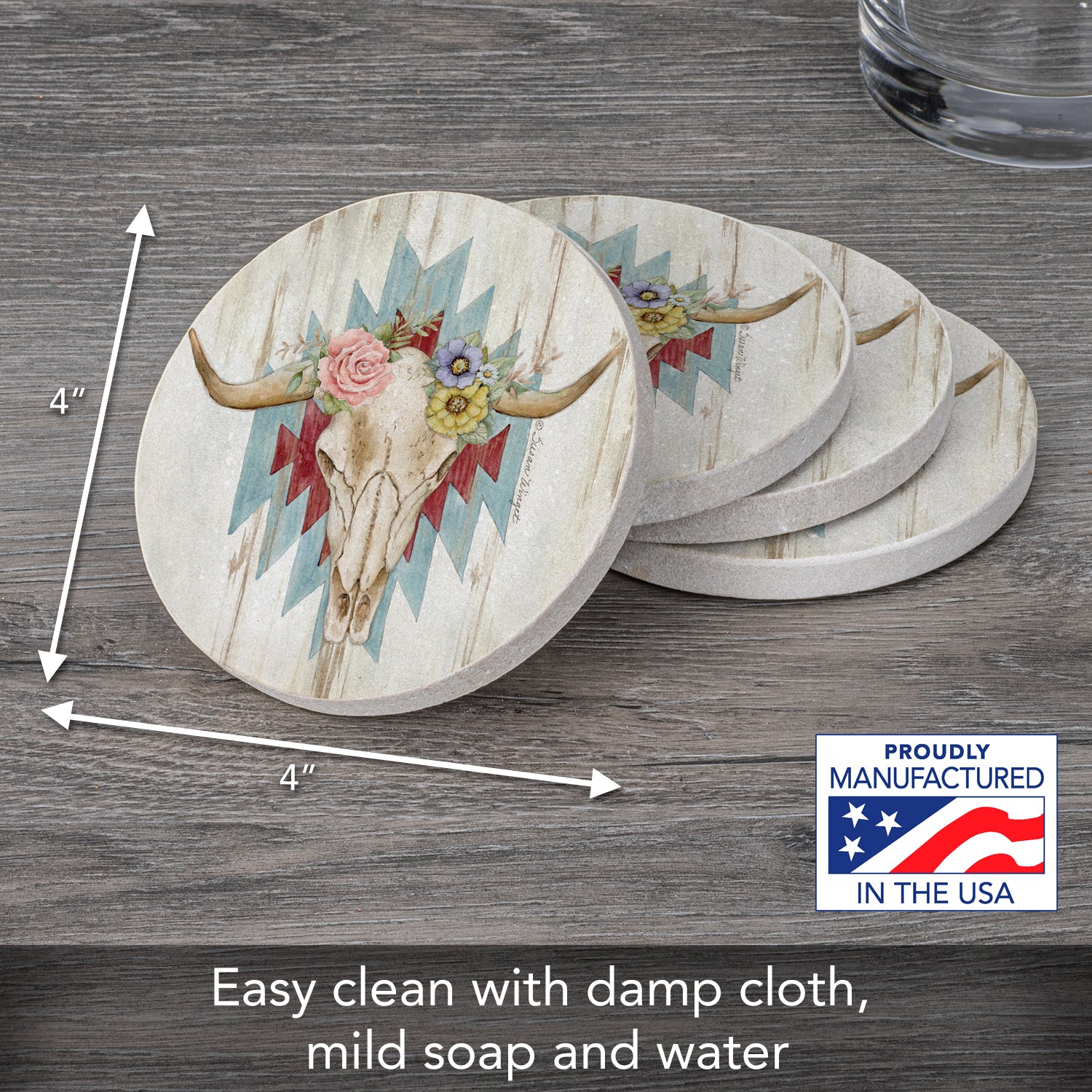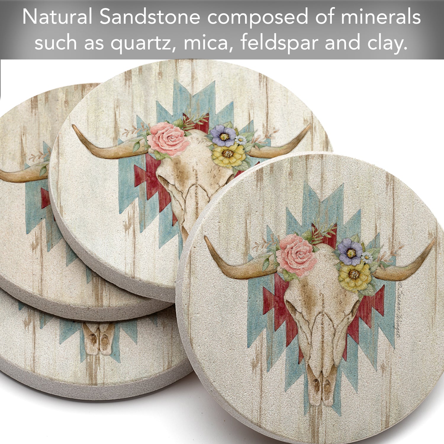 Thirstystone Ranch Skull 4 Pack Natural Sandstone Coasters 4" Round