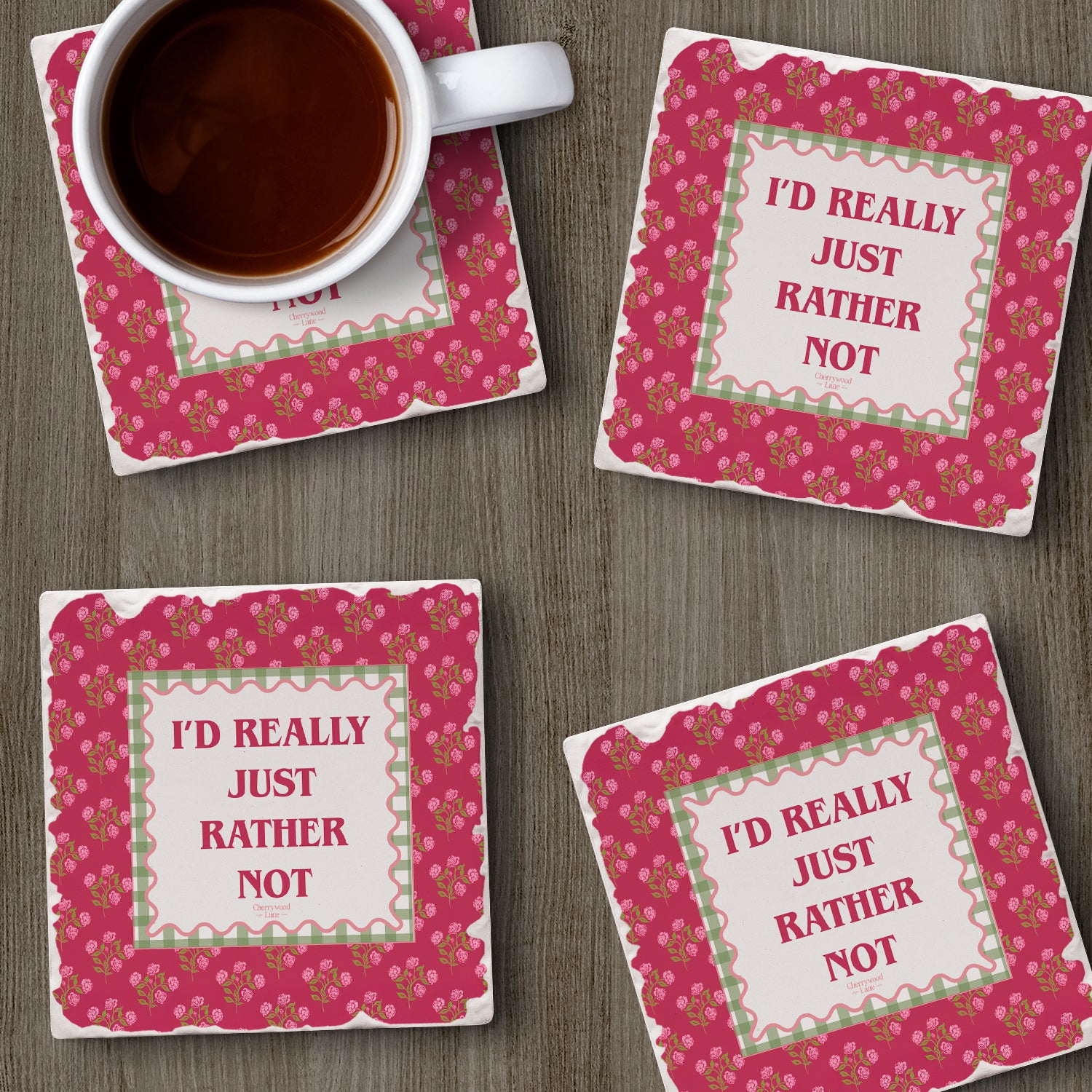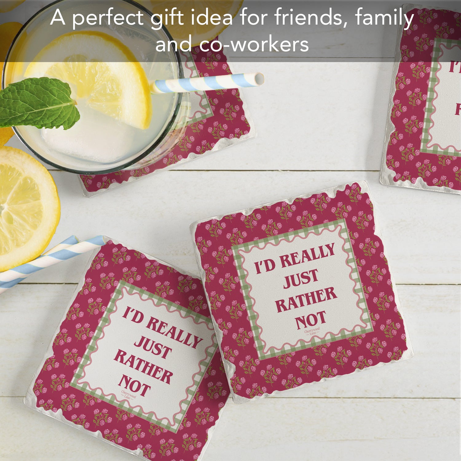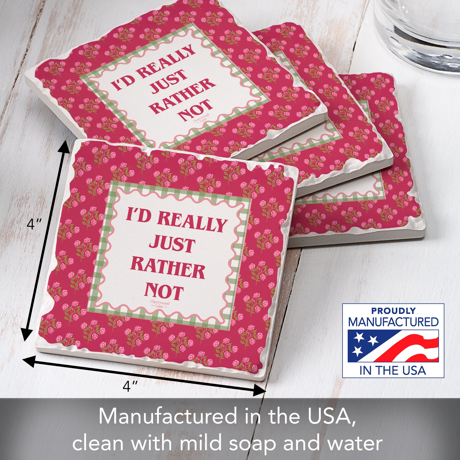 Thirstystone Really Rather Not 4 Pack Tumbled Tile Stone Coasters 4" Square Manufactured in the USA