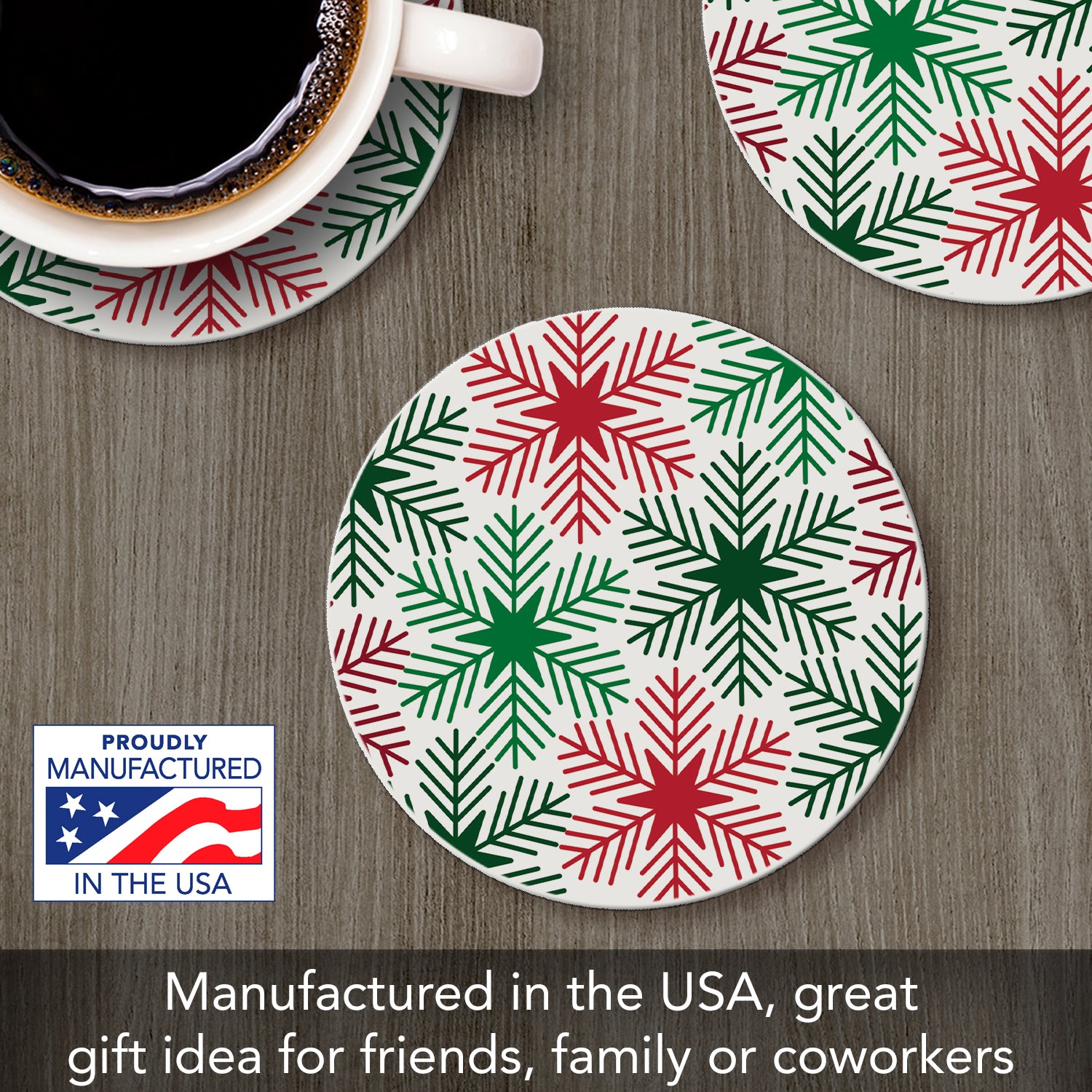 Thirstystone Red & Green Snowflakes Single Round Absorbent Stone Coaster with Protective Cork Backing Manufactured in The USA 4" Diameter