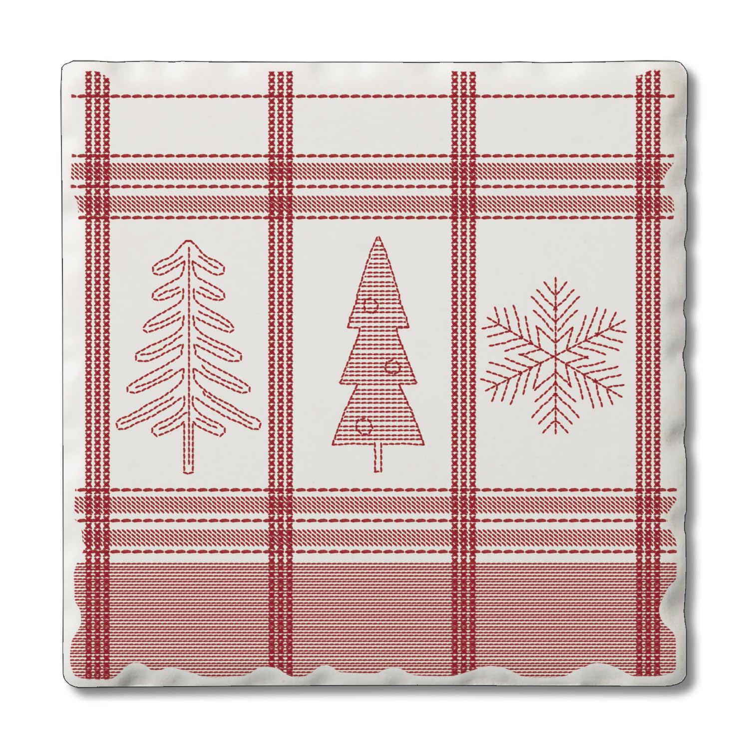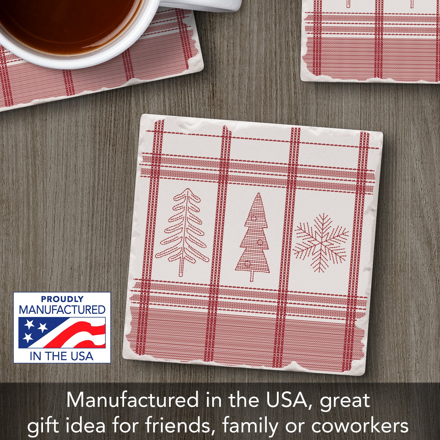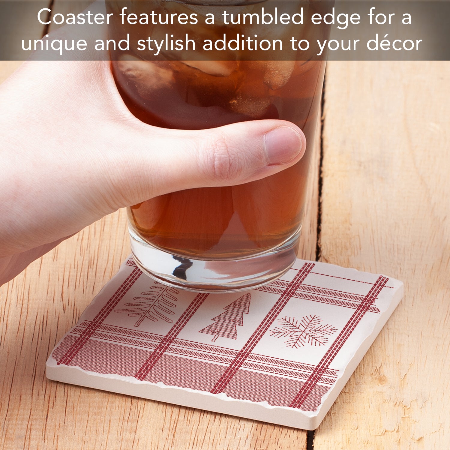 Thirstystone Red Winter Plaid Single Tumbled Tile Coaster Manufactured in The USA Decorative, Stylish, Craft Your Own Collection