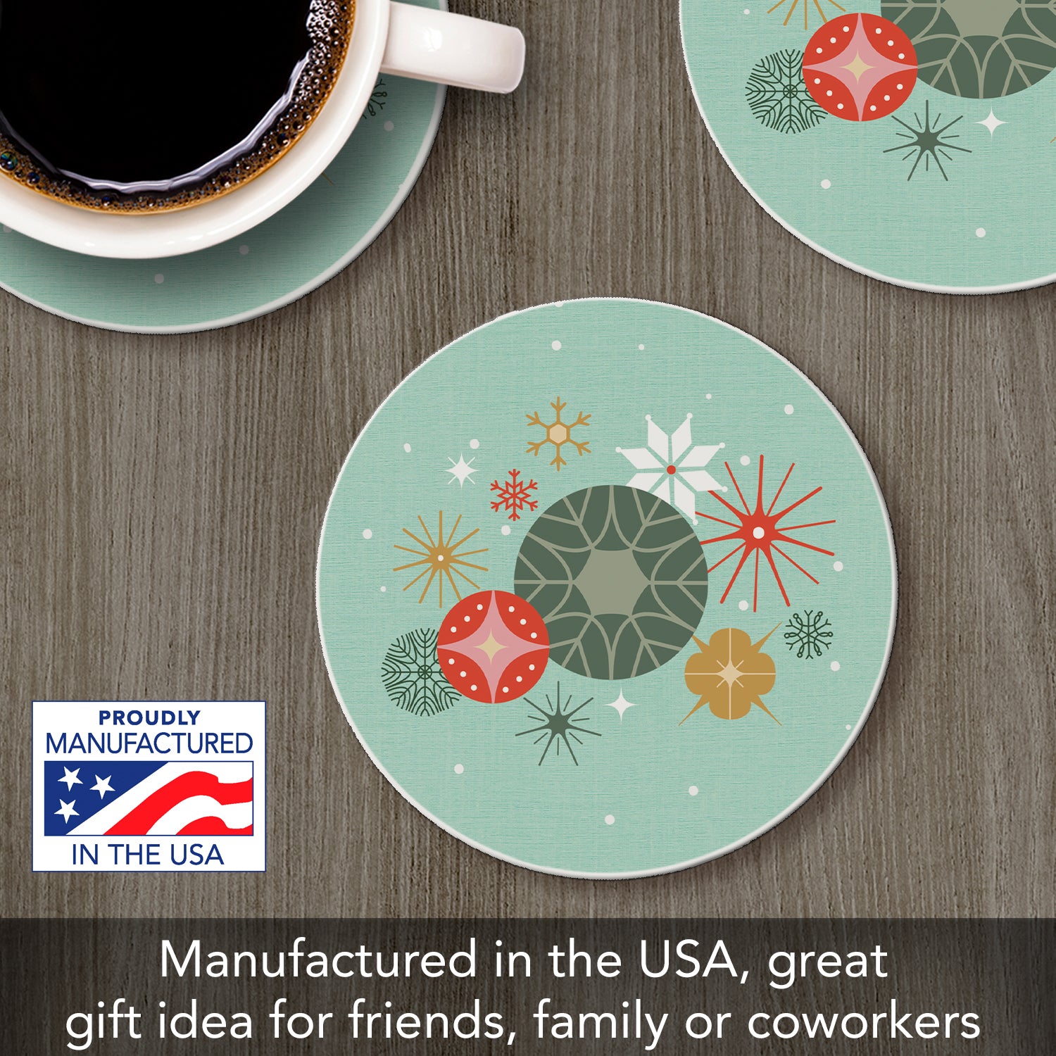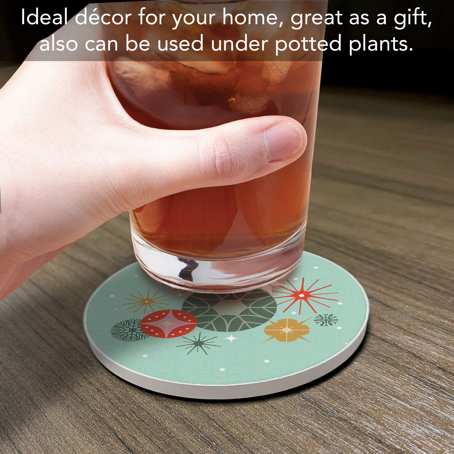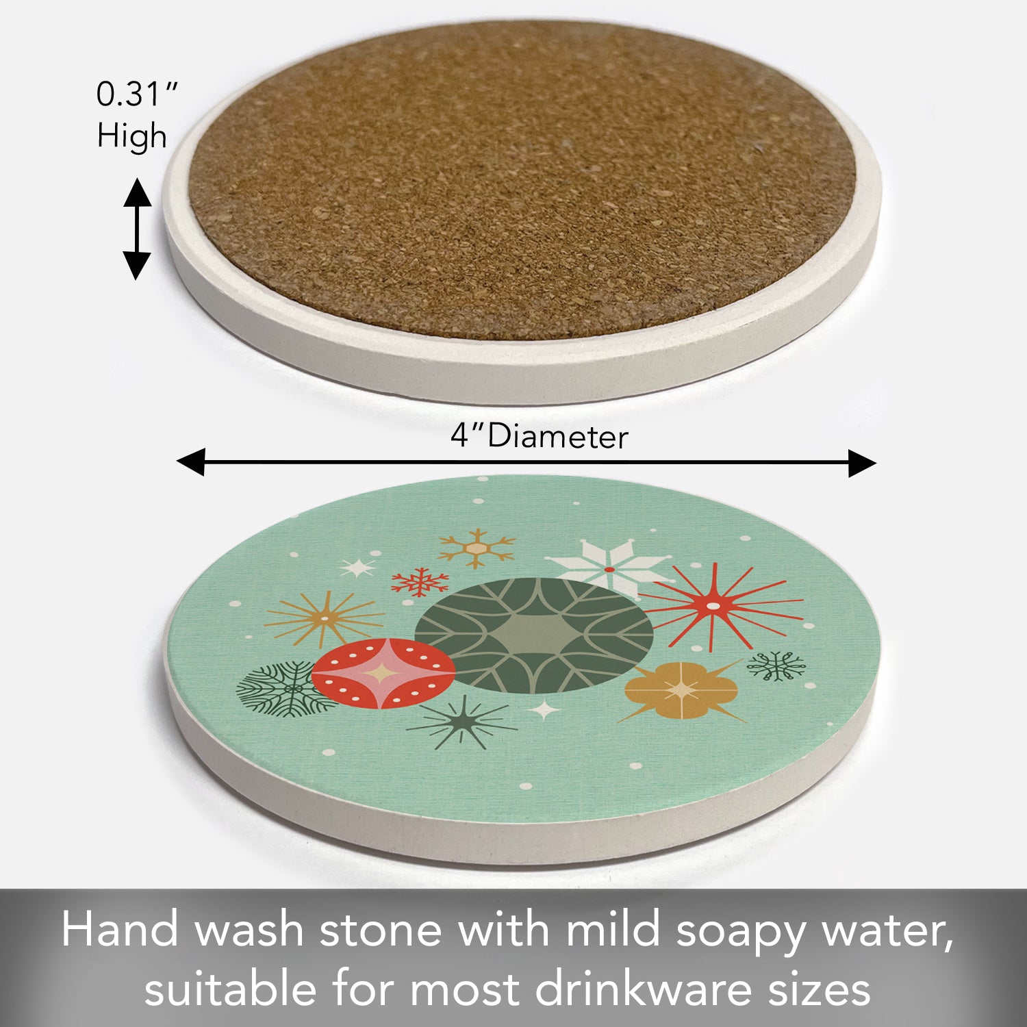Thirstystone Retro Christmas Single Round Absorbent Stone Coaster with Protective Cork Backing Manufactured in The USA 4" Diameter