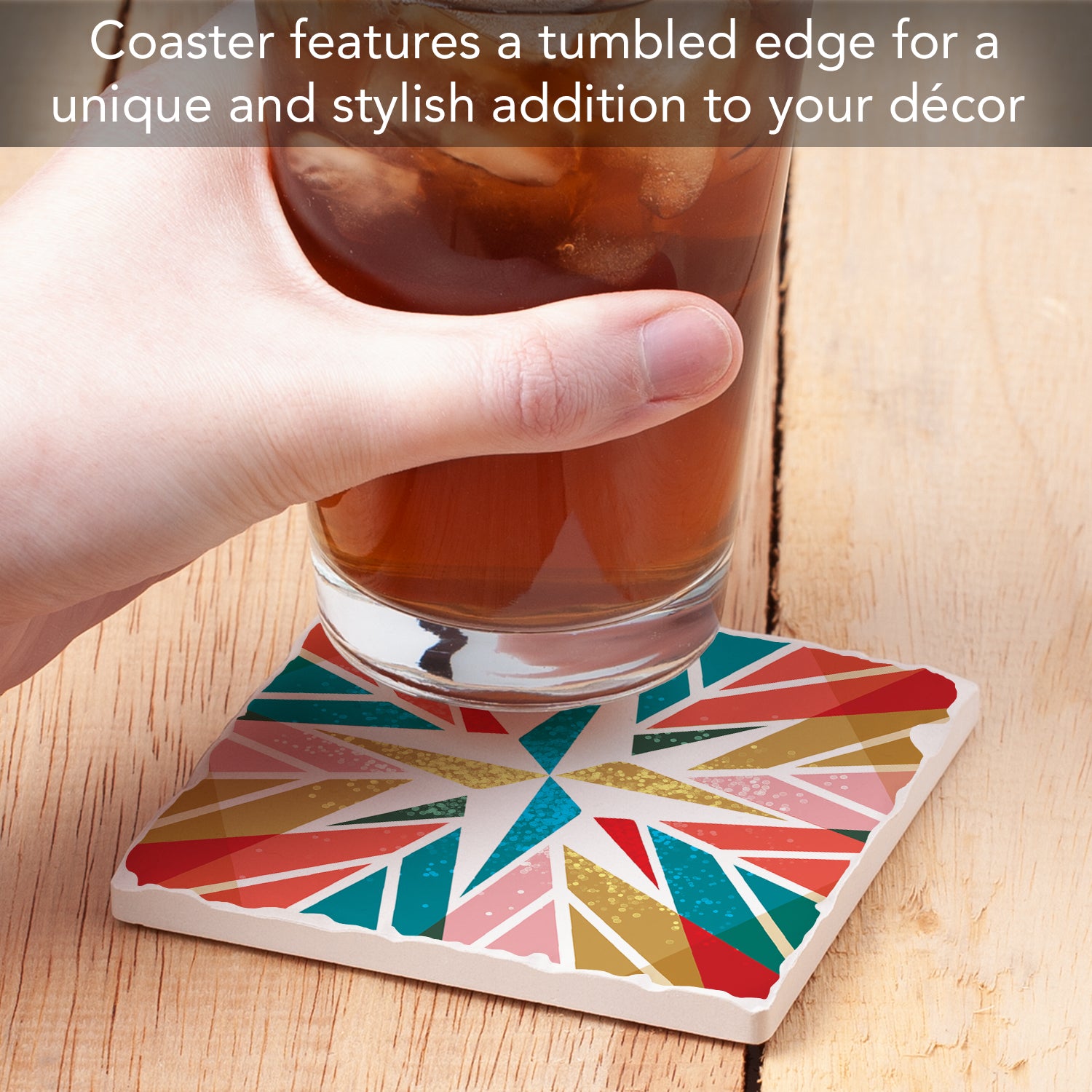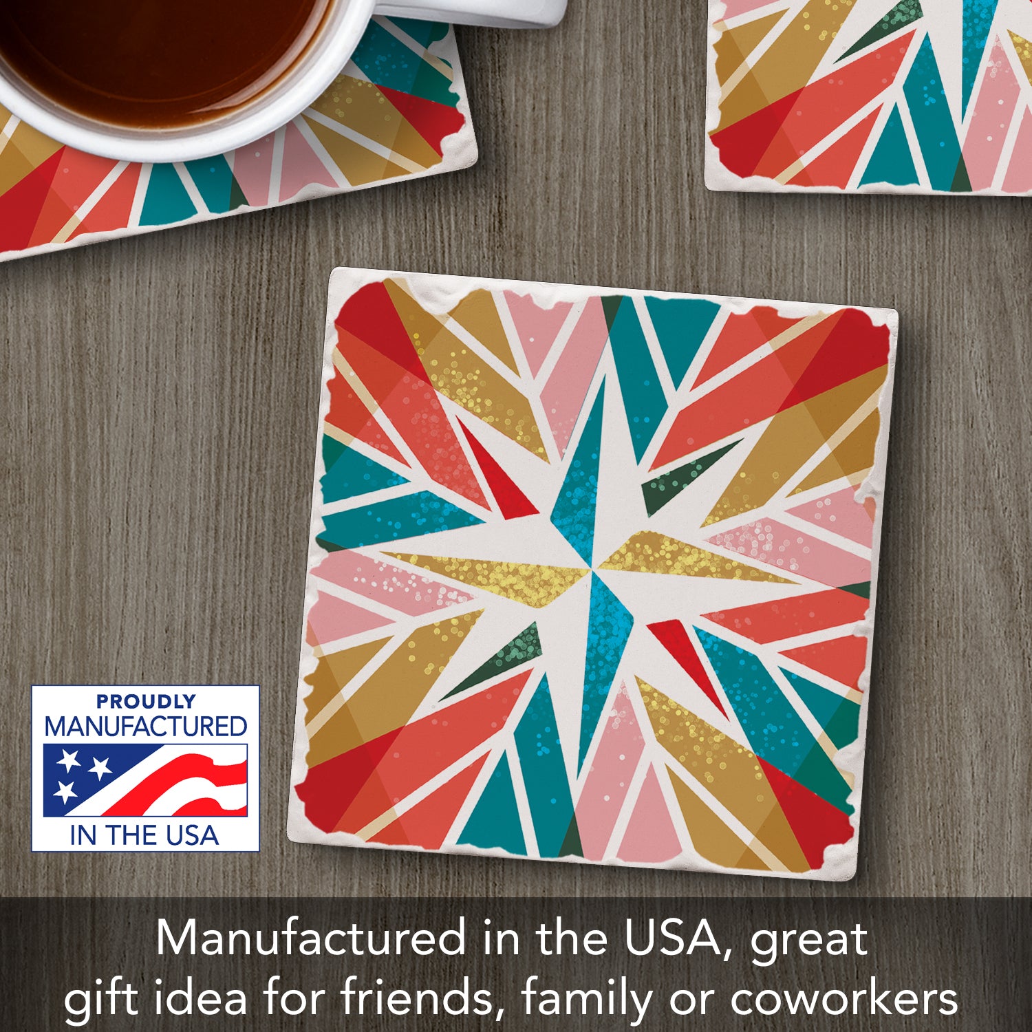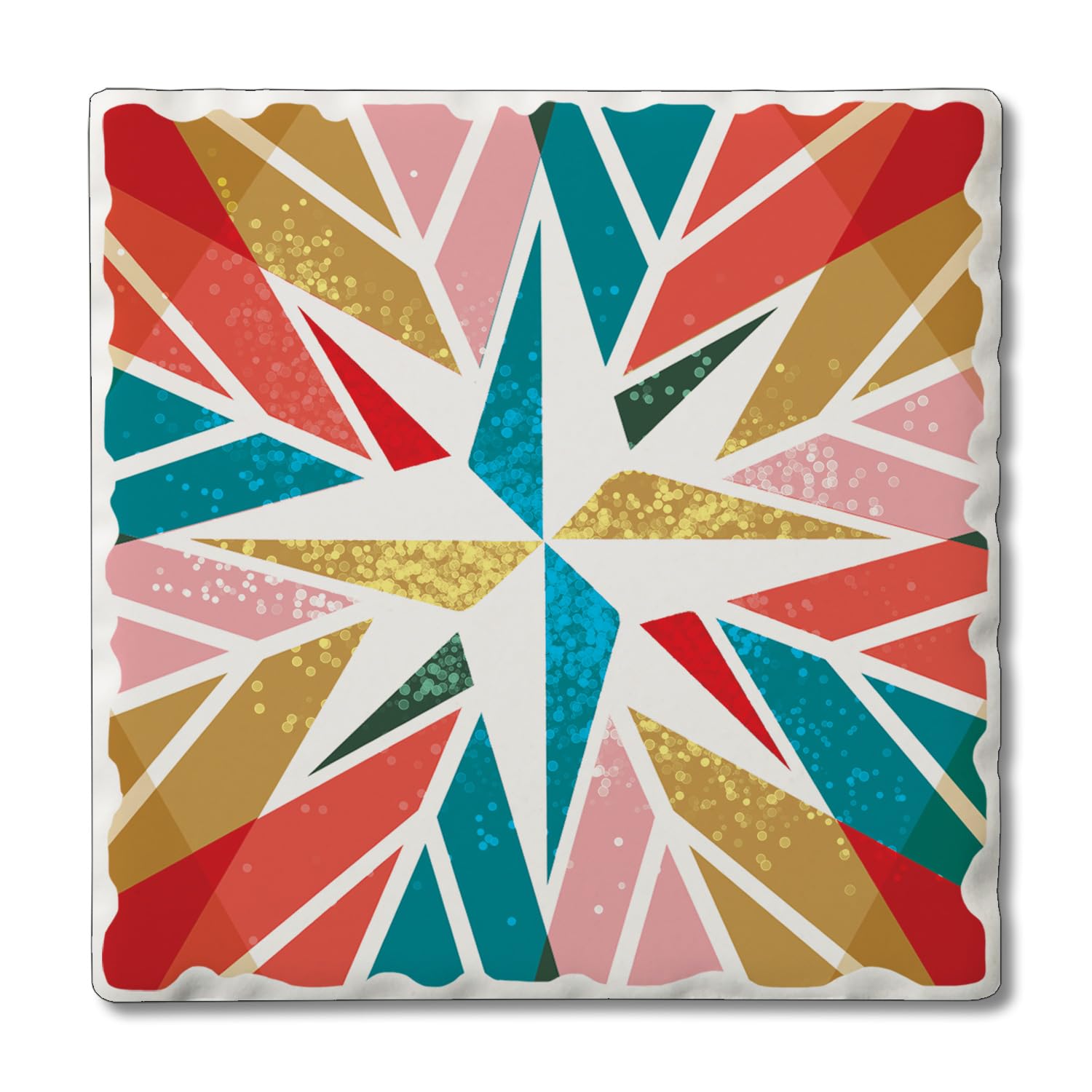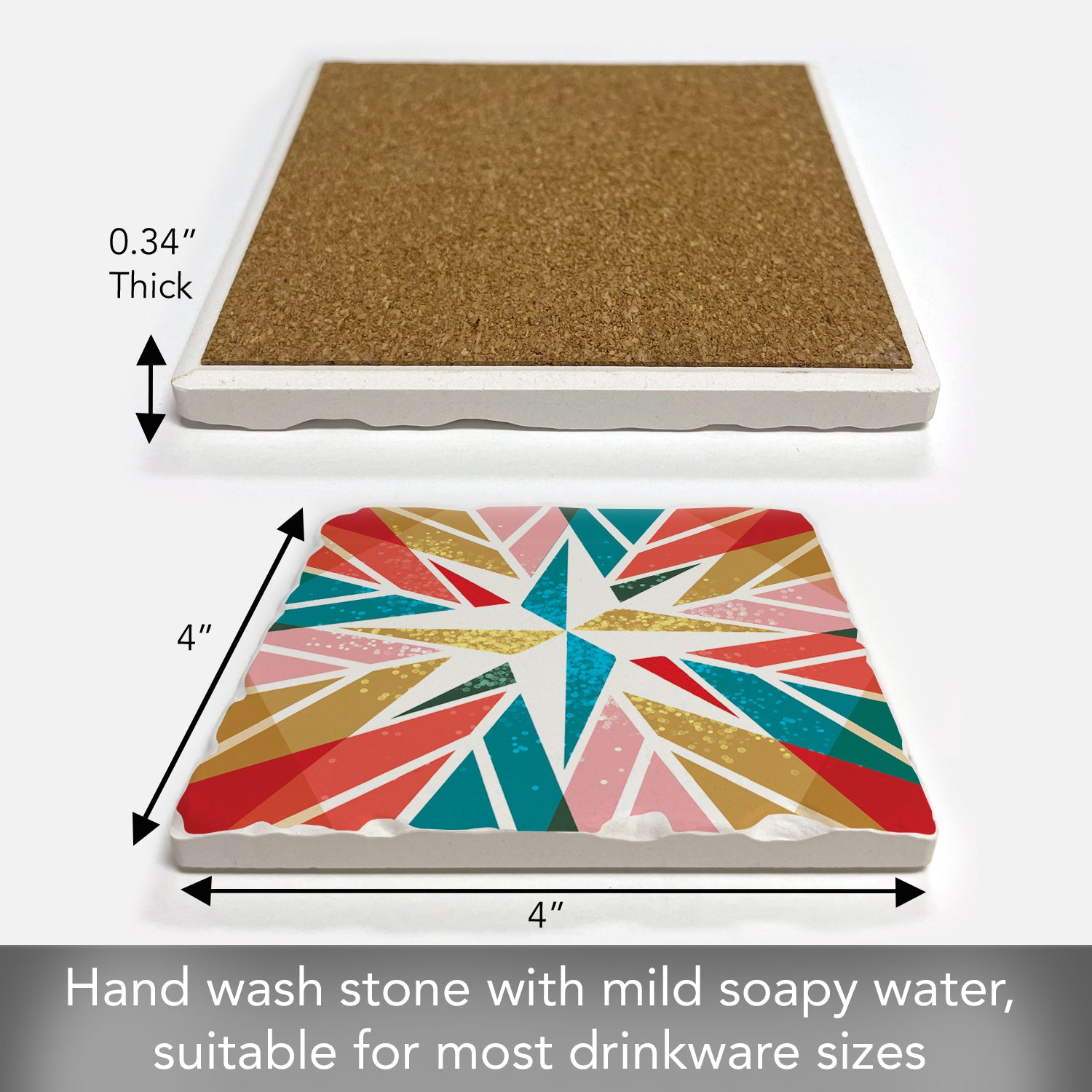 Thirstystone Retro Holiday Star Single Absorbent Stone Coaster with Protective Cork Backing Manufactured in The USA 4" Square, Artistic, Easily Wipes Clean