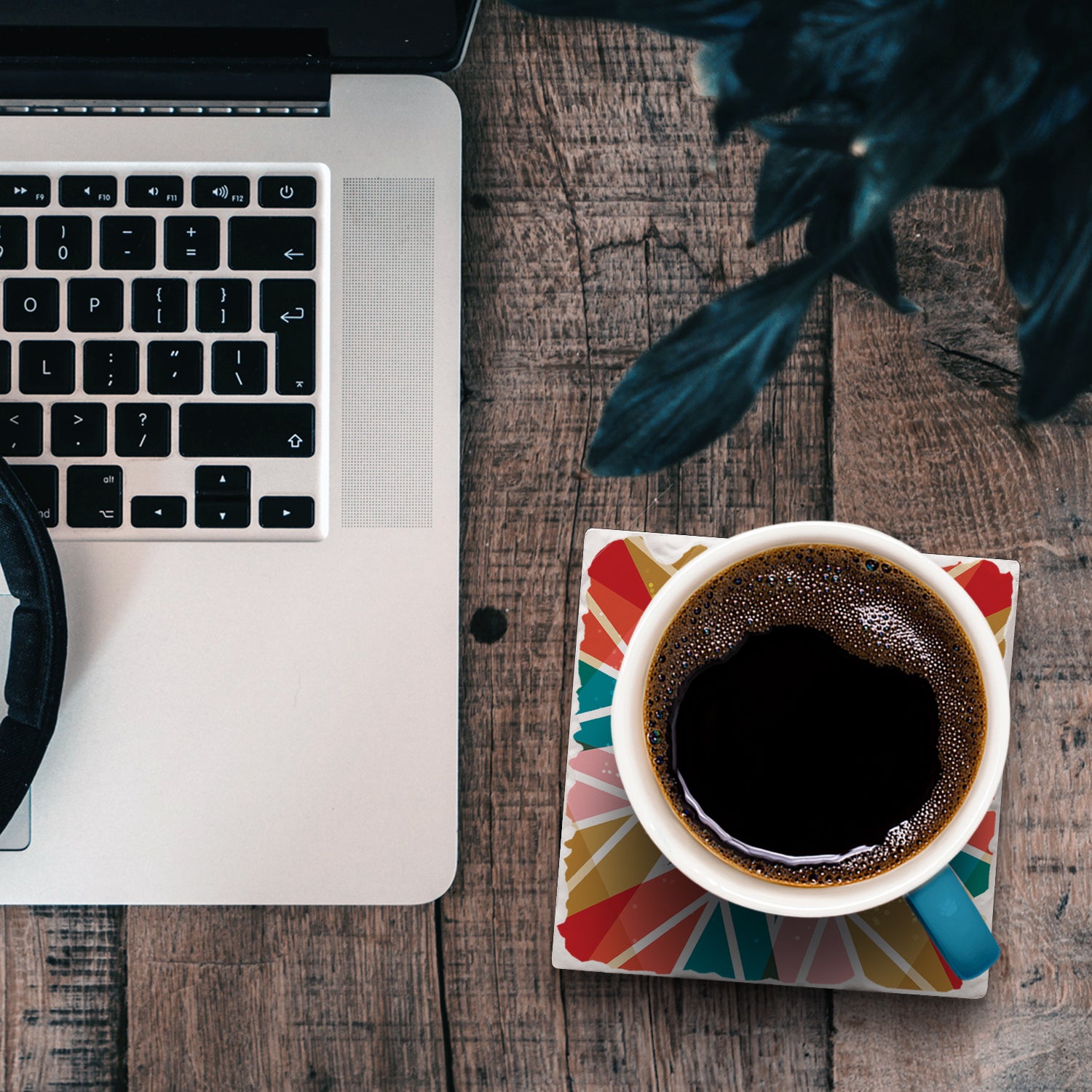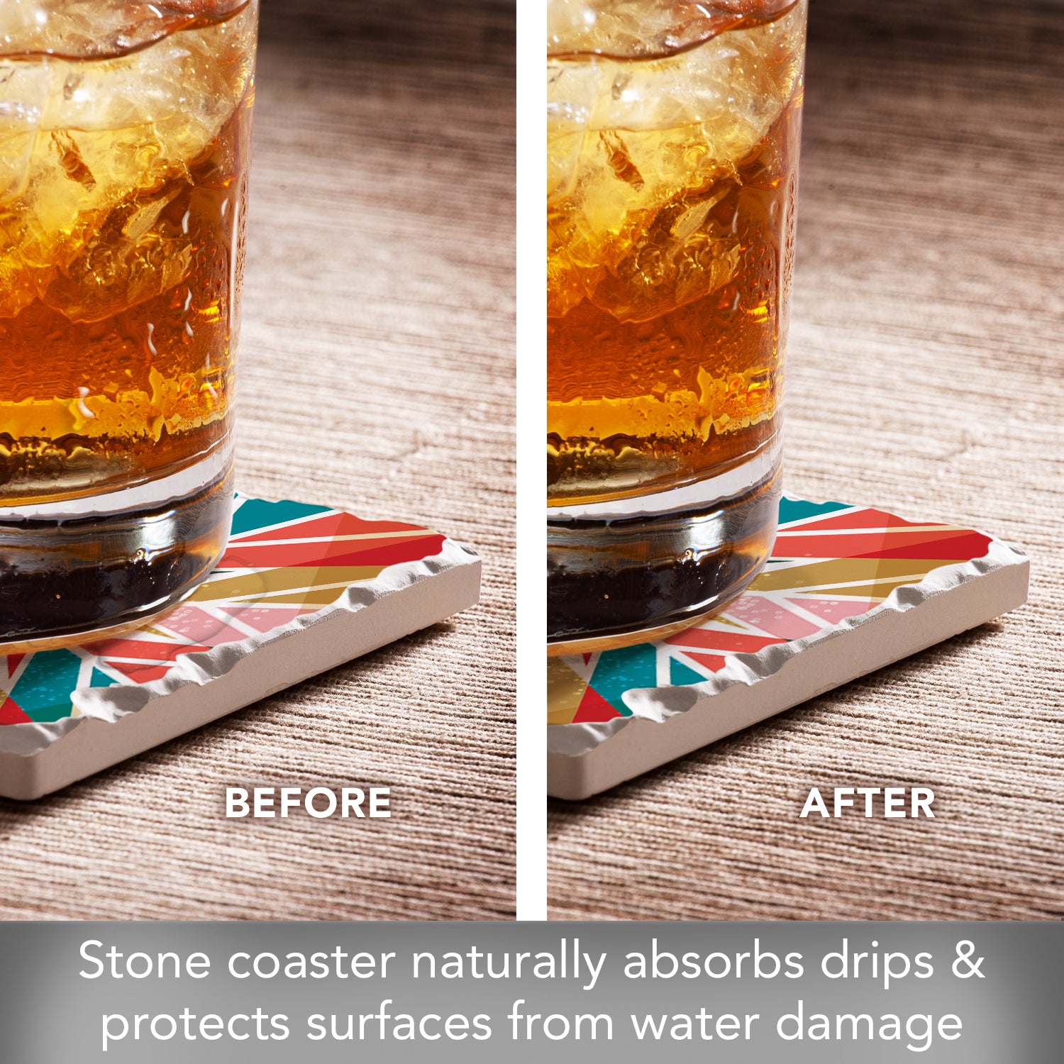 FUNCTIONAL ART-Beautiful artistic design allows the Coaster to remain displayed even when not in use. Each Coaster measures 4” x 4” x .25”. Sized to fit larger Mugs & Glasses.