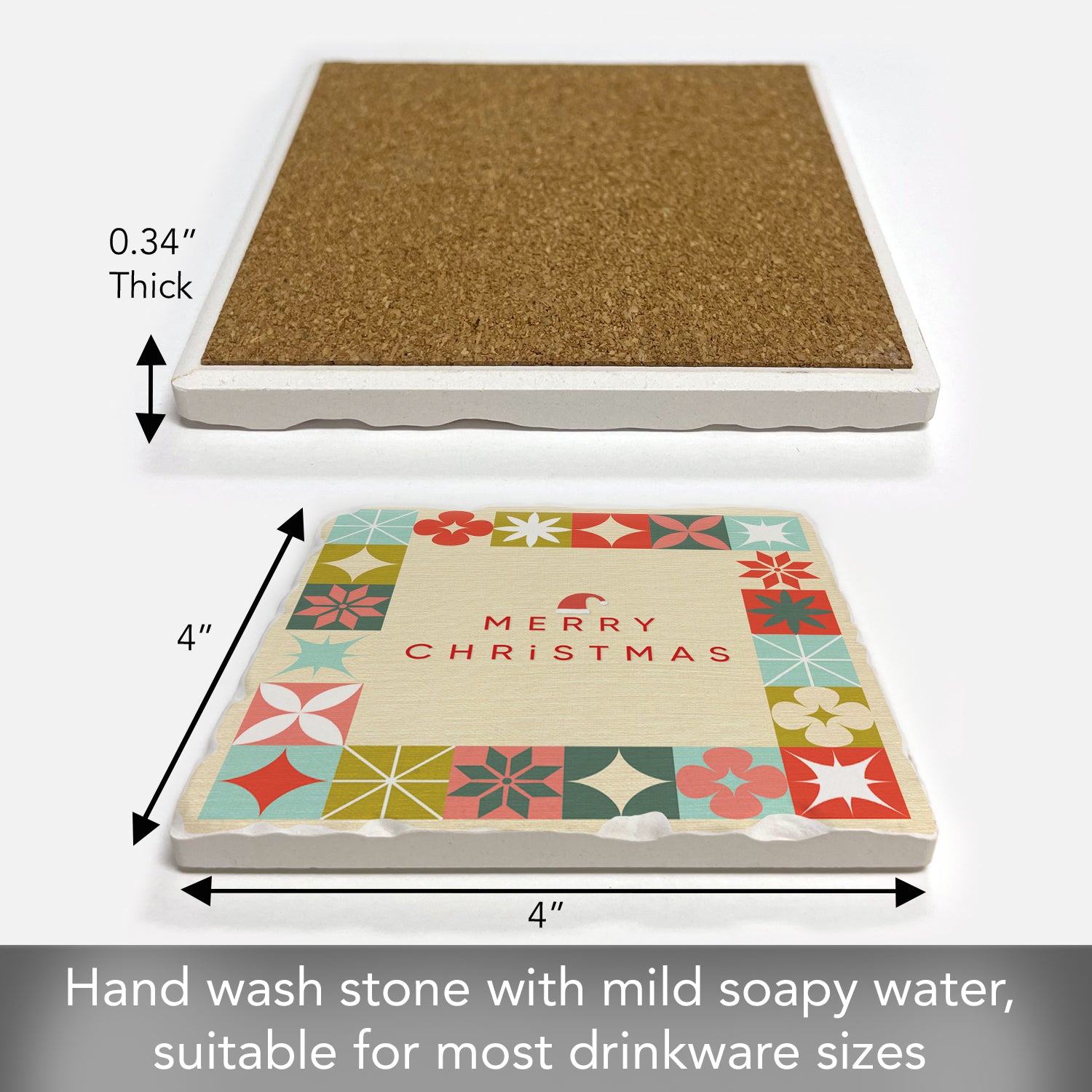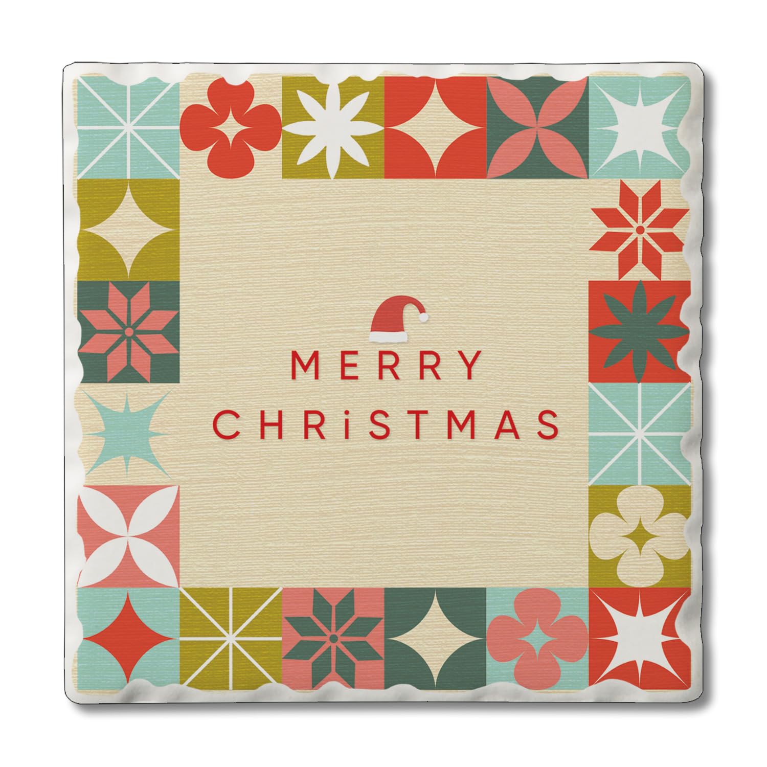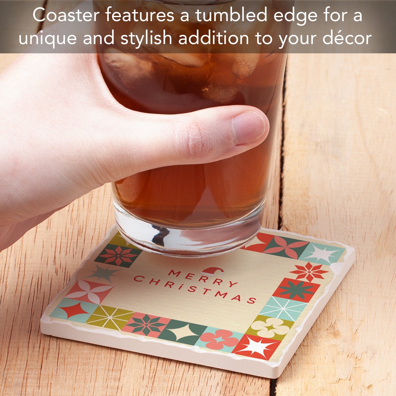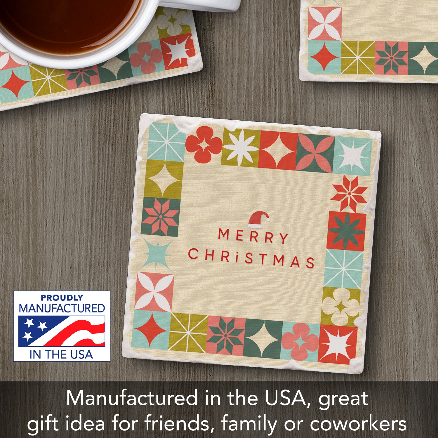 Thirstystone Retro Merry Christmas Single Tumbled Tile Coaster with Protective Cork Backing Manufactured in The USA 4" Square, Artistic, Easily Wipes Clean