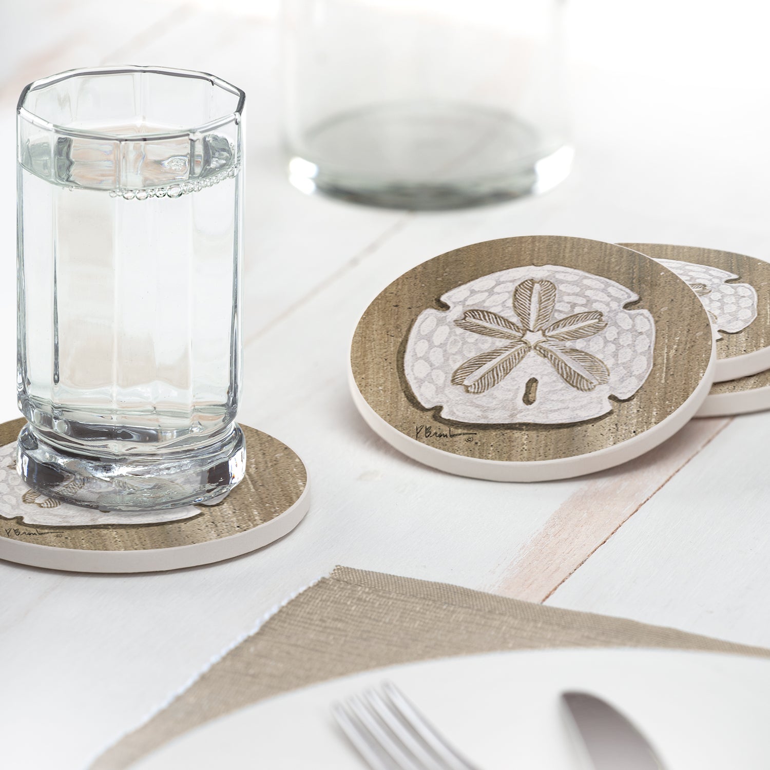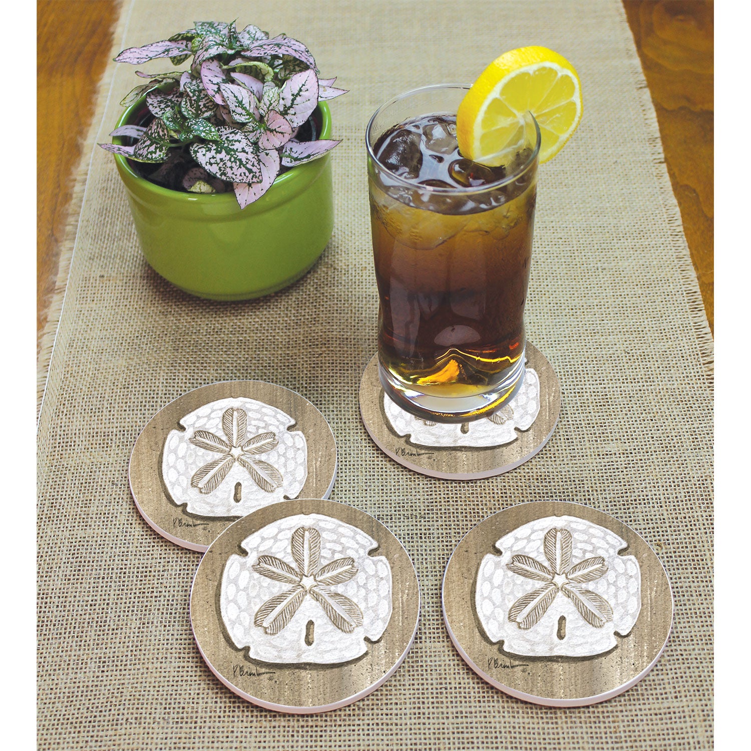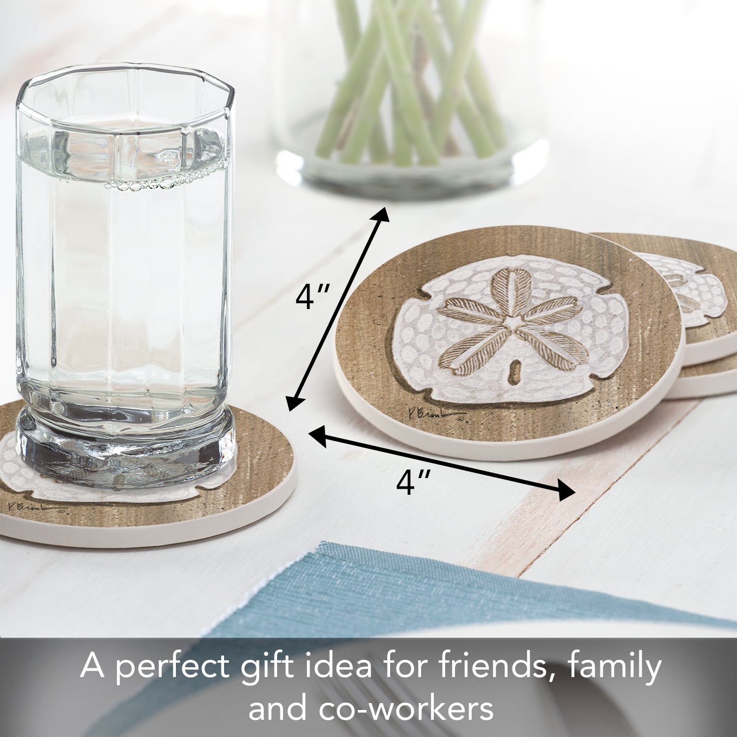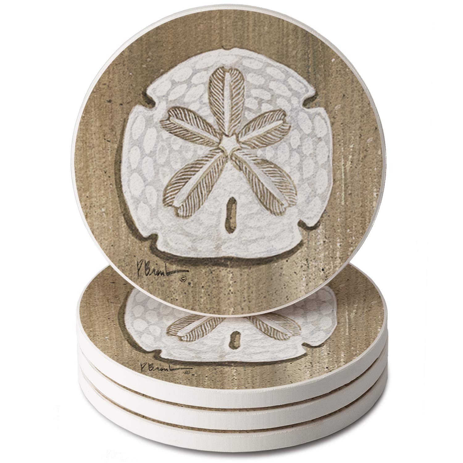 Thirstystone Sand Dollar 4 Pack Round Absorbent Stone Coasters 4" Diameter Manufactured in the USA