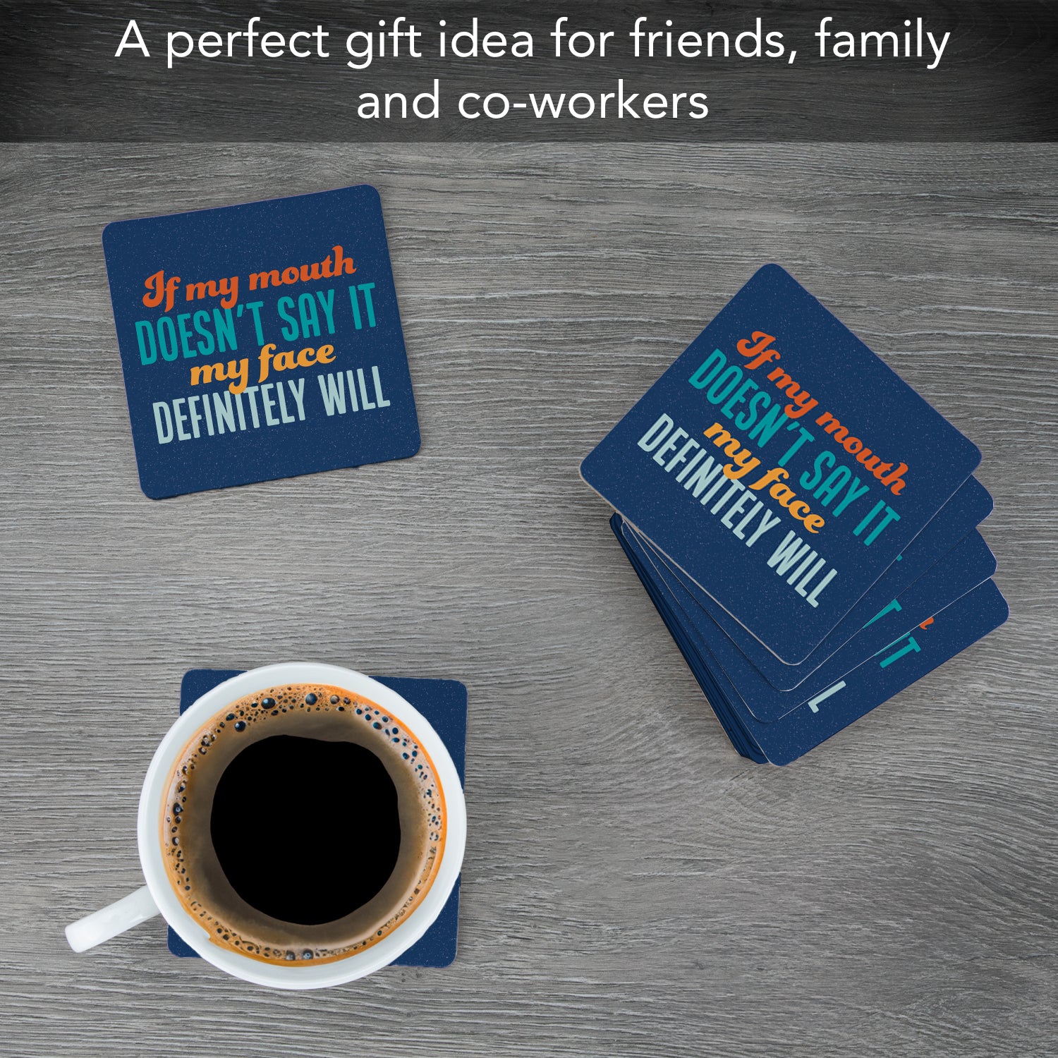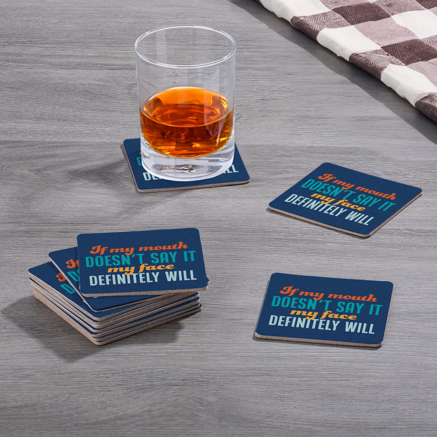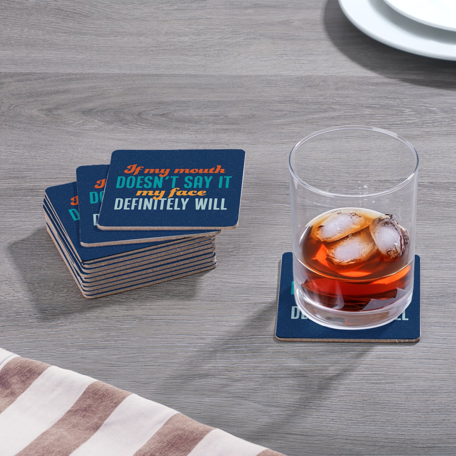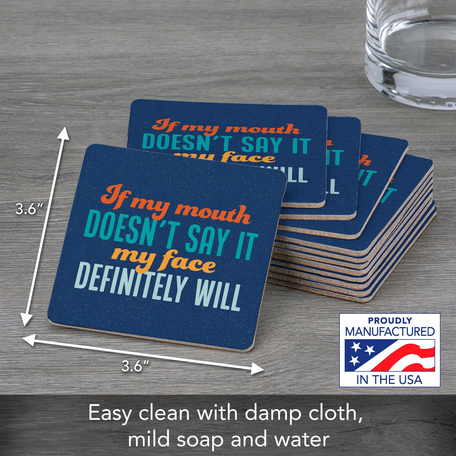 CUTE SNARKY QUOTES-Each Coaster exhibits a cute but snarky quote. Great for use in the kitchen, family room, or bar.