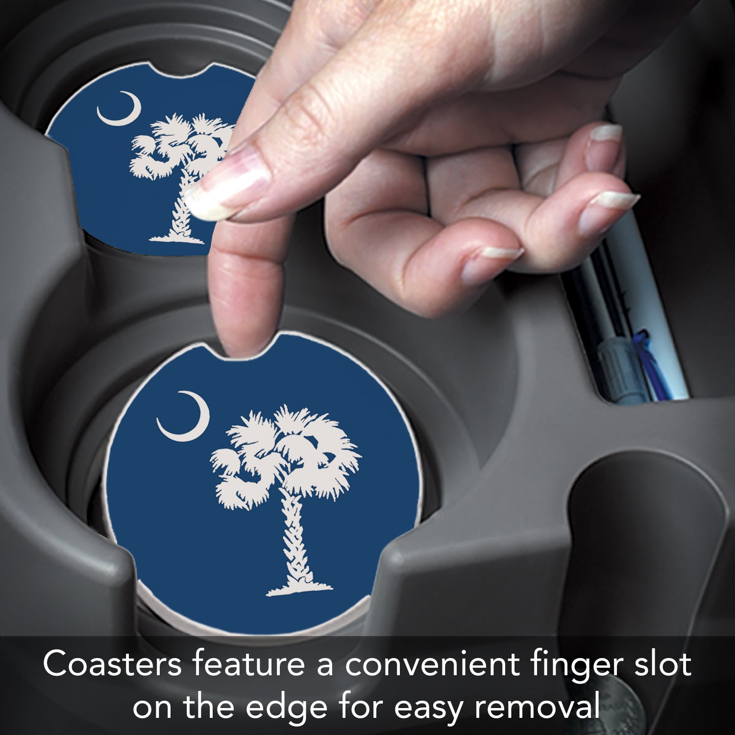 SC State Flag Single Absorbent Stone Car Coaster 2.6” Diameter Manufactured in the USA